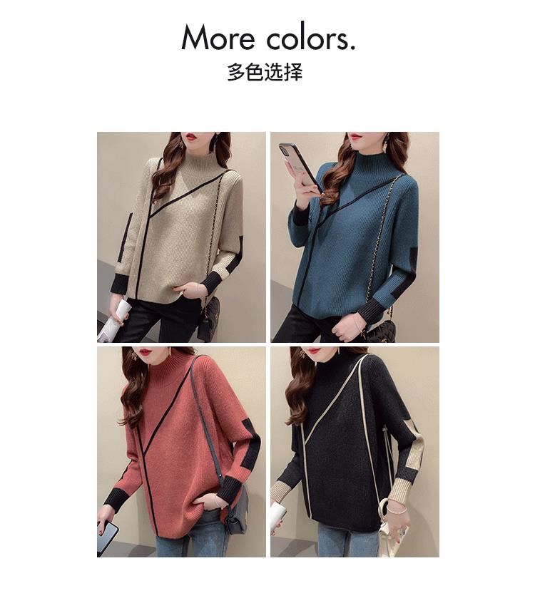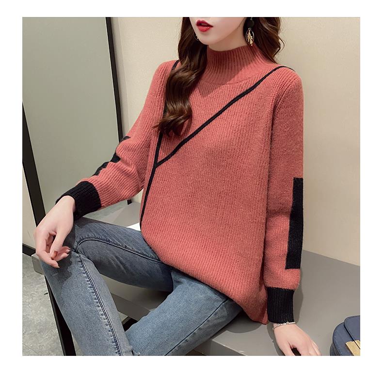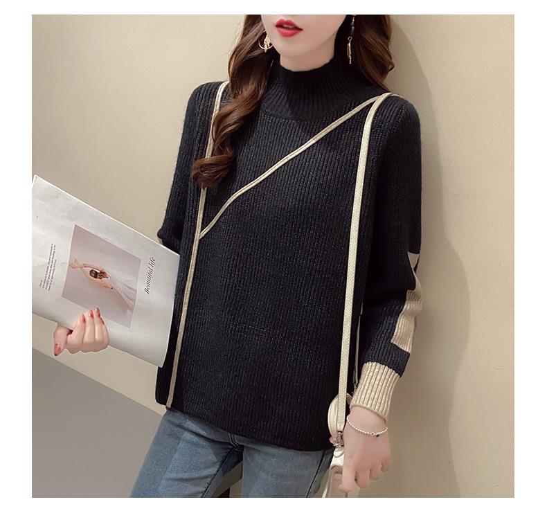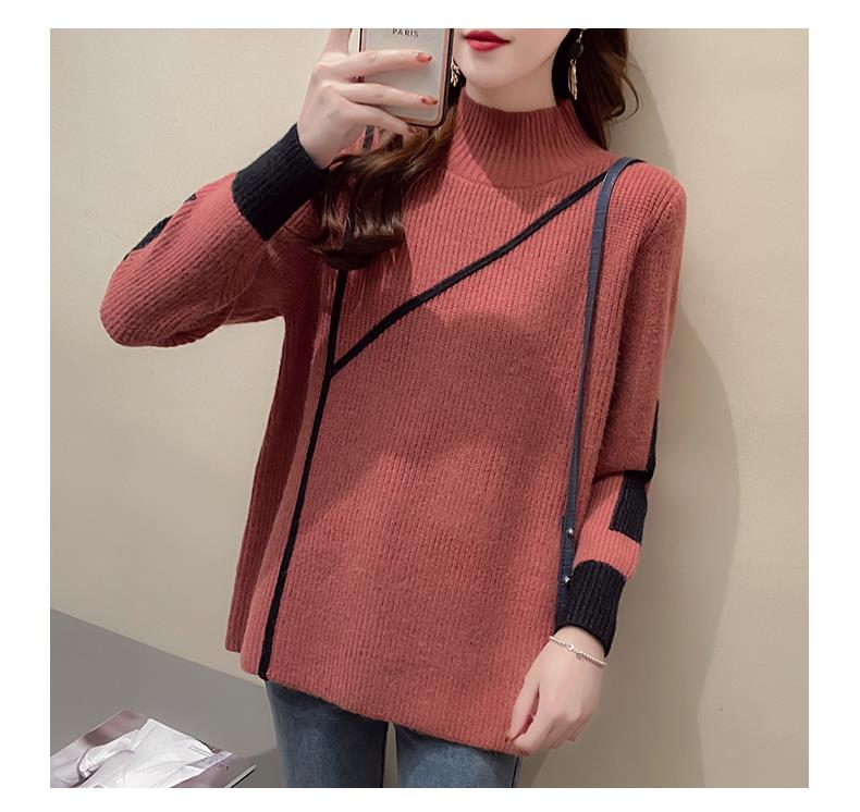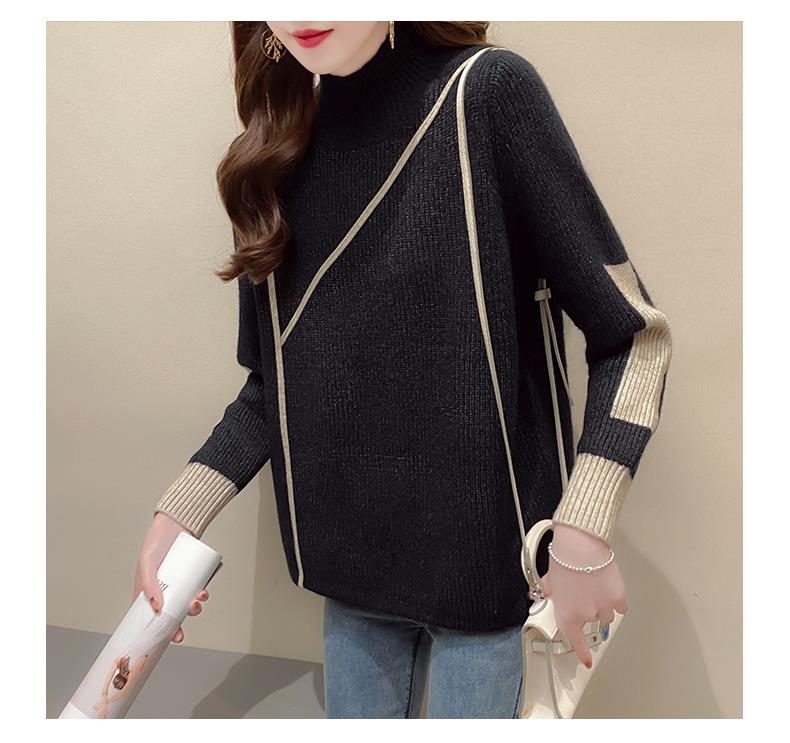 Suéter de cuello alto medio grueso con forro polar para mujer, ropa exterior de otoño e invierno, nuevo suéter holgado con base interior, suéter de moda para mujer
