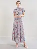 Miyake 2025 Primavera Traje de Moda para Mujer con Top de Color en Contraste Falda Casual Suelta Conjunto de Dos Piezas Plisado para Mujer