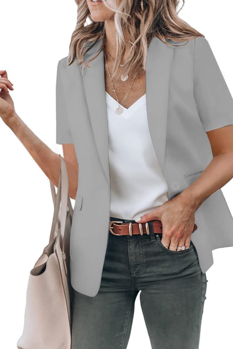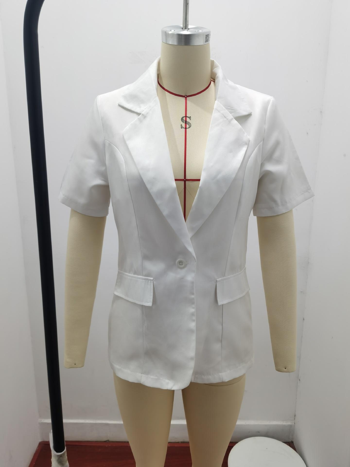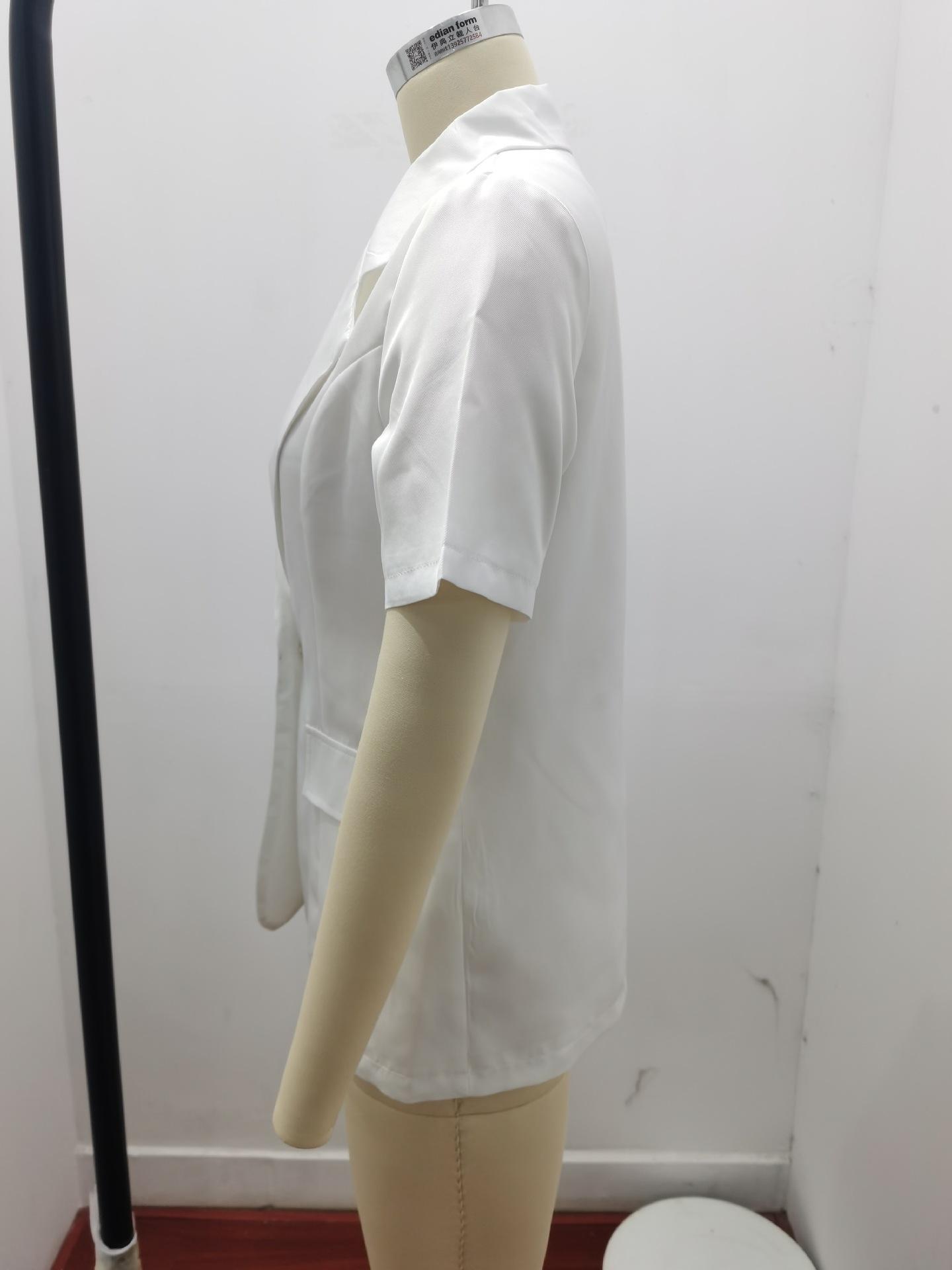 Ropa de mujer de verano 2022 transfronteriza, temperamento, moda, traje pequeño holgado, traje de color sólido europeo y americano, cuello, chaqueta de manga corta para mujer