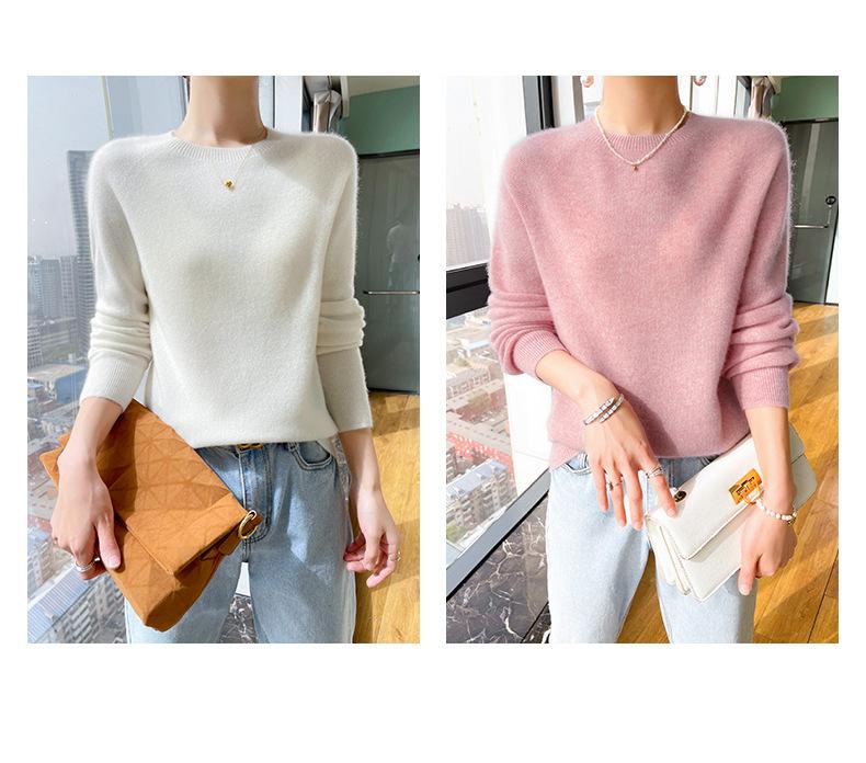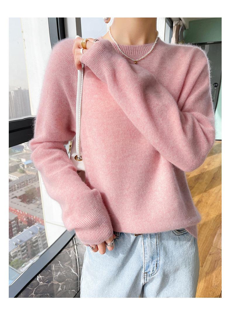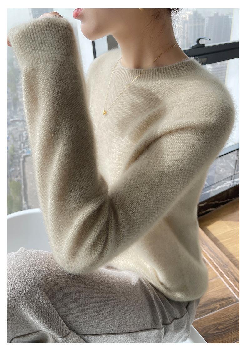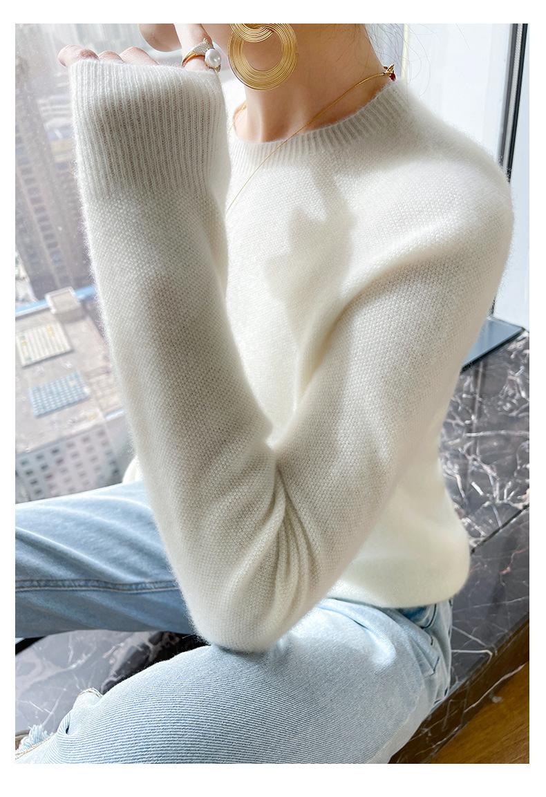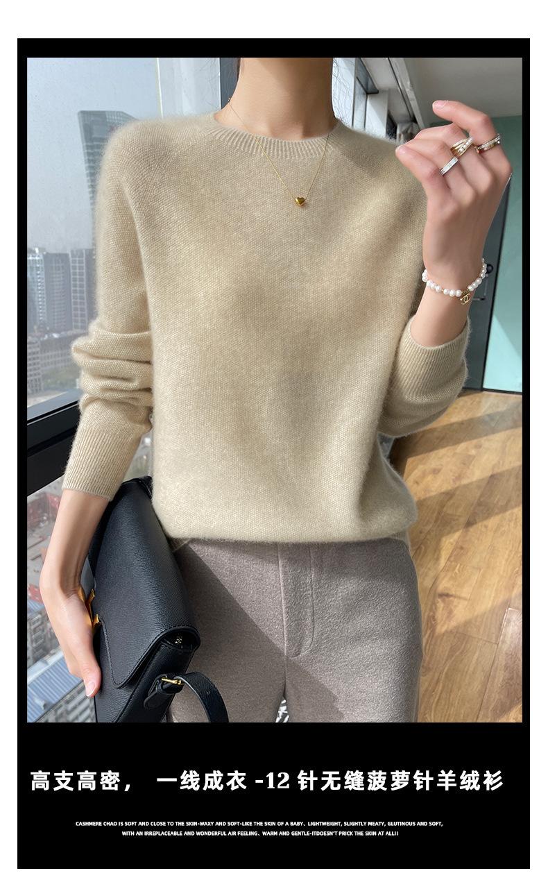 Suéter de cachemira de otoño e invierno para mujer, suéter interior holgado de cuello redondo, suéter, camisa adelgazante para mujer