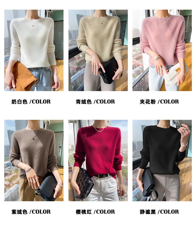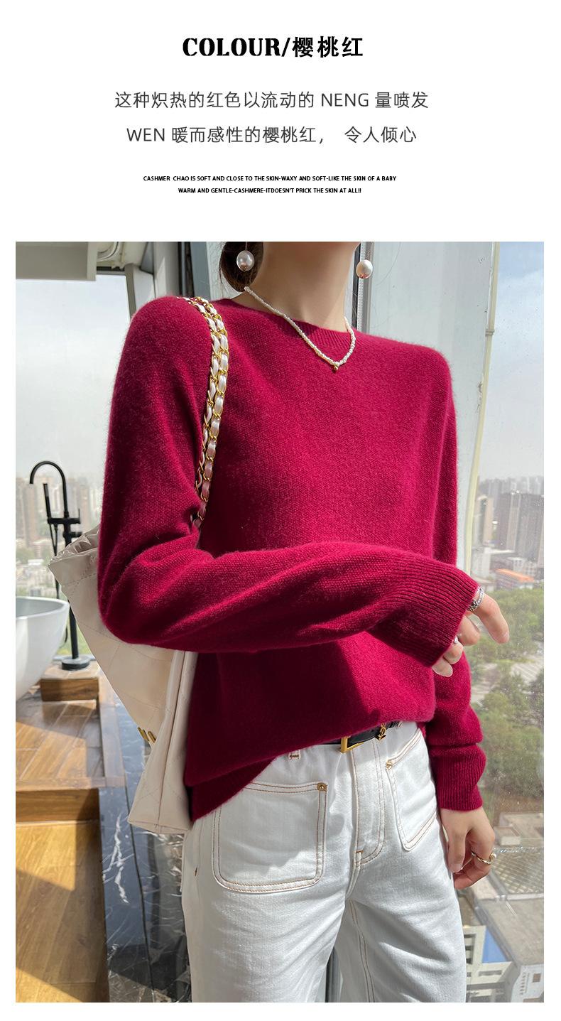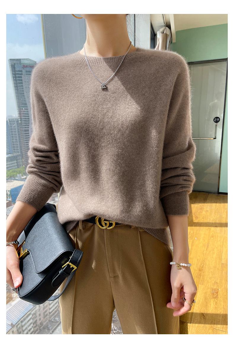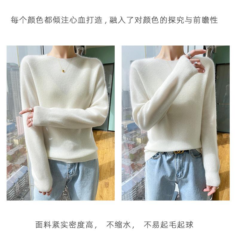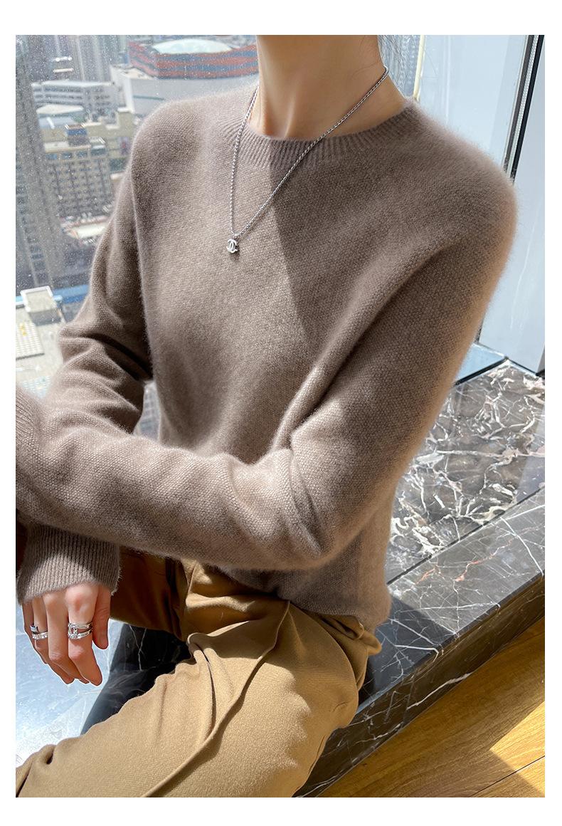 Suéter de cachemira de otoño e invierno para mujer, suéter interior holgado de cuello redondo, suéter, camisa adelgazante para mujer