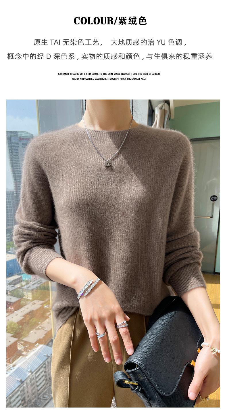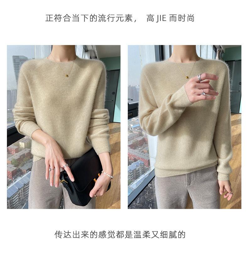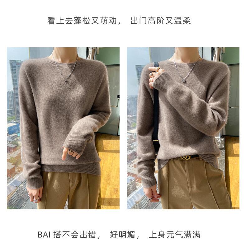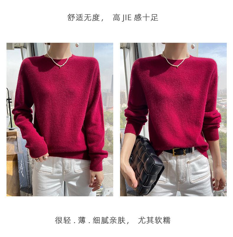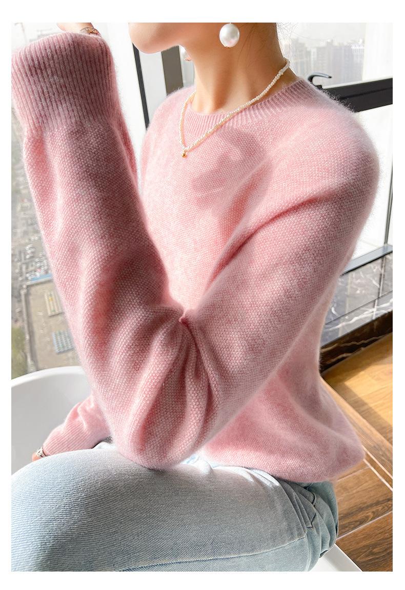 Suéter de cachemira de otoño e invierno para mujer, suéter interior holgado de cuello redondo, suéter, camisa adelgazante para mujer
