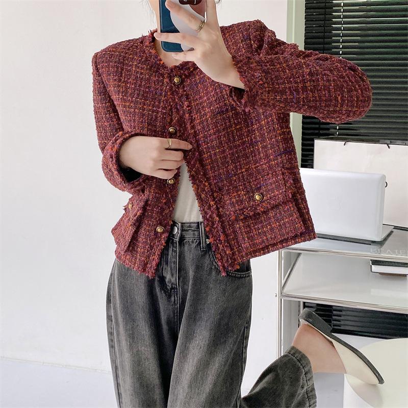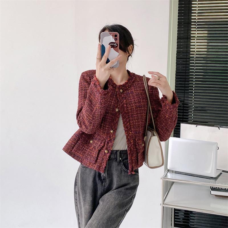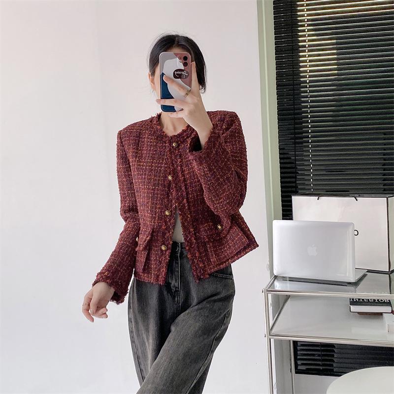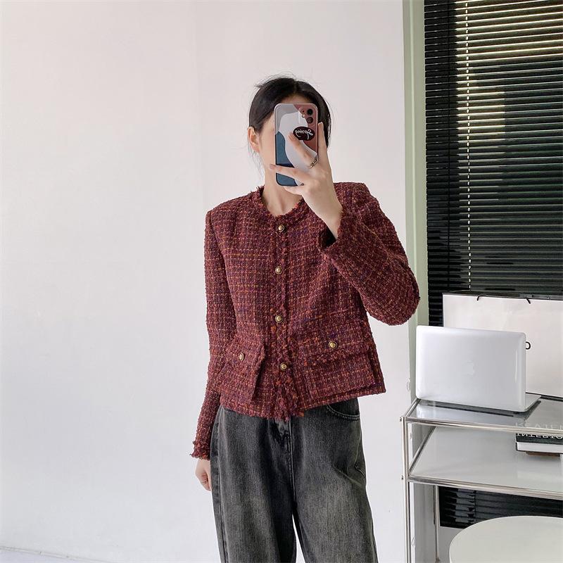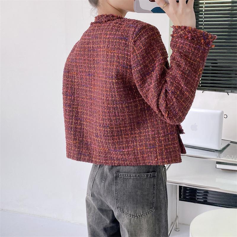 Abrigo estilo Chanel de color retro a juego de alta calidad Primavera y Otoño Top estilo francés socialité borlas abrigo corto Cuatro Estaciones Verde ropa de mujer