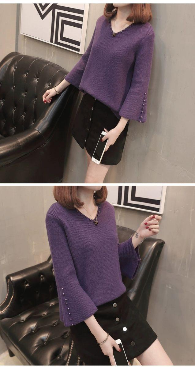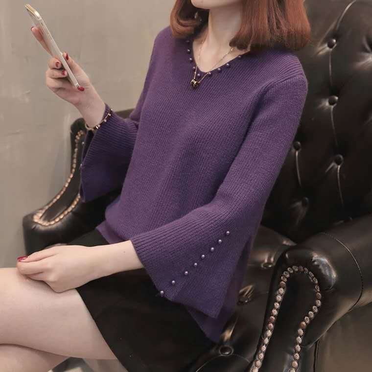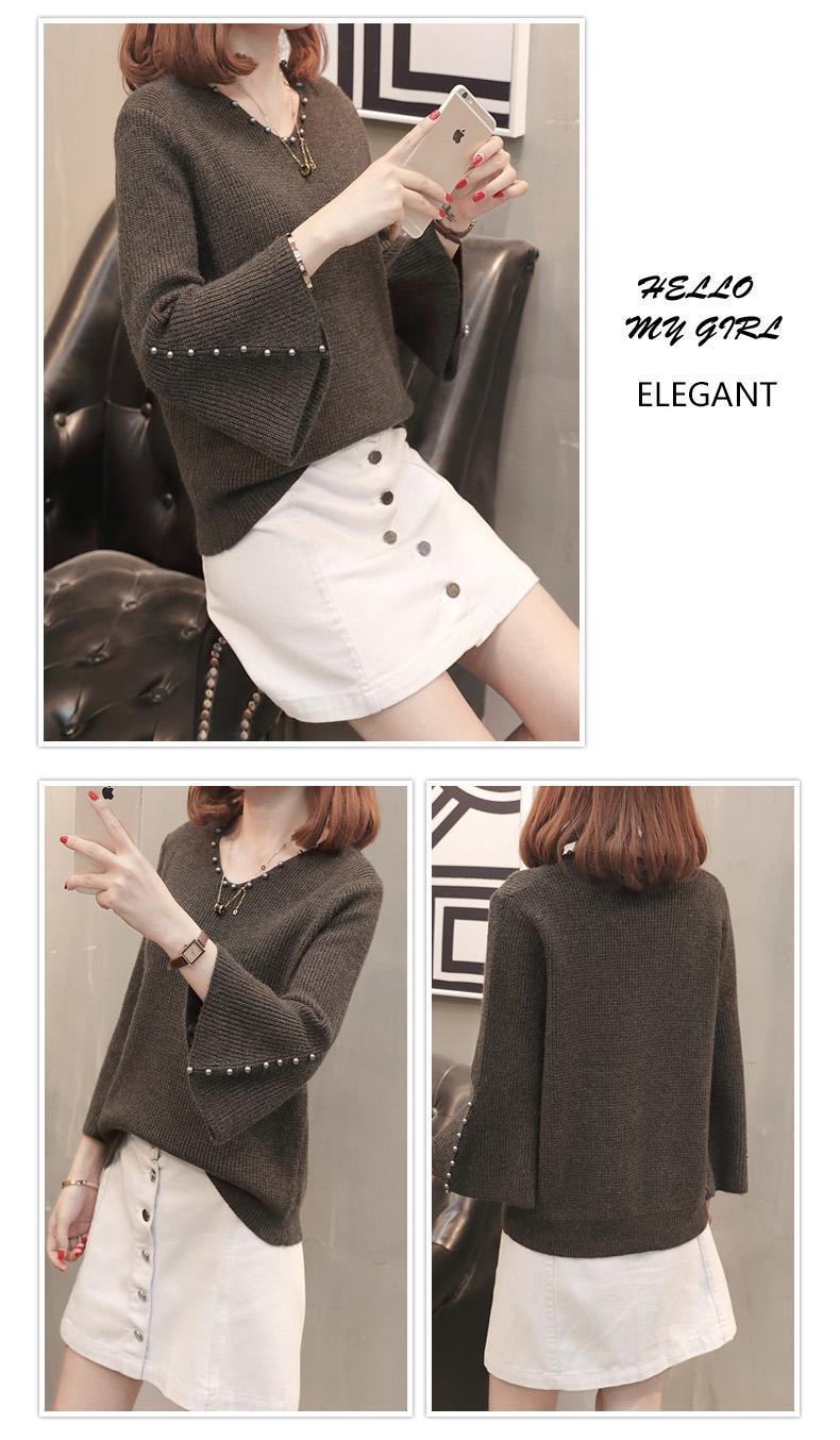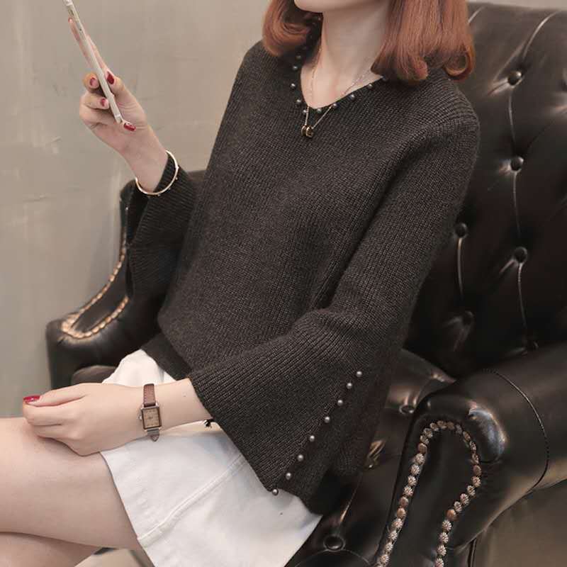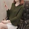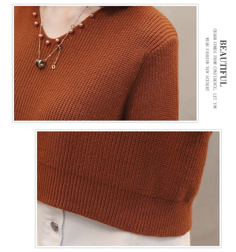 Ropa Nueva para Mujer 2025 Primavera Tejido de Punto Suéter para Mujer con Cuentas Estilo Coreano Suelto Corto Cuello en V Tejido de Punto para Fondo