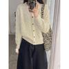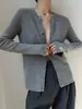 Comercio Exterior Nuevo Color Puro Cuello Redondo Monoprenda Manga Larga Simple Cárdigan de Punto Femenino Casual Tejido Pequeño Abrigo