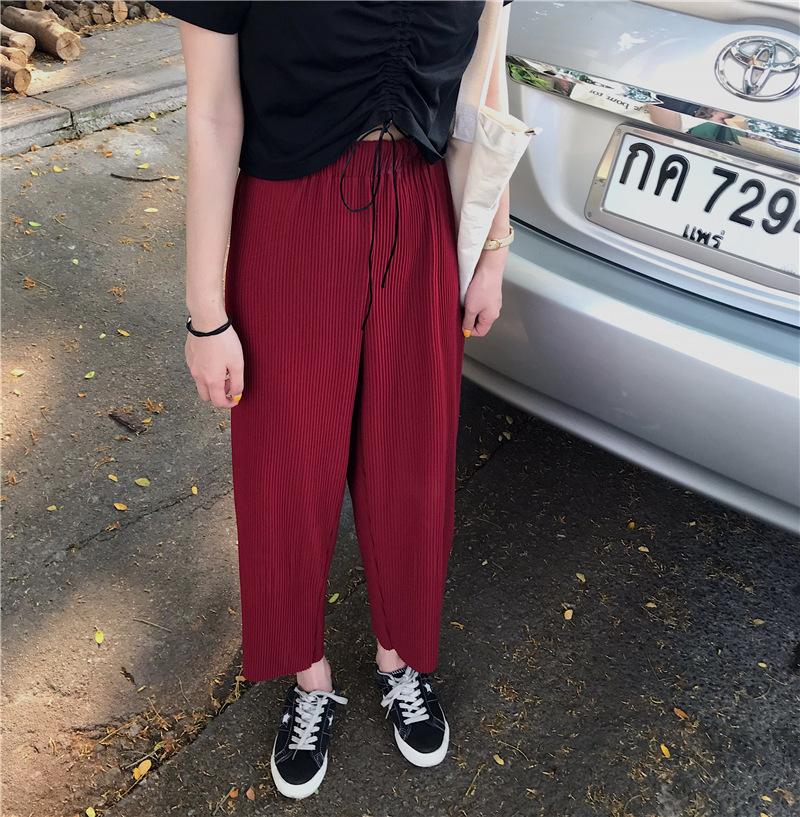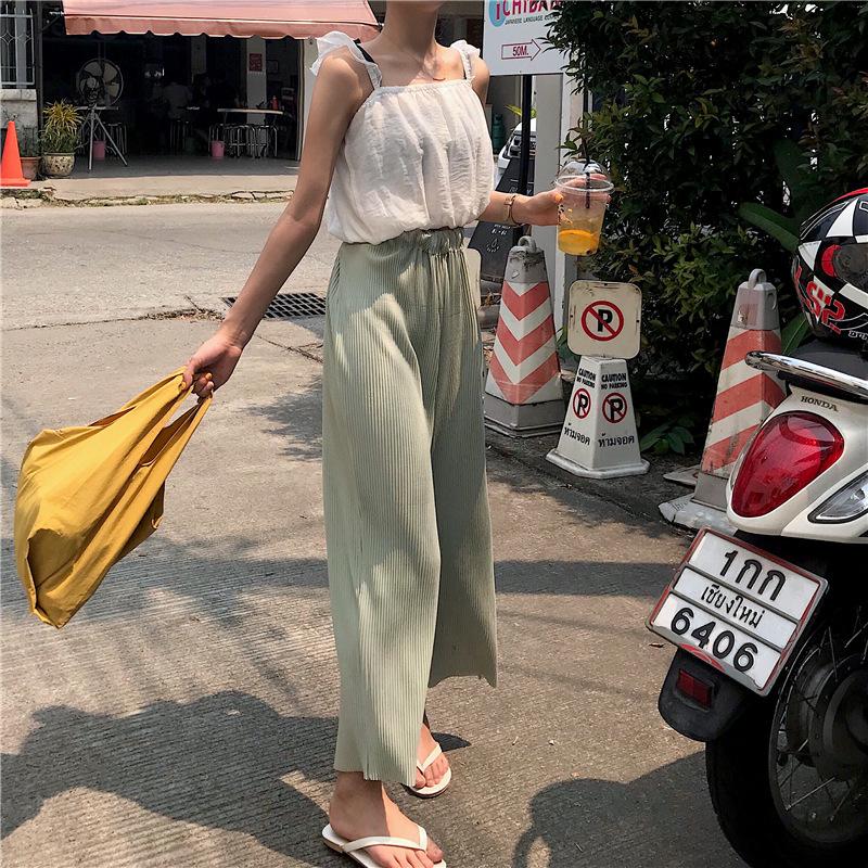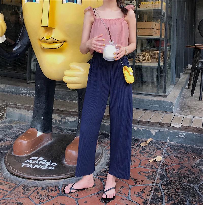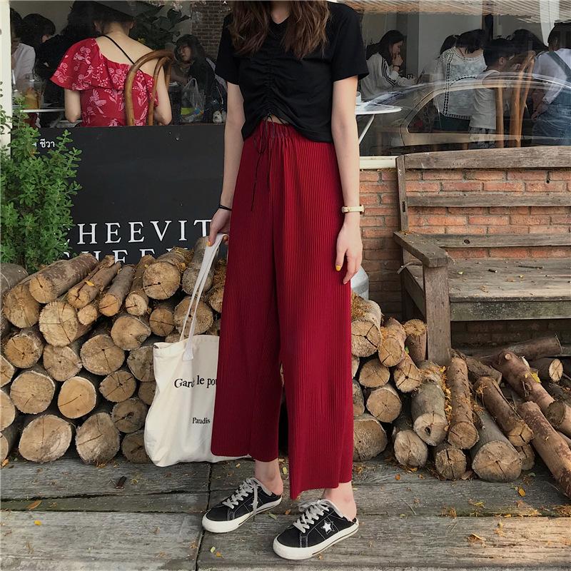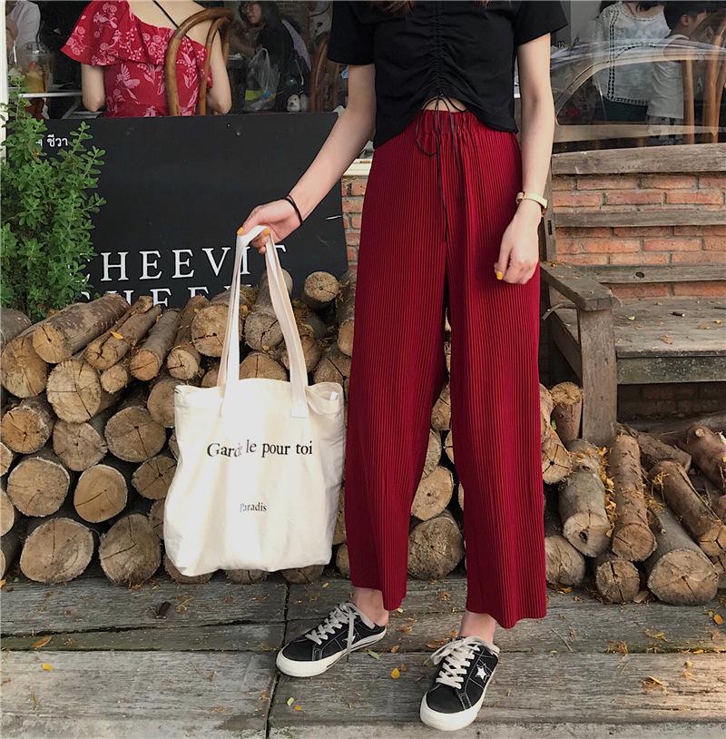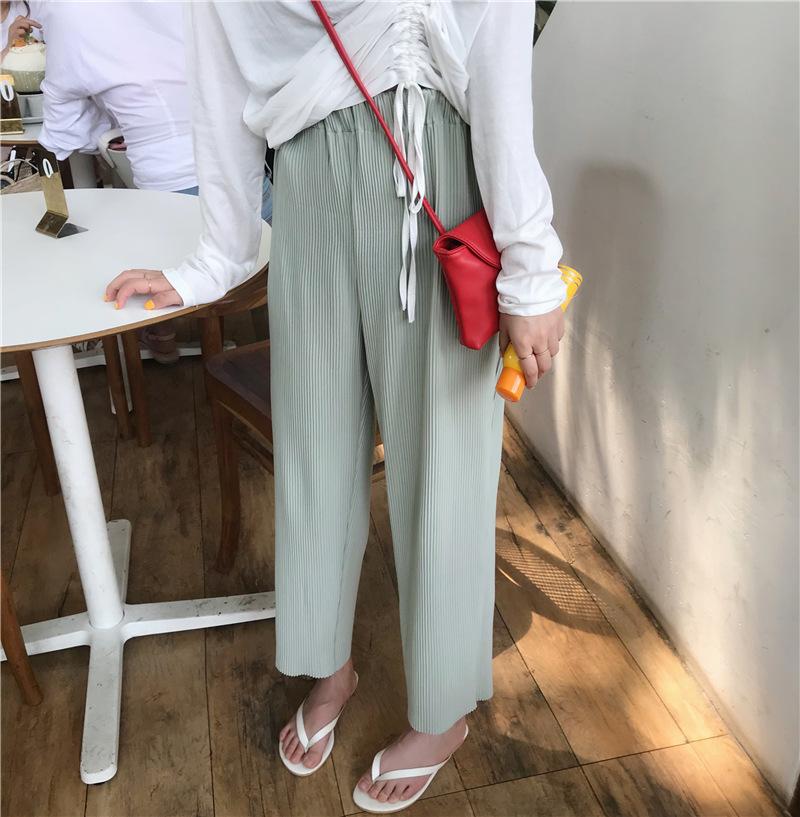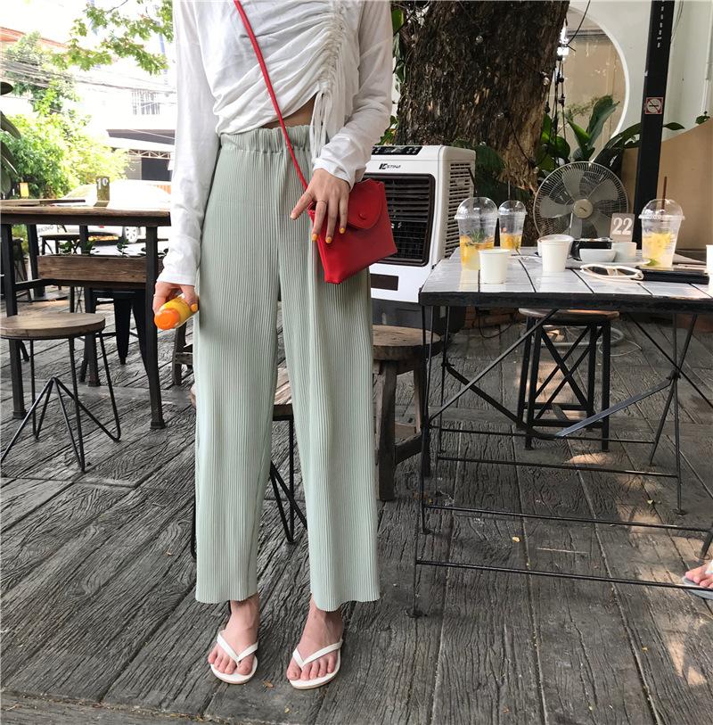 Pantalones casuales sueltos de verano estilo coreano, pantalones anchos plisados para mujer, pantalones ajustados de cintura alta hasta el tobillo, pantalones rectos con caída.