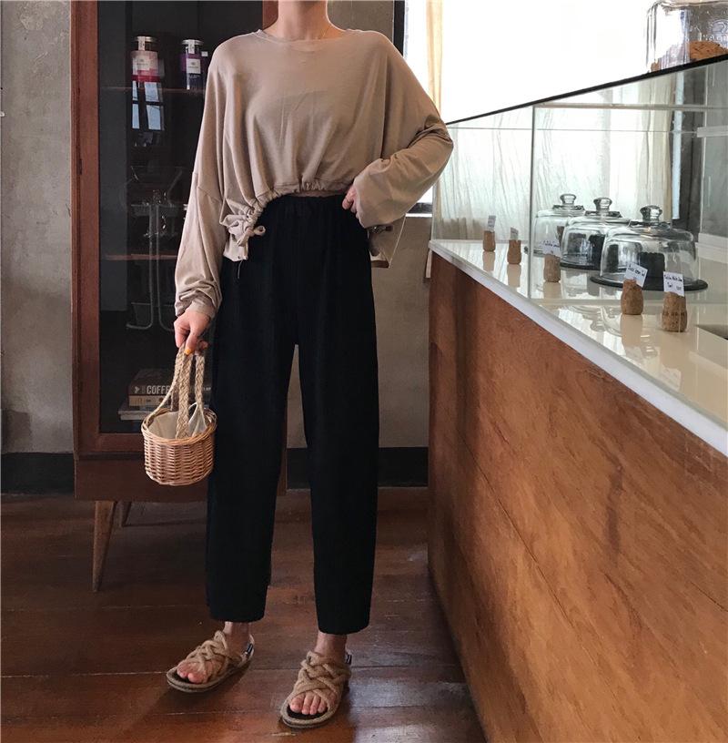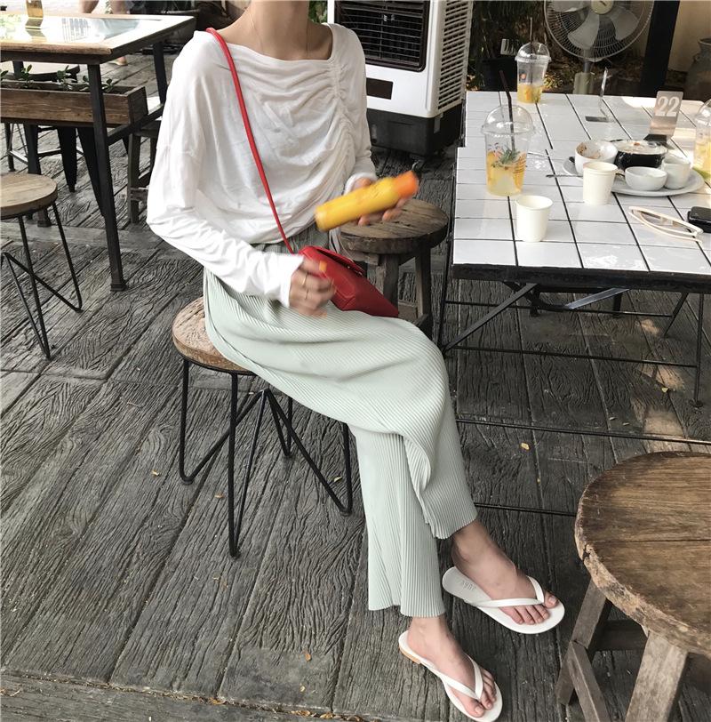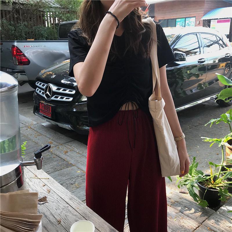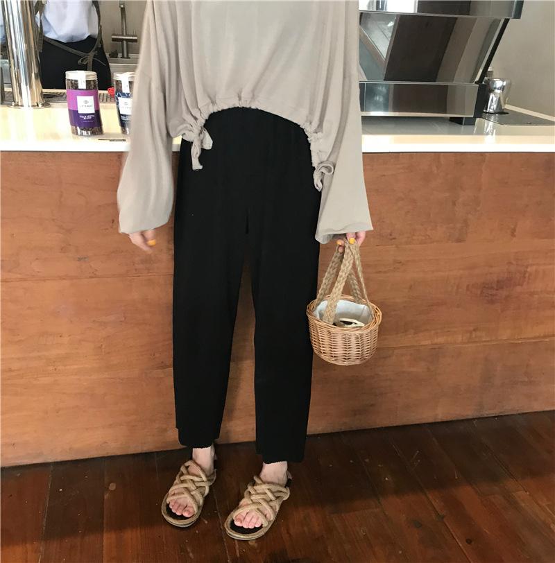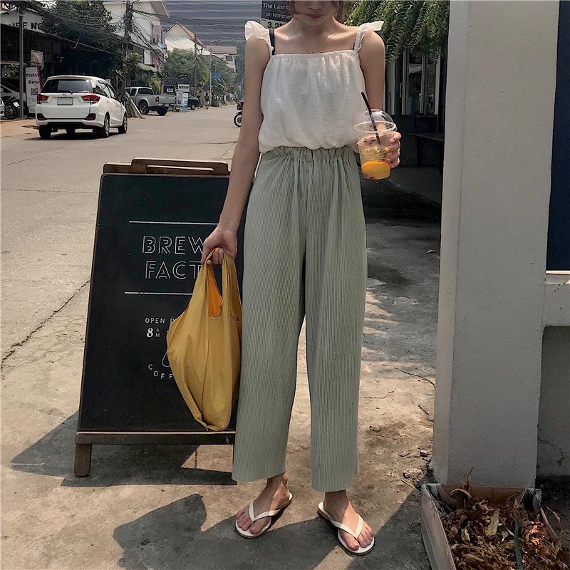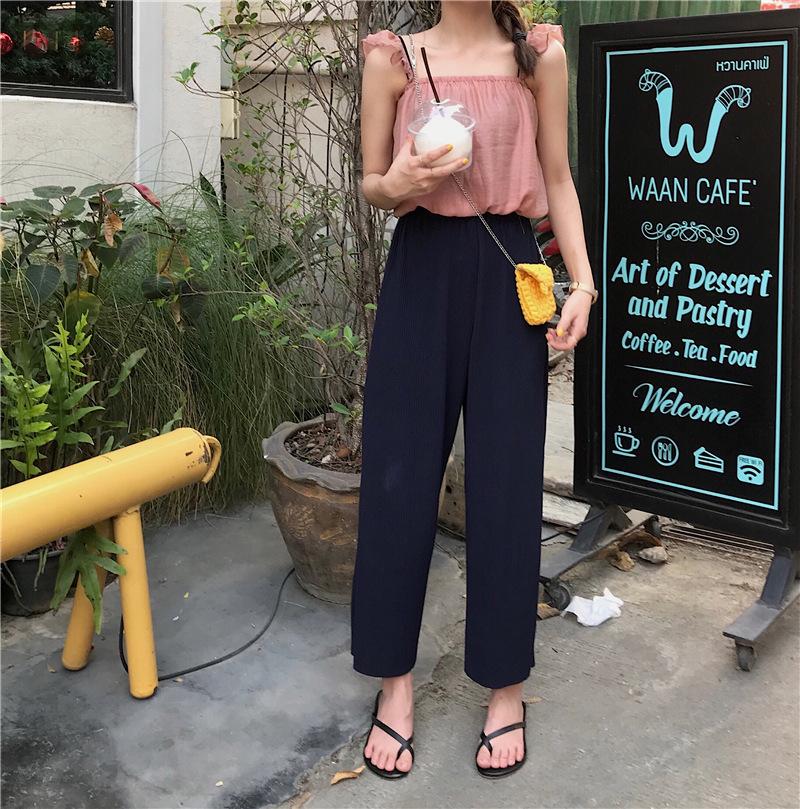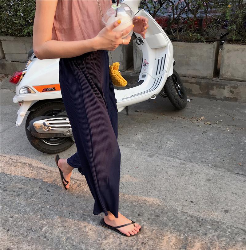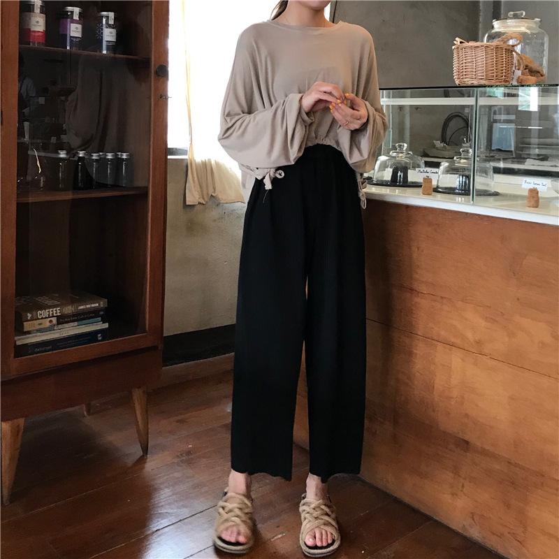 Pantalones casuales sueltos de verano estilo coreano, pantalones anchos plisados para mujer, pantalones ajustados de cintura alta hasta el tobillo, pantalones rectos con caída.