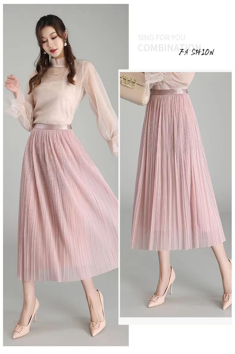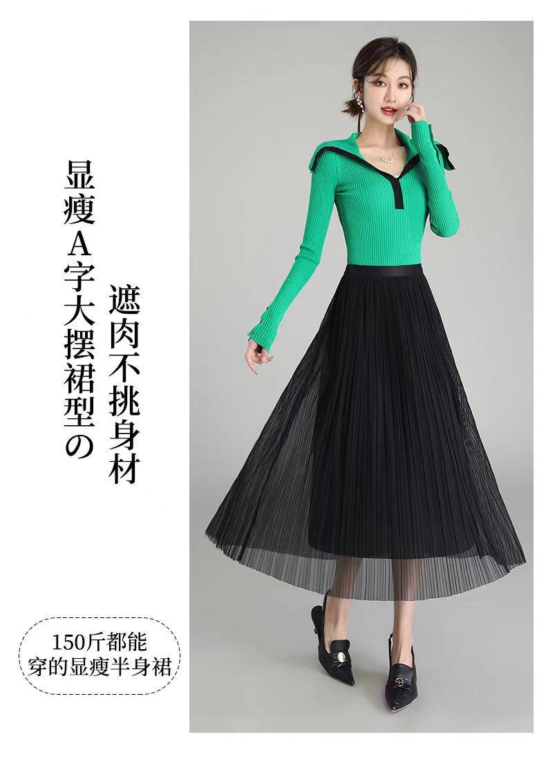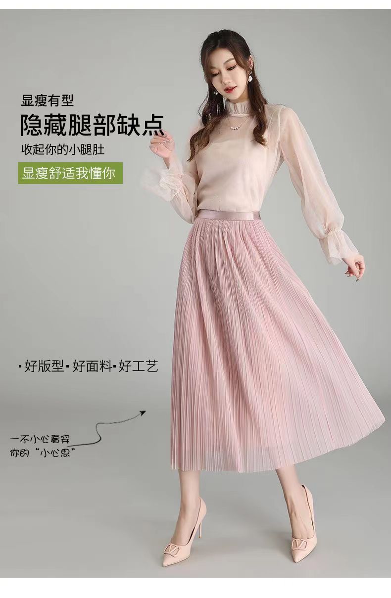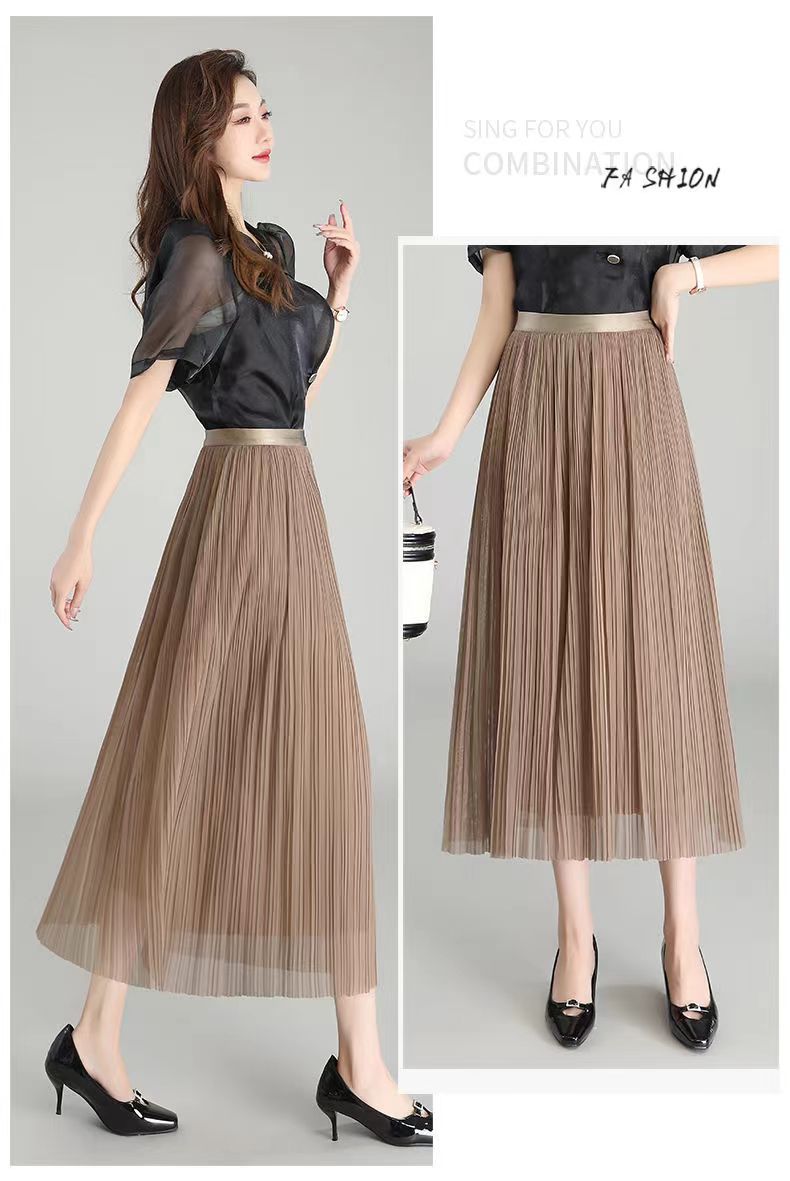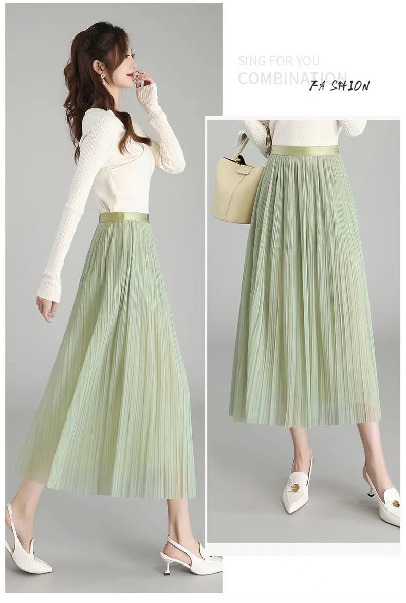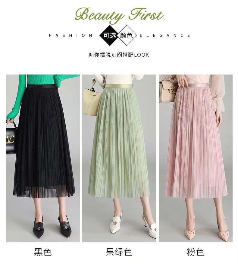 Falda de malla antimosquitos para mujer, primavera 2023, longitud media, temperamento, cintura alta, adelgazante, plisada