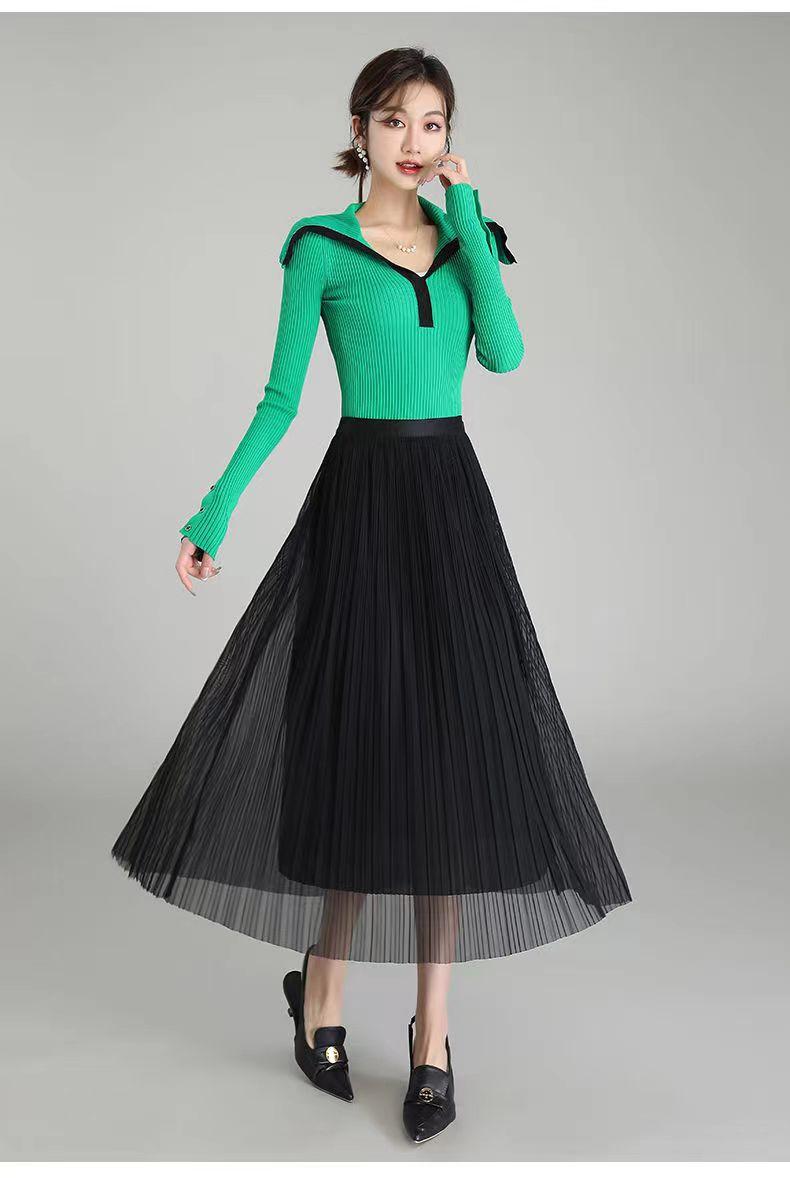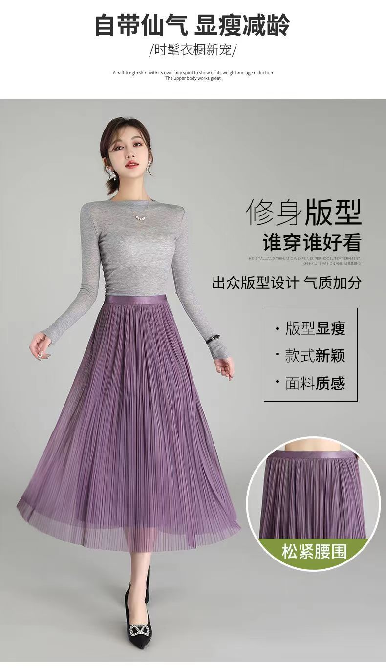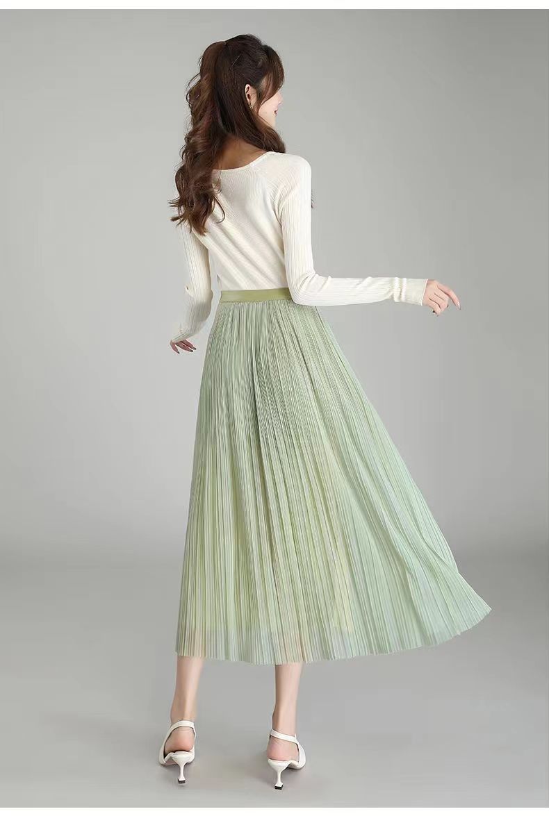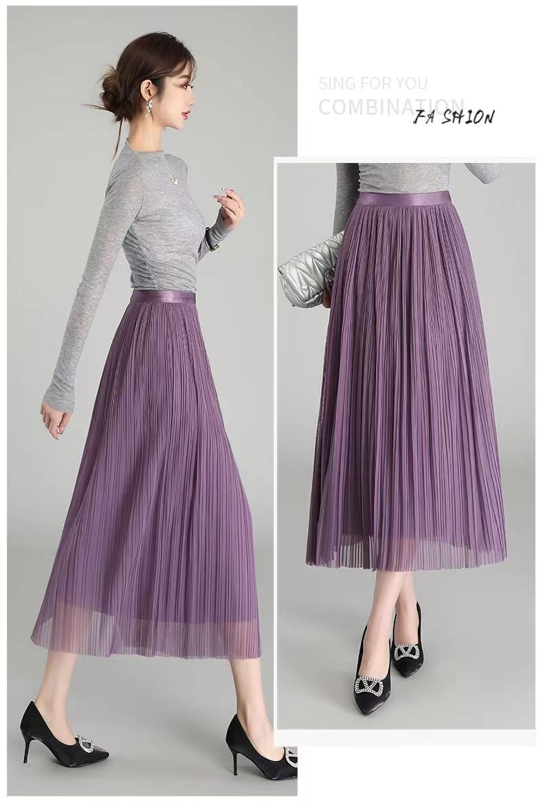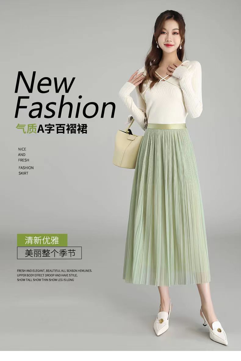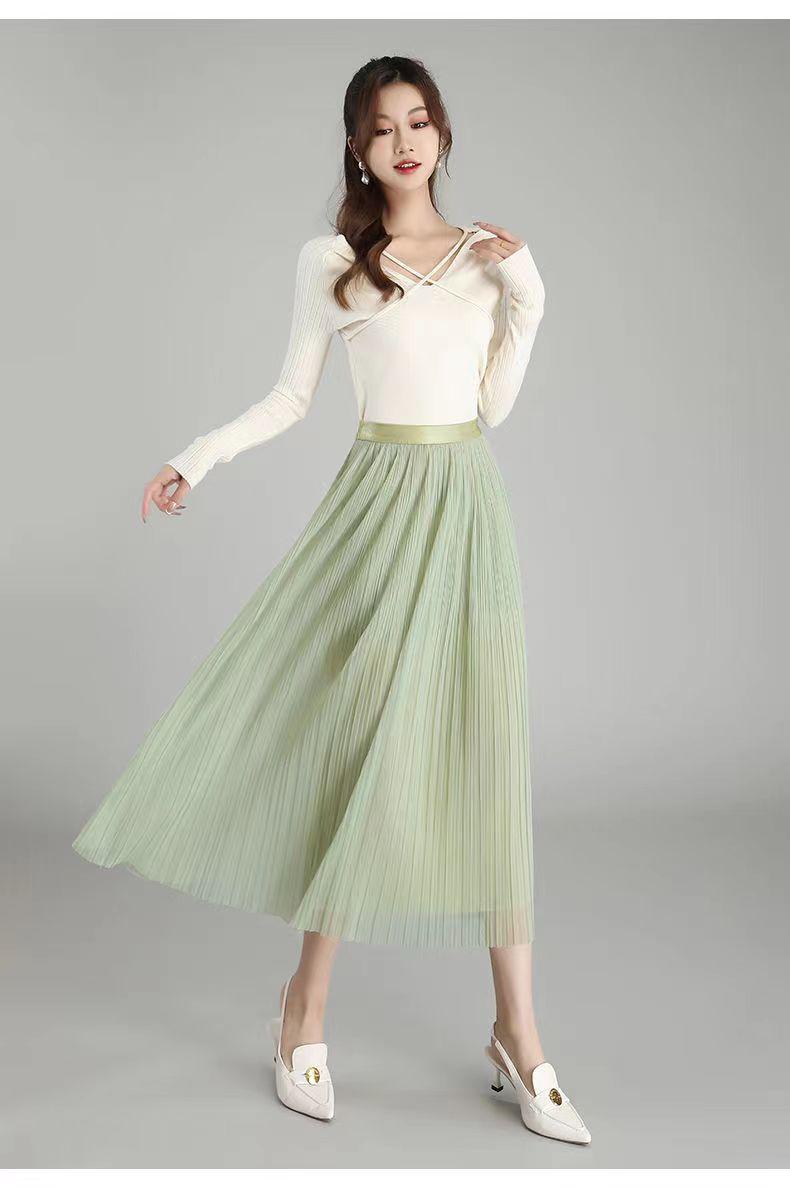 Falda de malla antimosquitos para mujer, primavera 2023, longitud media, temperamento, cintura alta, adelgazante, plisada