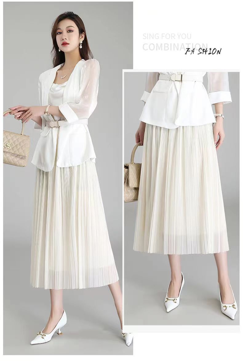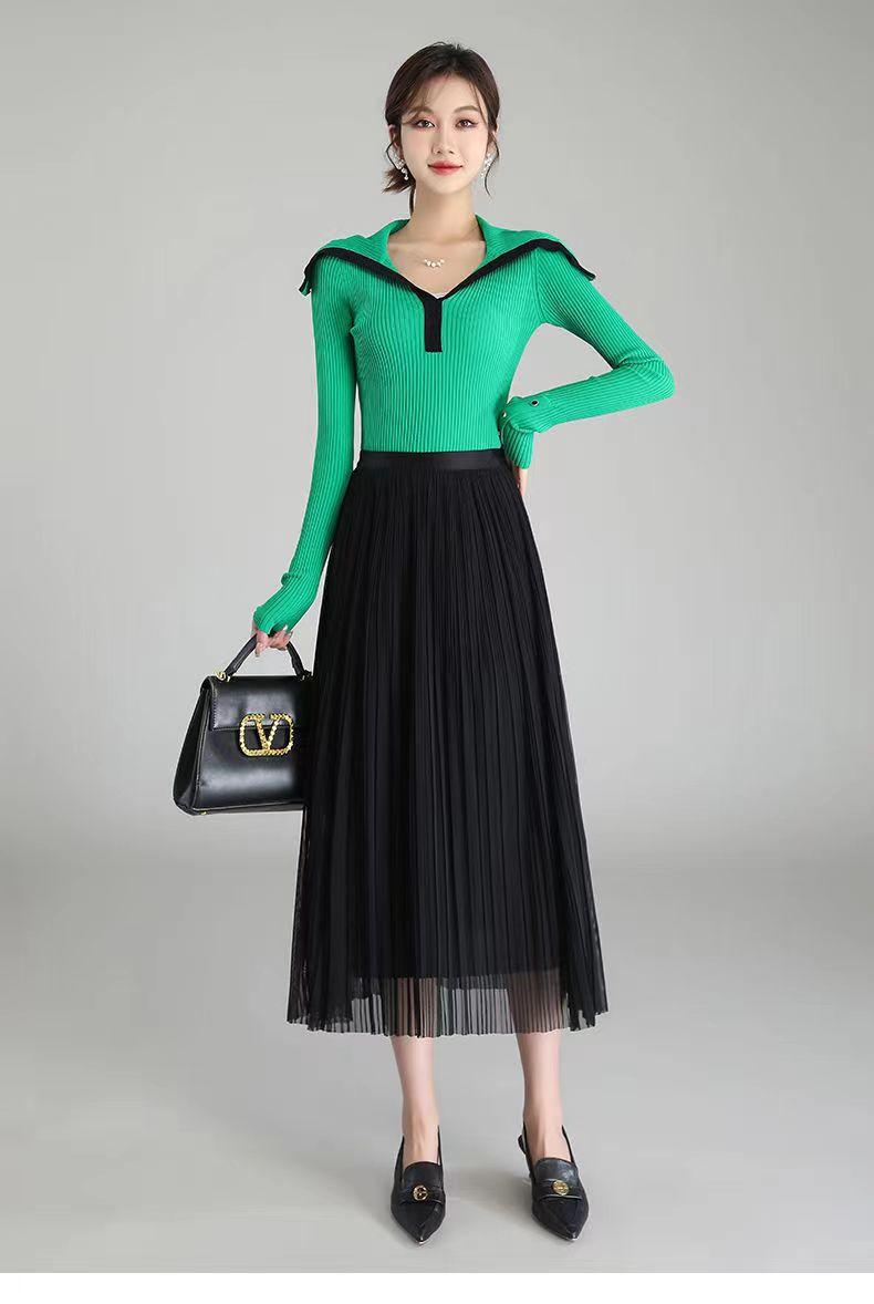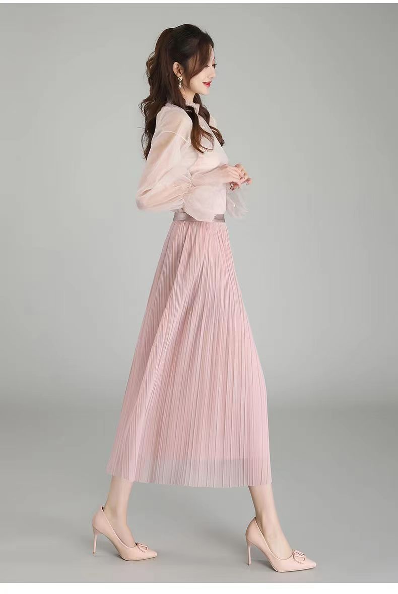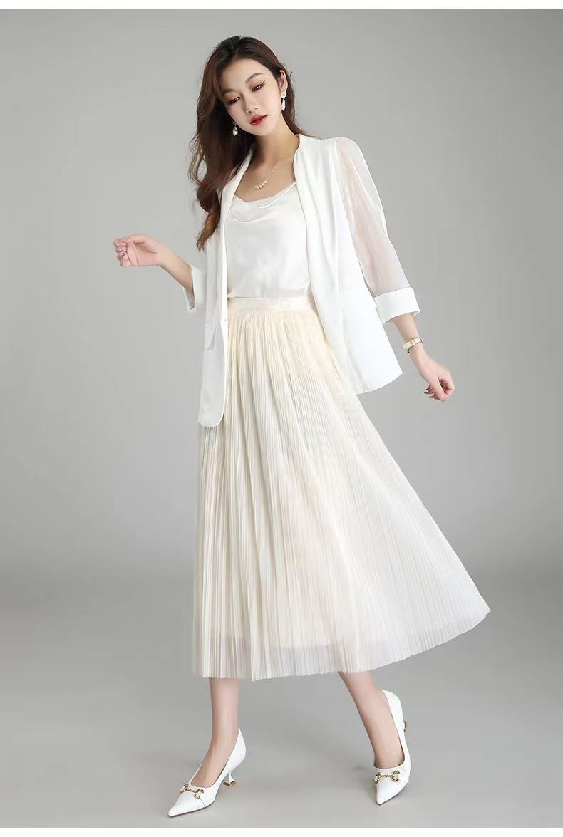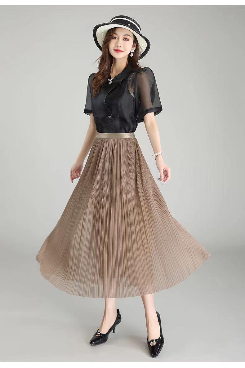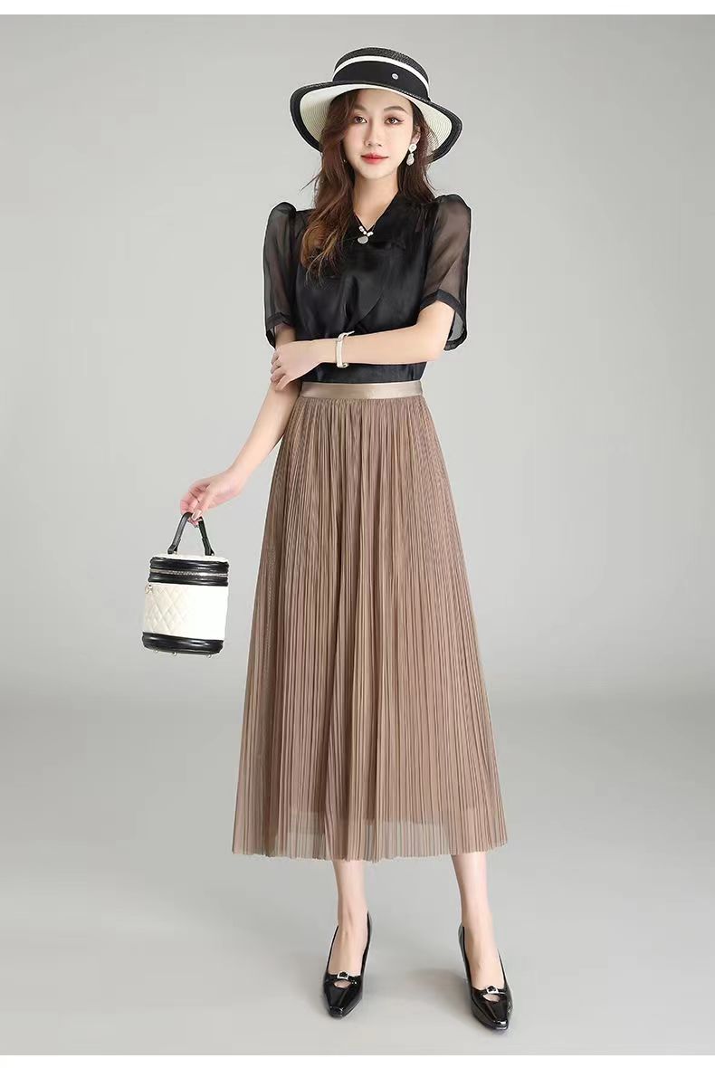 Falda de malla antimosquitos para mujer, primavera 2023, longitud media, temperamento, cintura alta, adelgazante, plisada