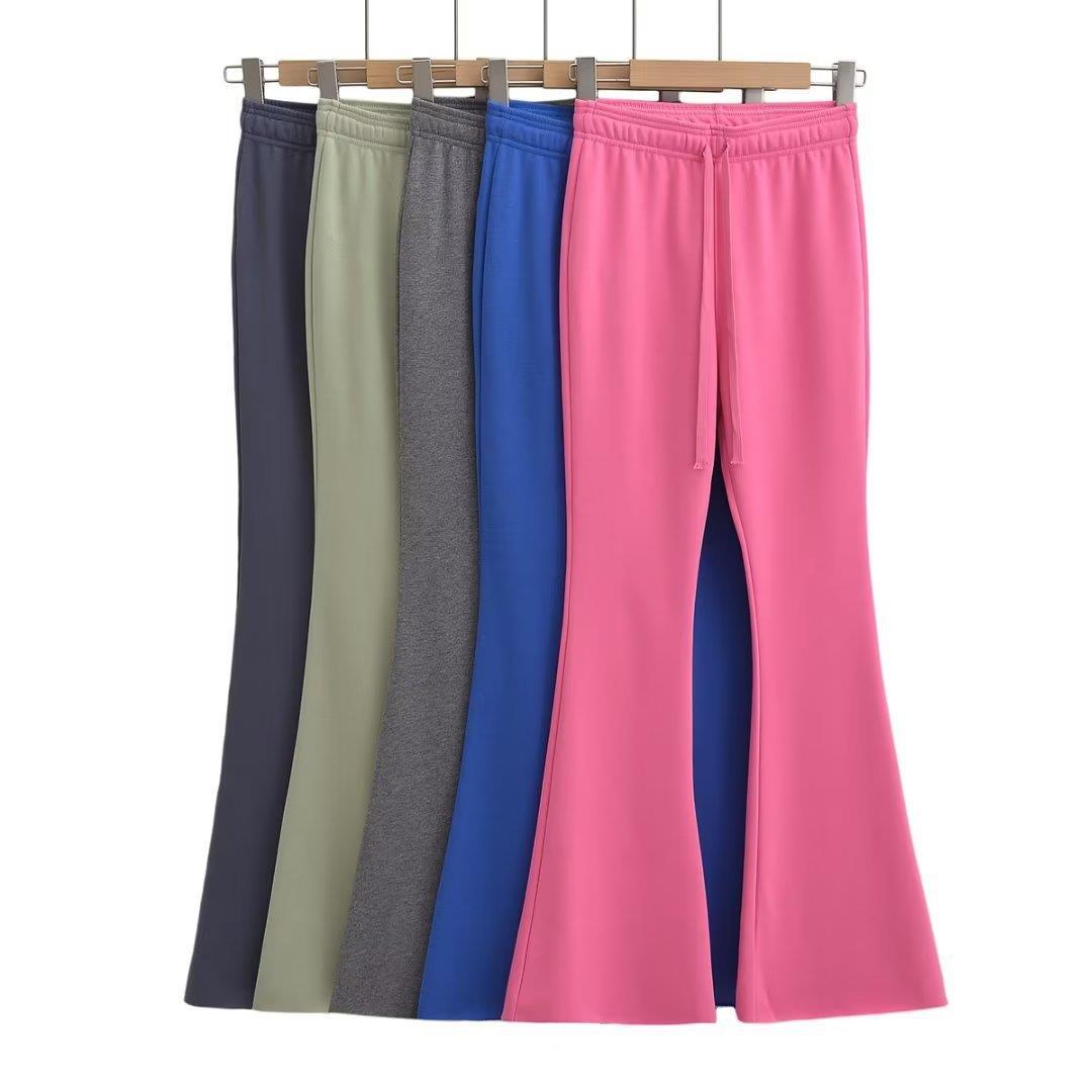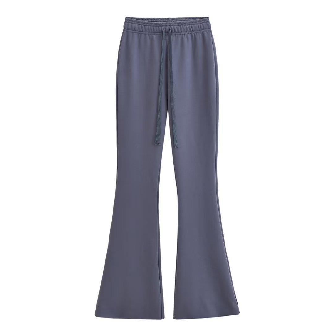 Pantalones deshilachados de cintura alta con cordones estilo europeo y americano para mujer, otoño 2023, nuevos pantalones casuales rectos de cintura alta