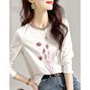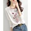 Camiseta blanca de manga larga para mujer, primavera 2023, nueva, cuello redondo, adelgazante, sencilla, combinable, informal, estampada, para mujer