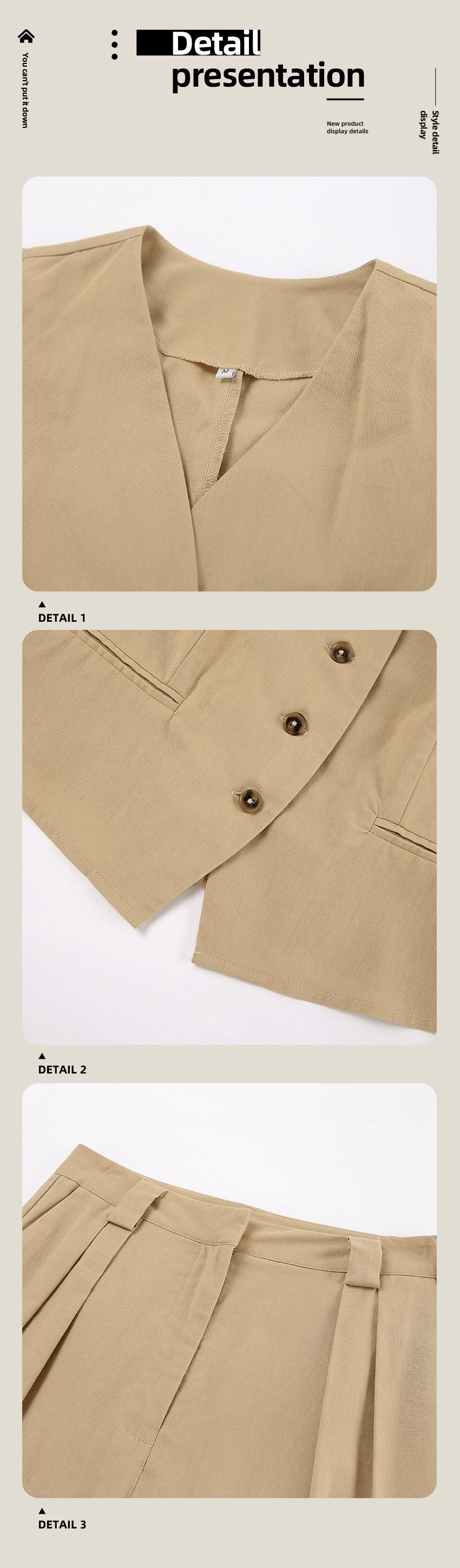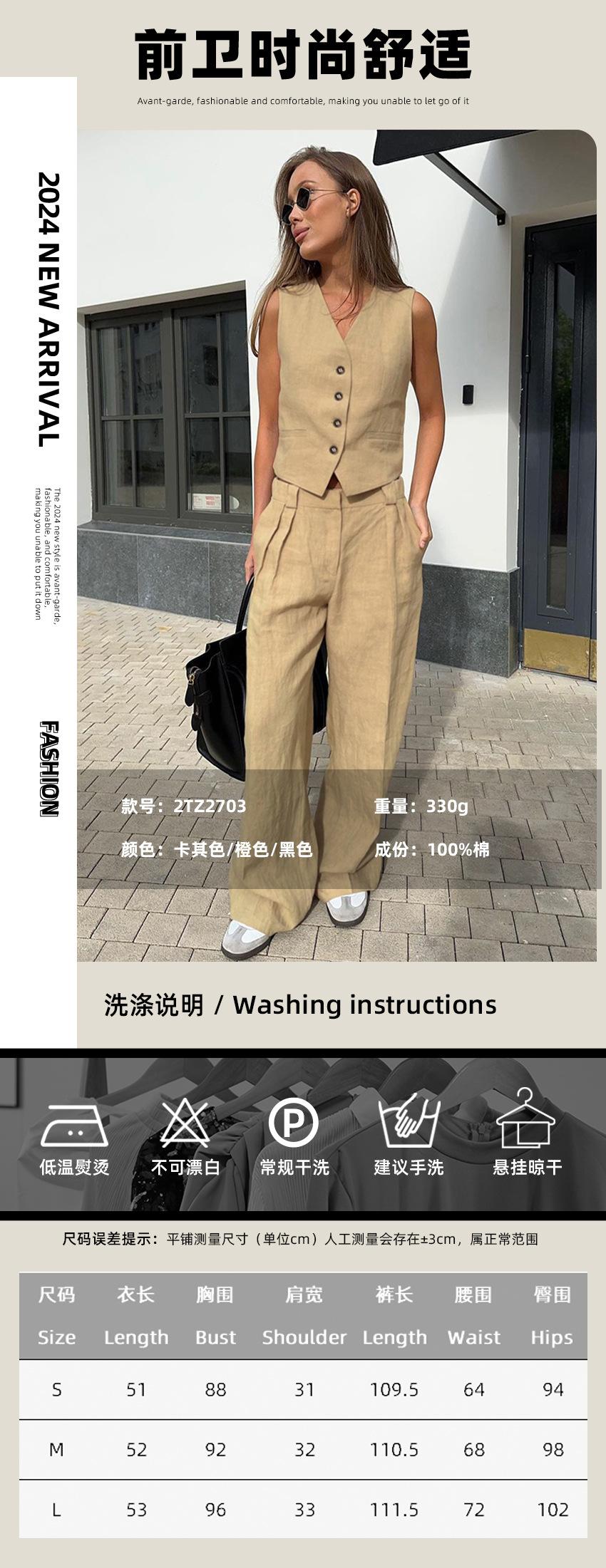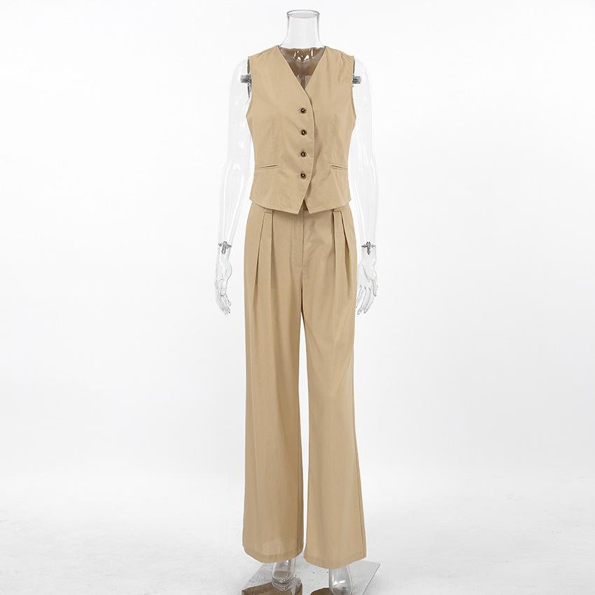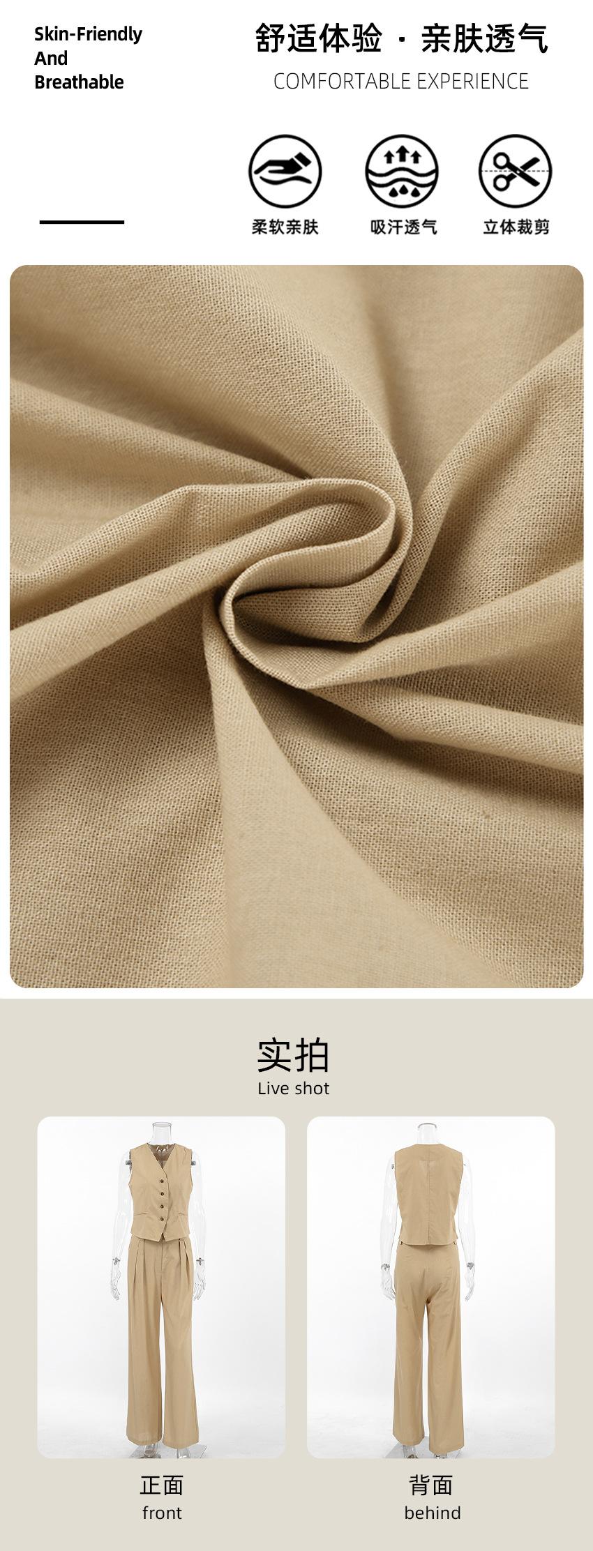 Traje Caqui Europeo y Americano para Viajero Pantalón Chaleco Conjunto de Dos Piezas Ropa de Mujer Moda Otoño 2025 Traje de Algodón y Lino al por Mayor
