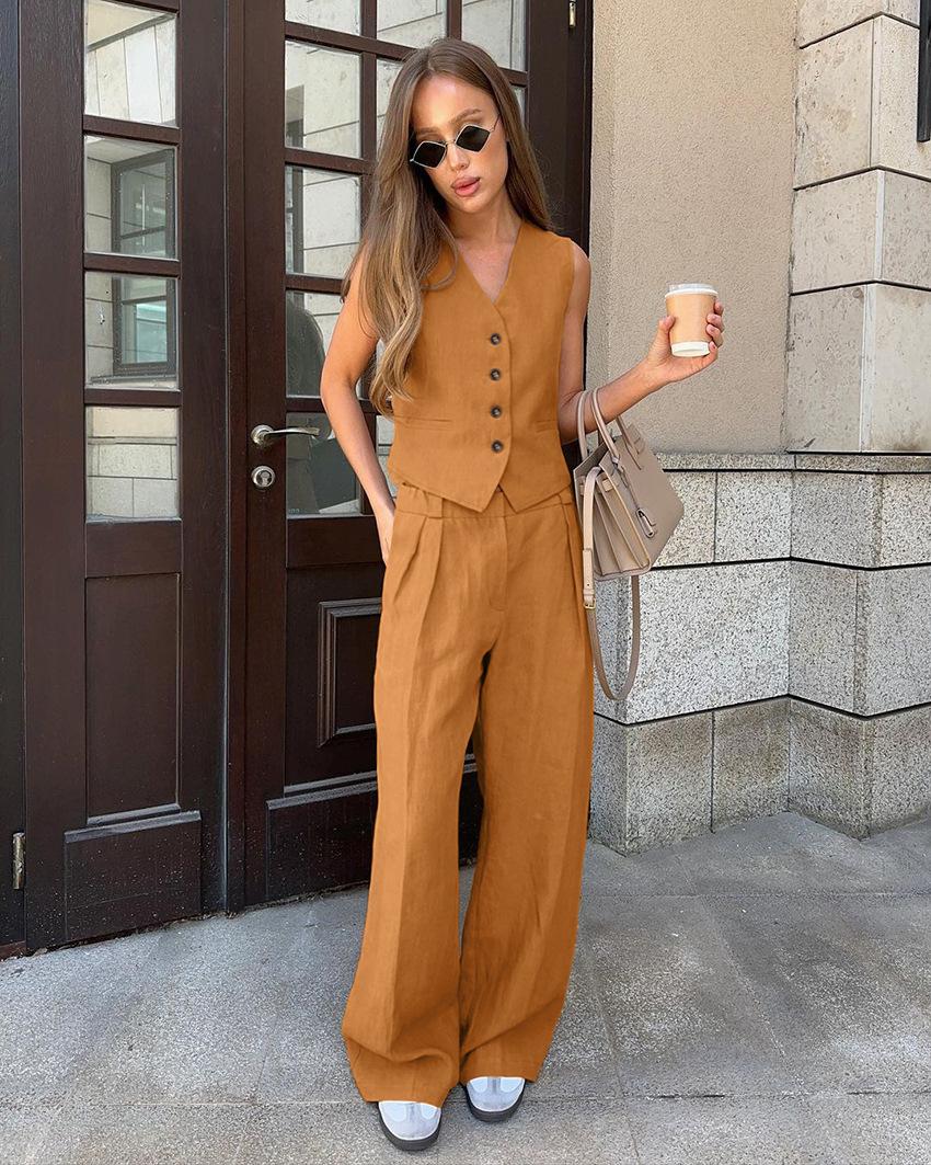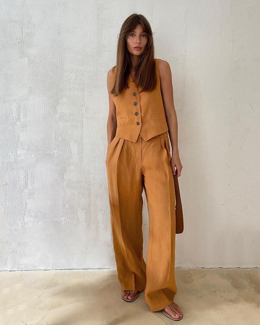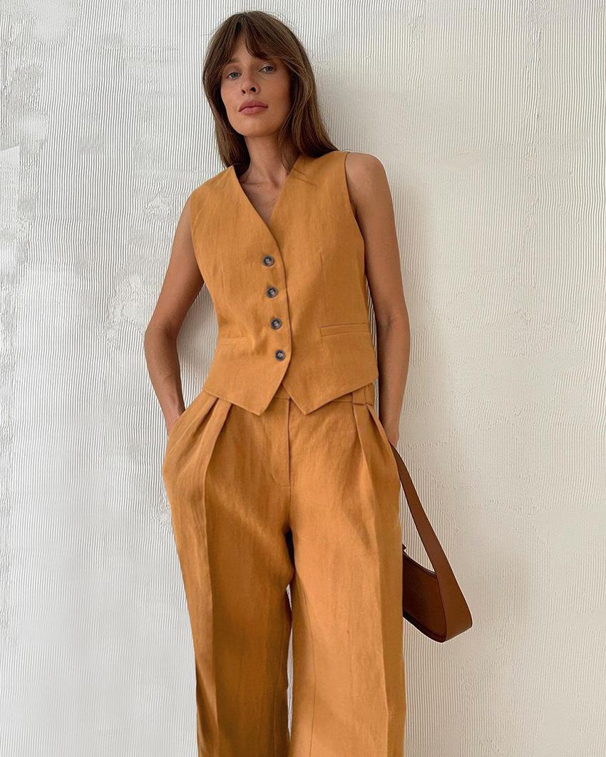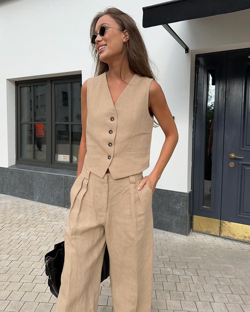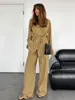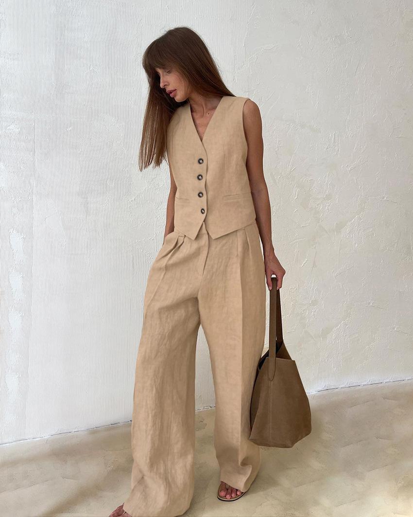 Traje Caqui Europeo y Americano para Viajero Pantalón Chaleco Conjunto de Dos Piezas Ropa de Mujer Moda Otoño 2025 Traje de Algodón y Lino al por Mayor