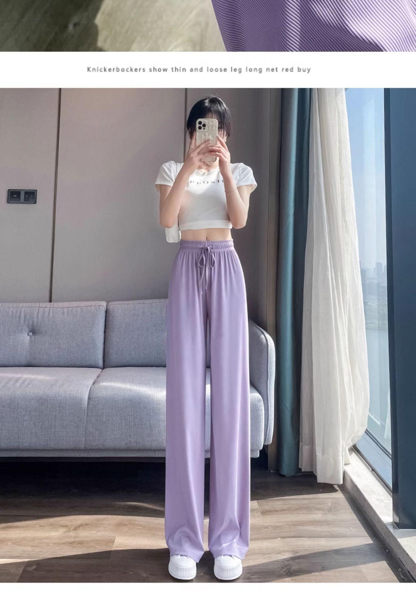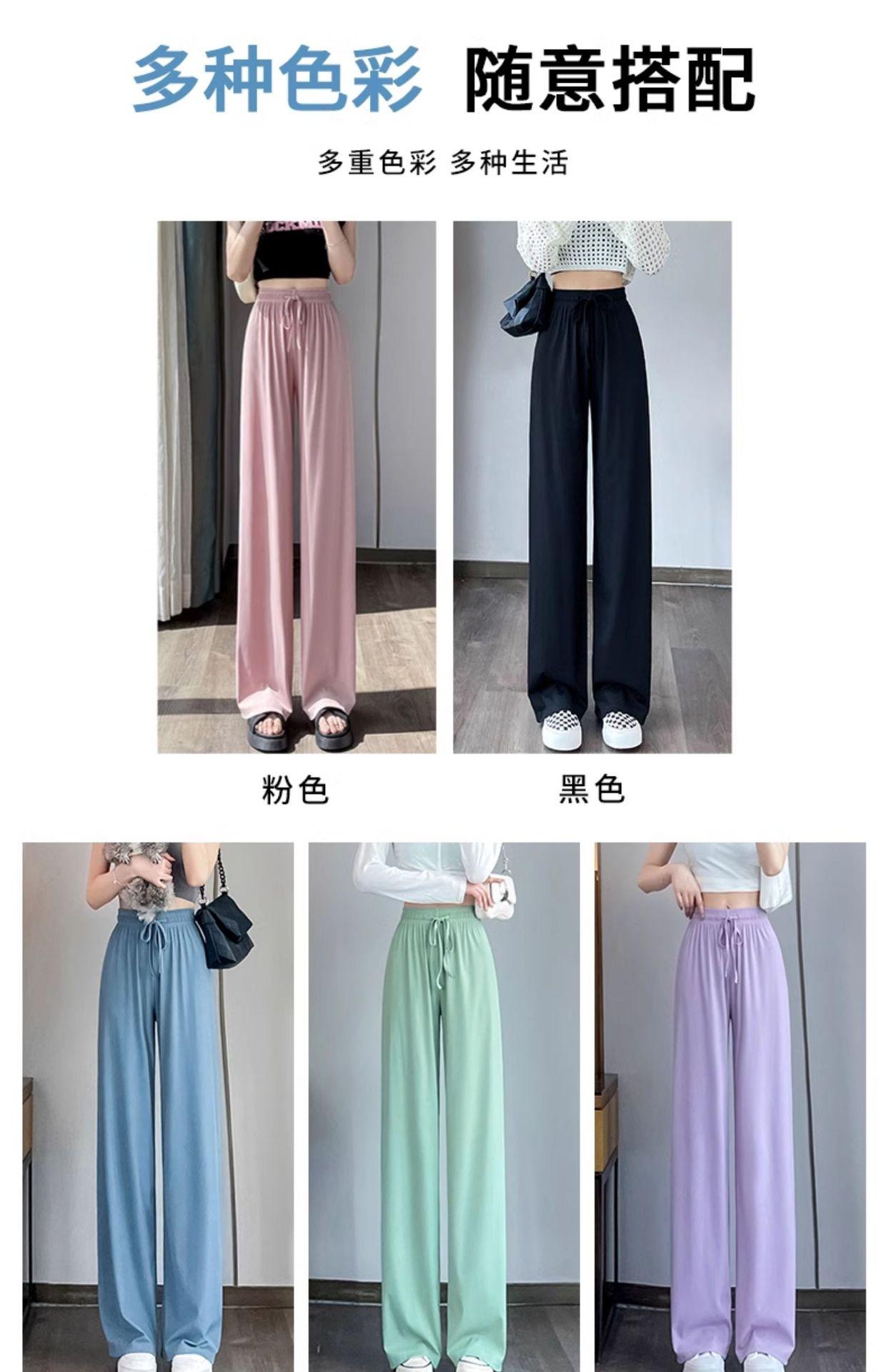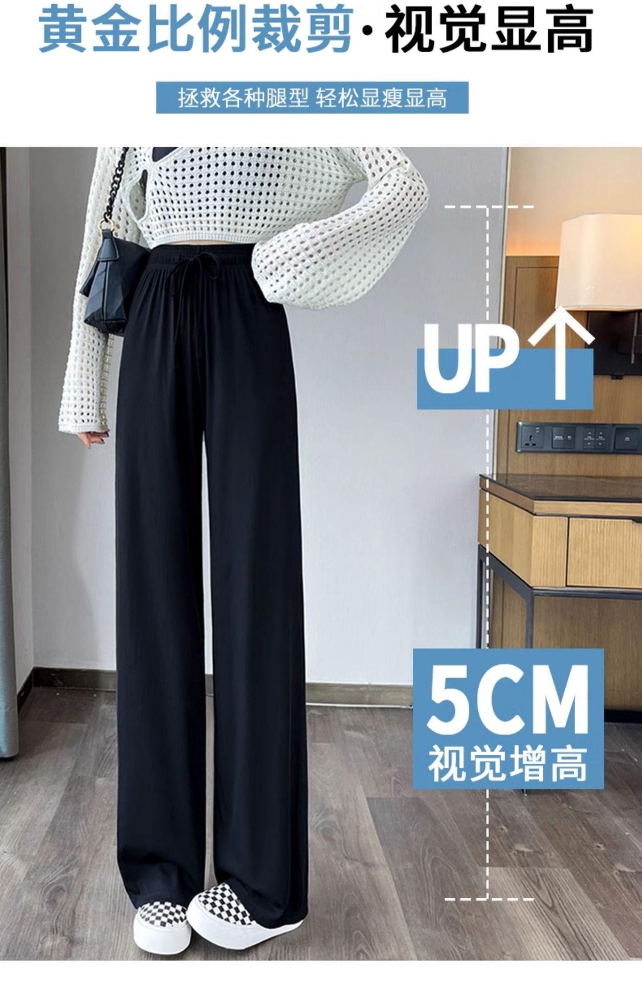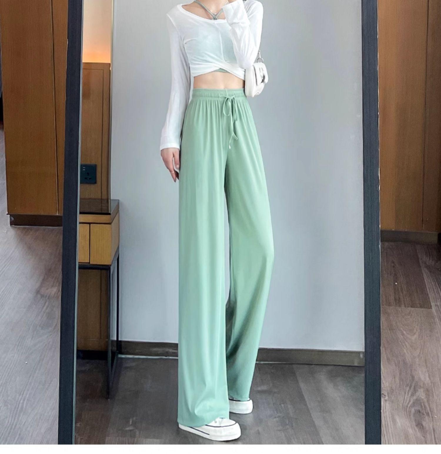 Pantalones de Pierna Ancha de Seda Helada para Mujer Verano Delgados 2025 Nuevos Cintura Alta Caída Pequeños Casuales Sueltos Slim Rectos