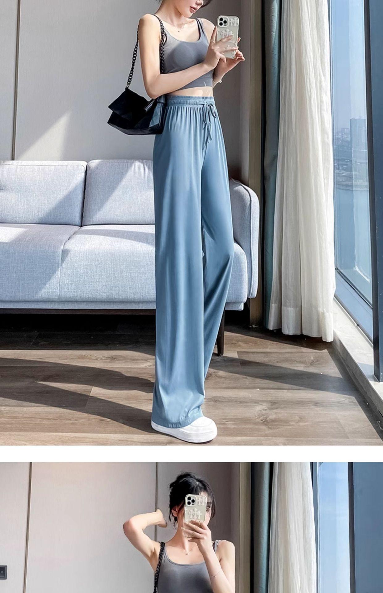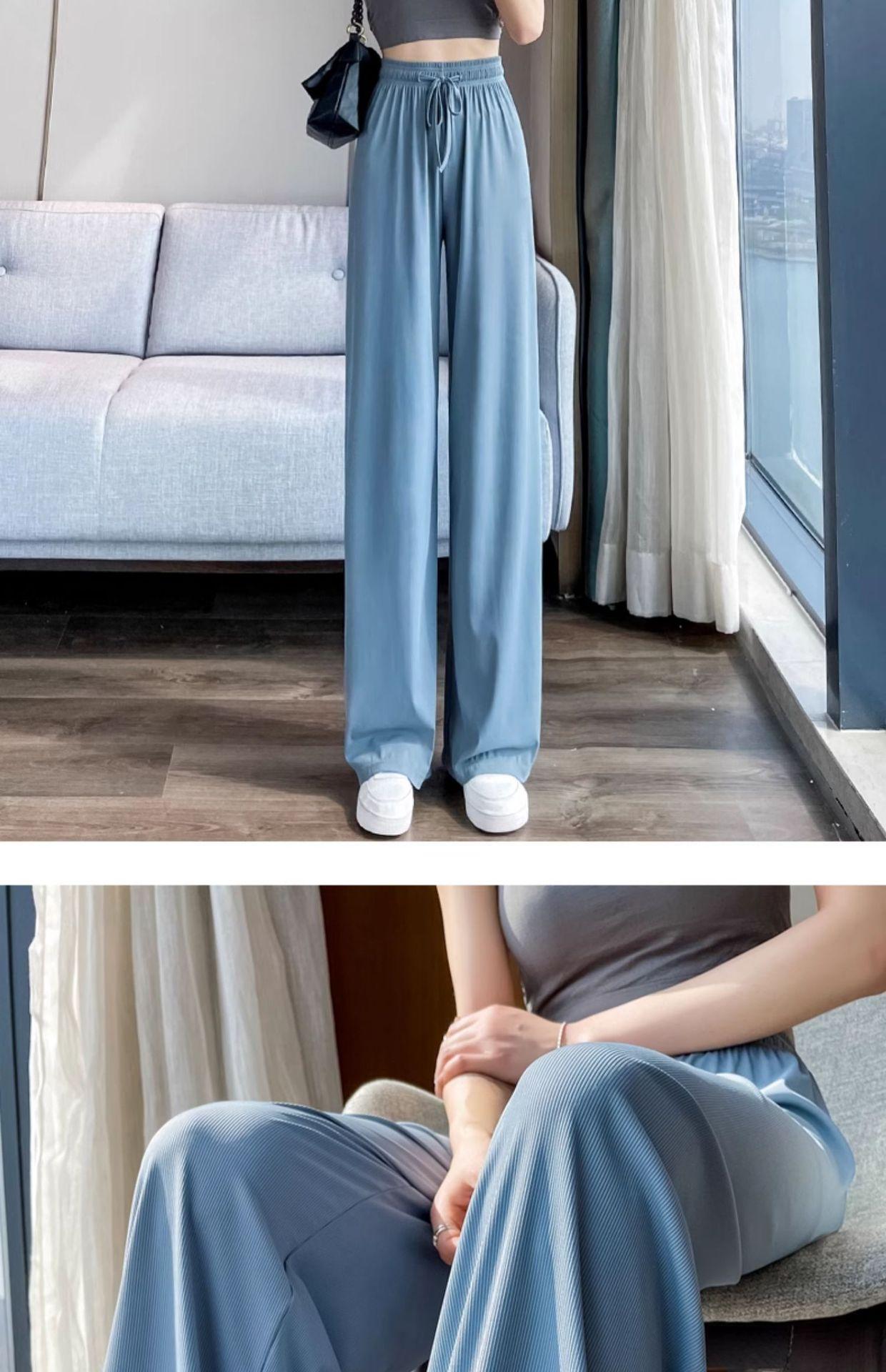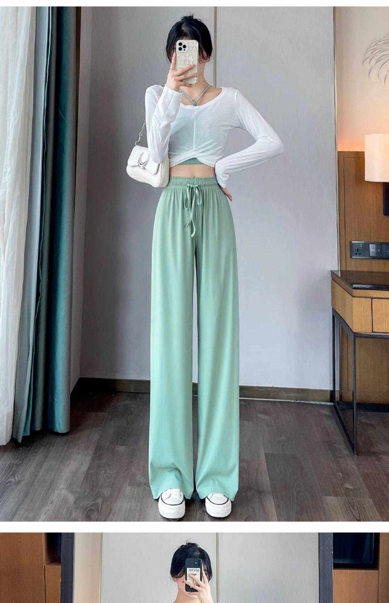 Pantalones de Pierna Ancha de Seda Helada para Mujer Verano Delgados 2025 Nuevos Cintura Alta Caída Pequeños Casuales Sueltos Slim Rectos