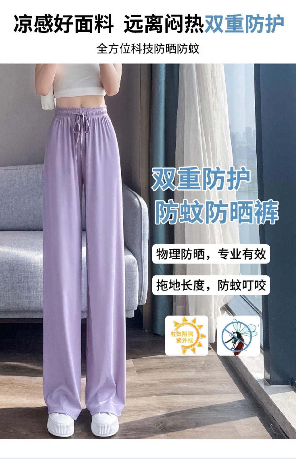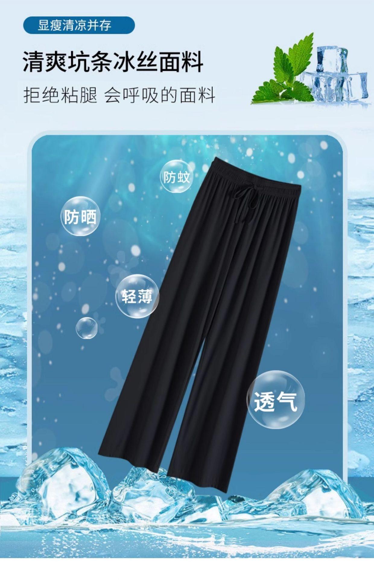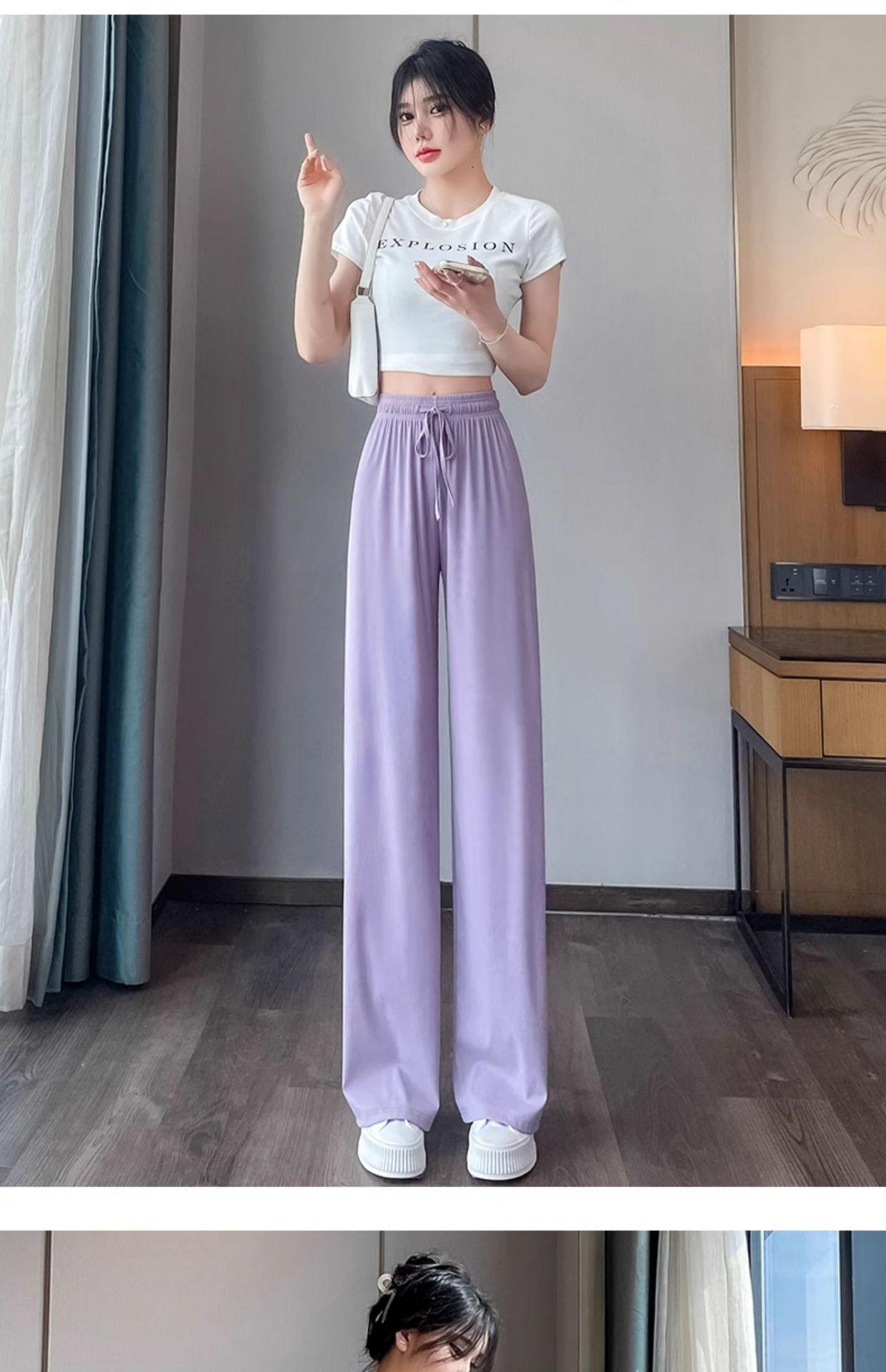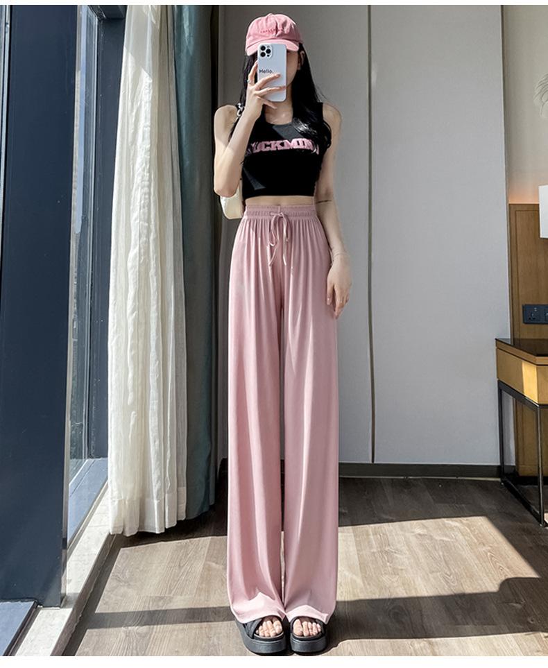 Pantalones de Pierna Ancha de Seda Helada para Mujer Verano Delgados 2025 Nuevos Cintura Alta Caída Pequeños Casuales Sueltos Slim Rectos