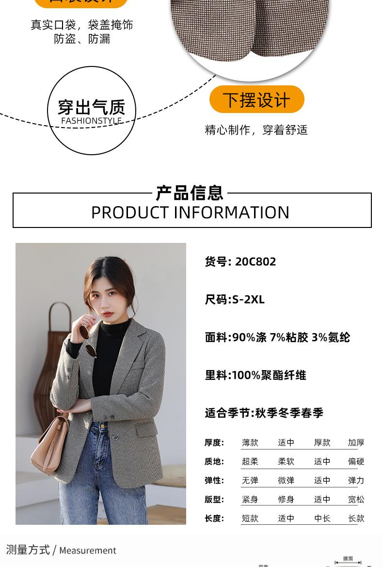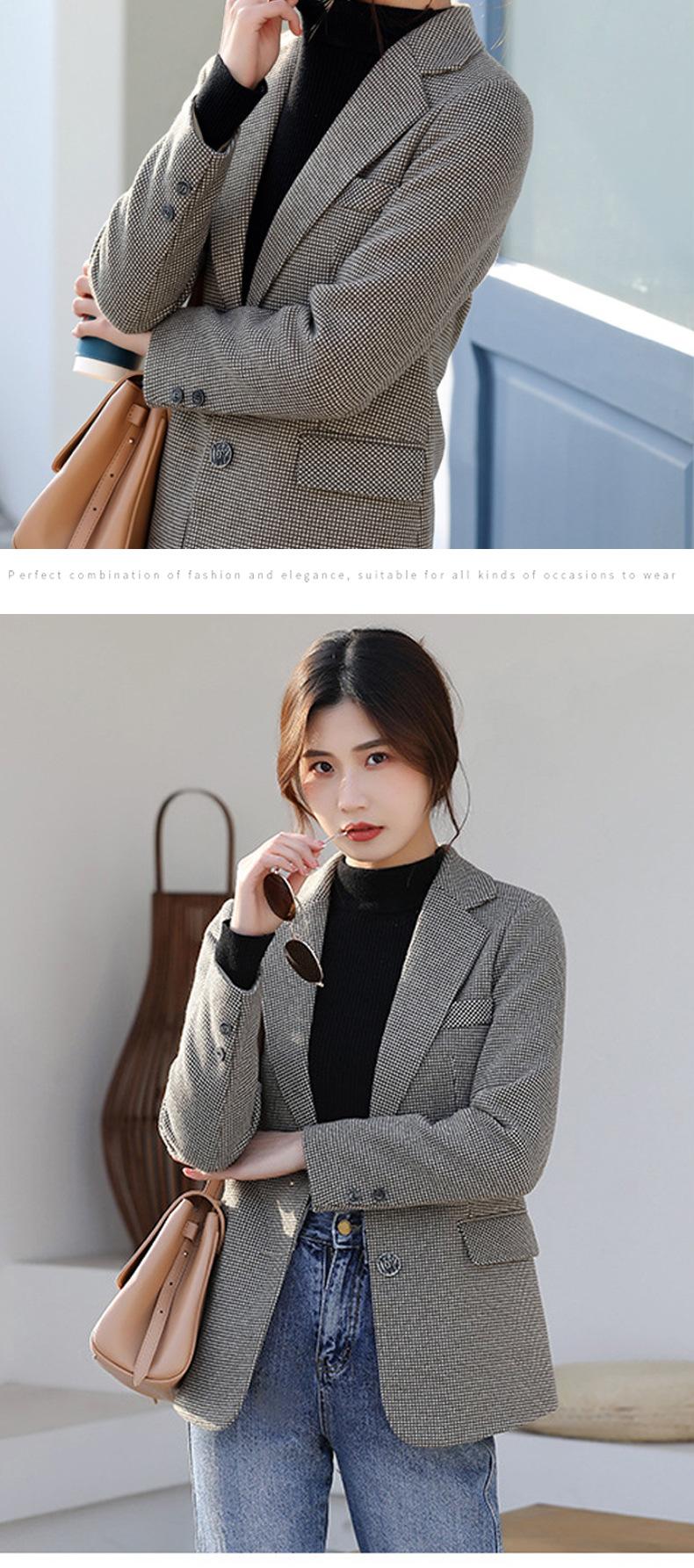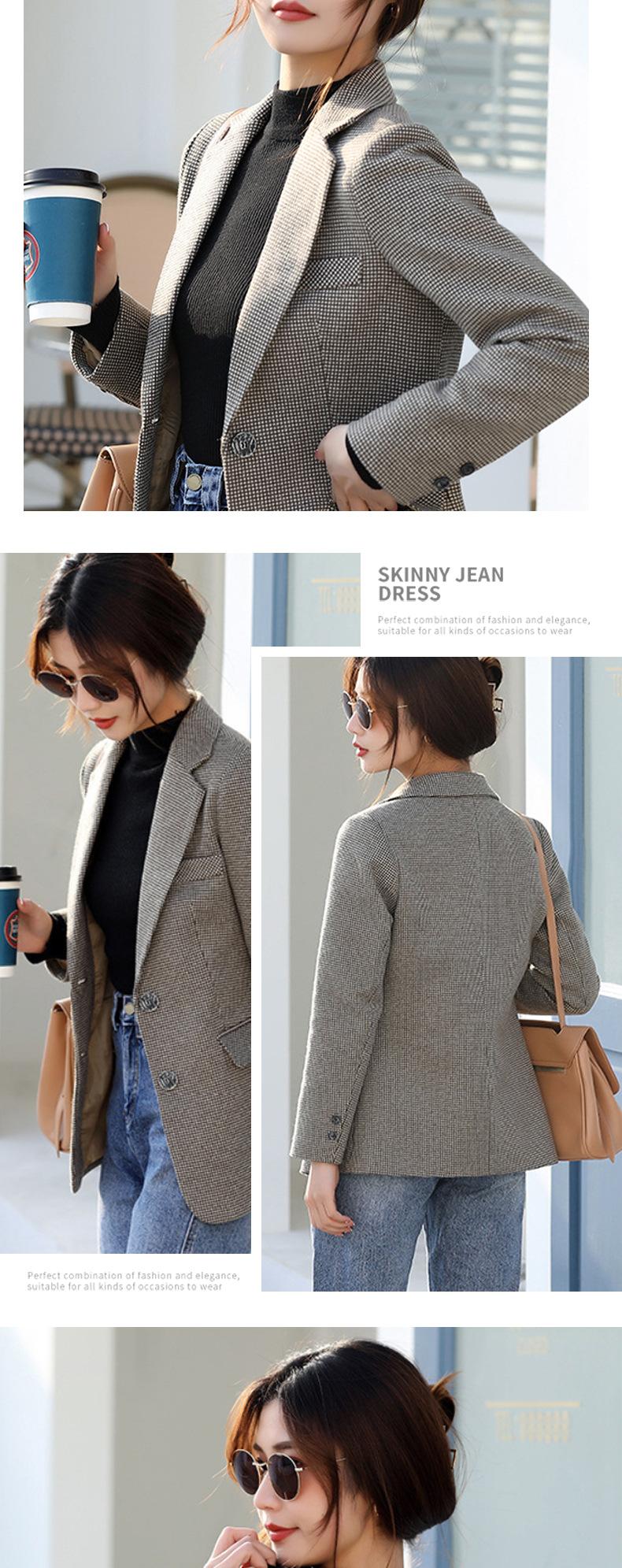 Traje Pequeño Nuevo Primavera 2024 Traje Clásico de Cuadros Traje Slim de Solapa Entallado de Un Botón Chaqueta de Mujer de Moda