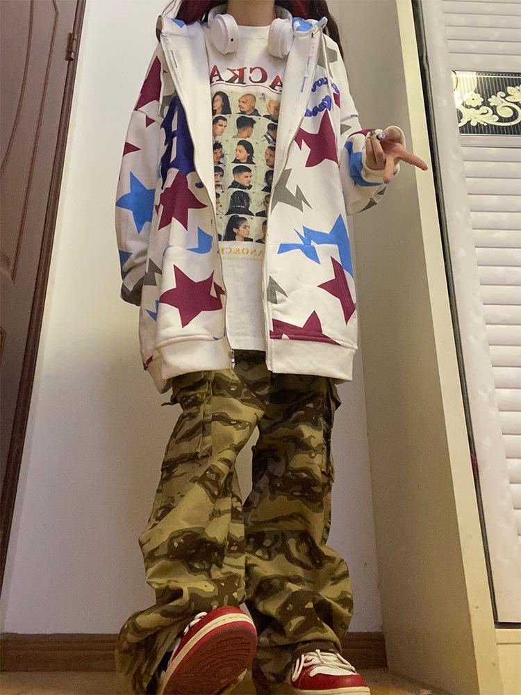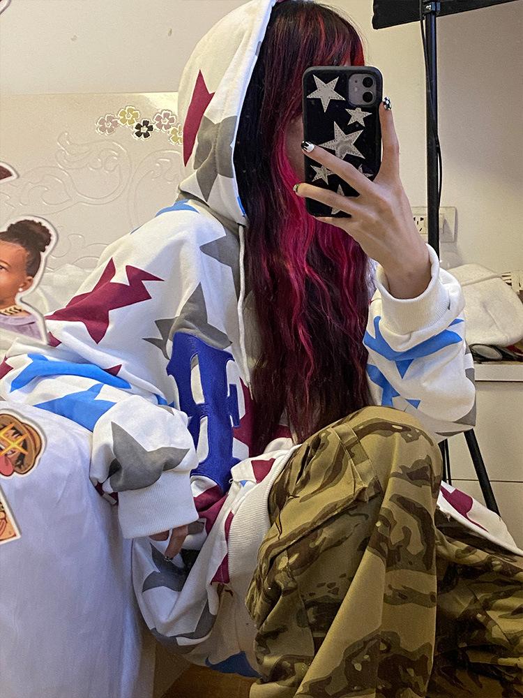 Cárdigan de estilo europeo y americano con capucha y cremallera de manga larga con diseño de calle principal para mujer