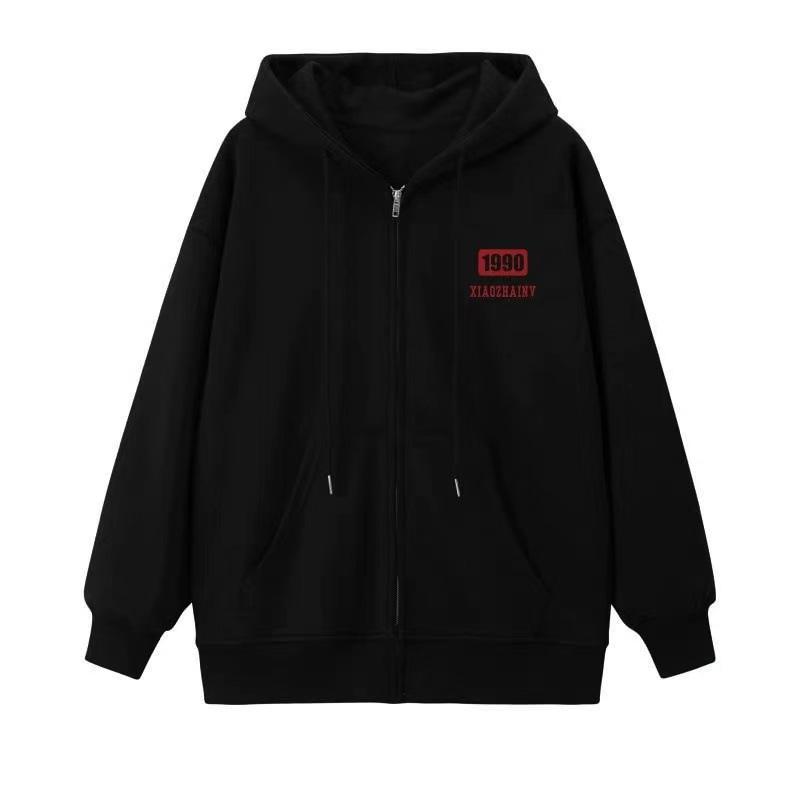 Entrega de una pieza otoño e invierno 2024 Nuevo estilo coreano cárdigan grueso con capucha forrado de polar suéter con letras para mujer is fashion