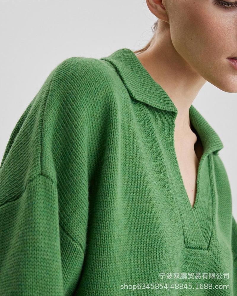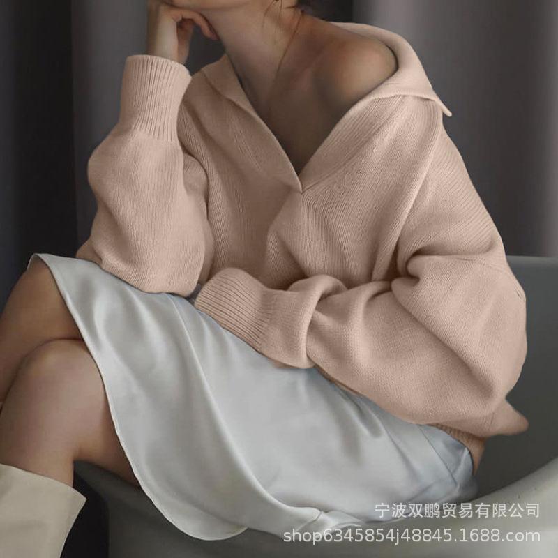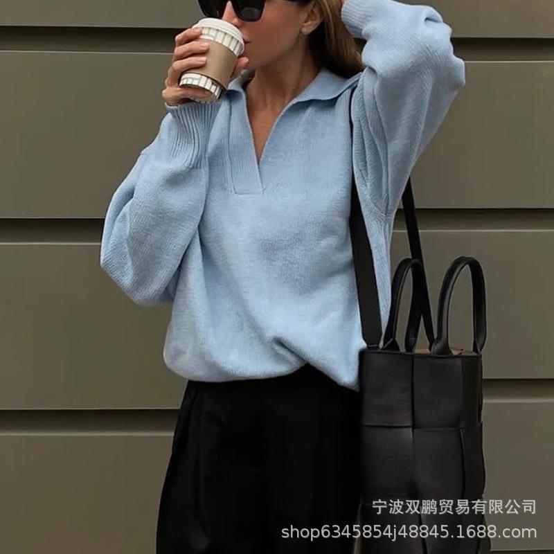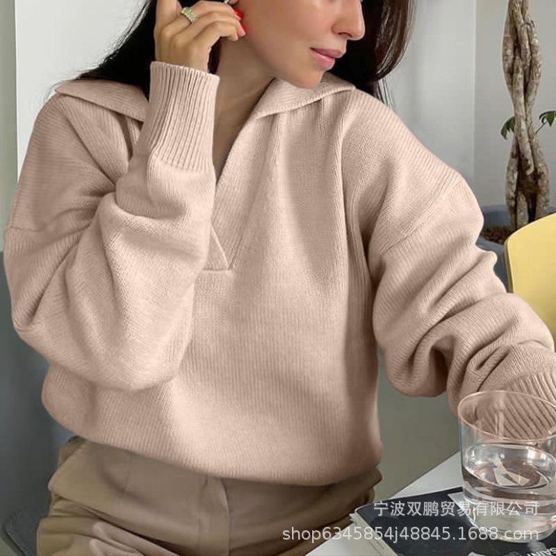 Suéter de punto con cuello polo europeo y americano para mujer, otoño e invierno, muy vendido en Amazon.