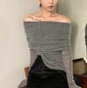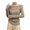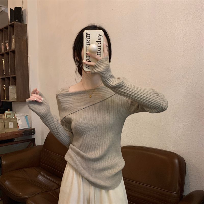 Suéter nuevo de primavera y otoño con un hombro descubierto para mujer, camisa básica con diseño de nicho de alta gama y corte ajustado.