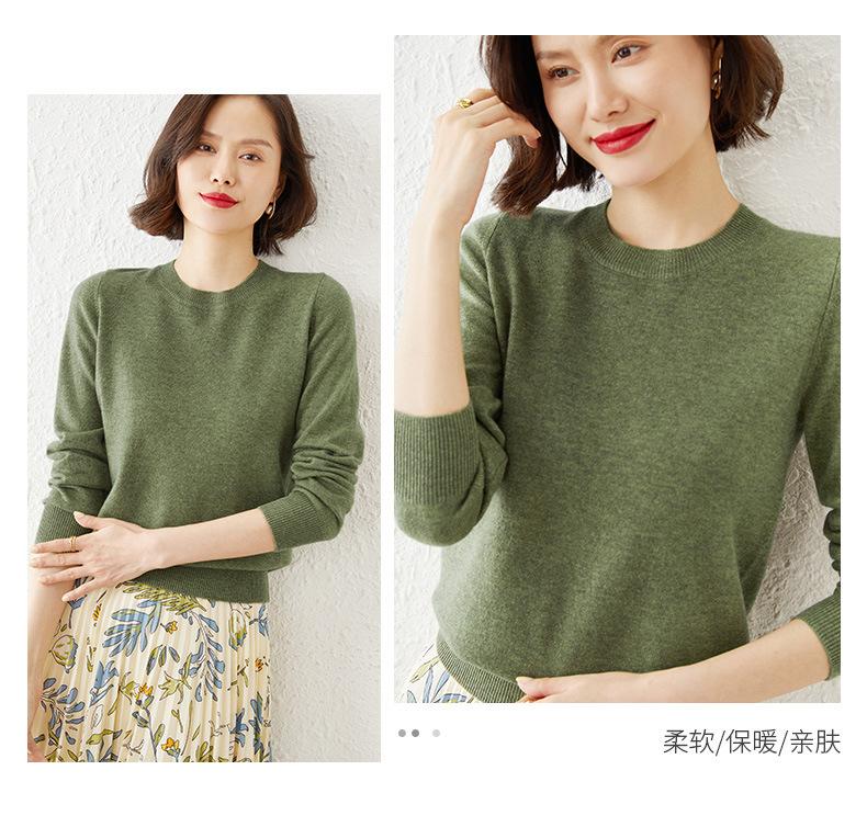 Otoño e invierno 2022 Nuevo suéter de cuello redondo para mujer, jersey de punto básico de manga larga, abrigo liso interior al por mayor
