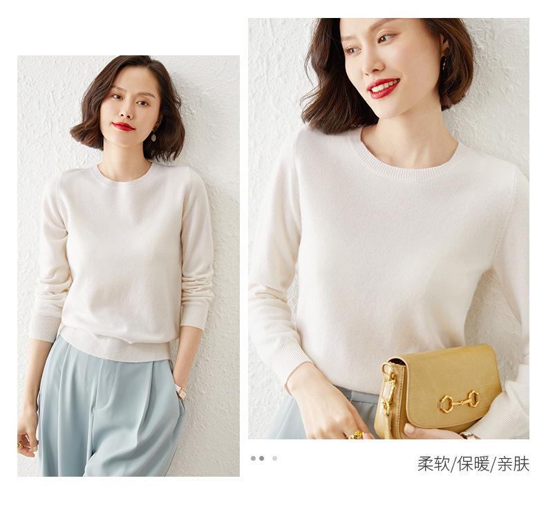 Suéter de lana para mujer, 100% lana pura, suéter de cuello redondo, invierno, nuevo, blanco, versátil, suelto, de punto, suéter cálido Suéter de lana 100% pura sin costuras para mujer, jersey de cuello redondo, camisa de punto hueco en la parte inferior, suéter perezoso fufu de leche súper hermoso Suéter de punto básico de lana 100% pura sin costuras, suéter de todo fósforo, suéter de cuello alto de media manga larga para mujer Suéter de lana 100% pura sin costuras de alta calidad para mujer, suéter de cuello redondo, parte inferior suelta, adelgazante, suéter de punto con hombros rectos