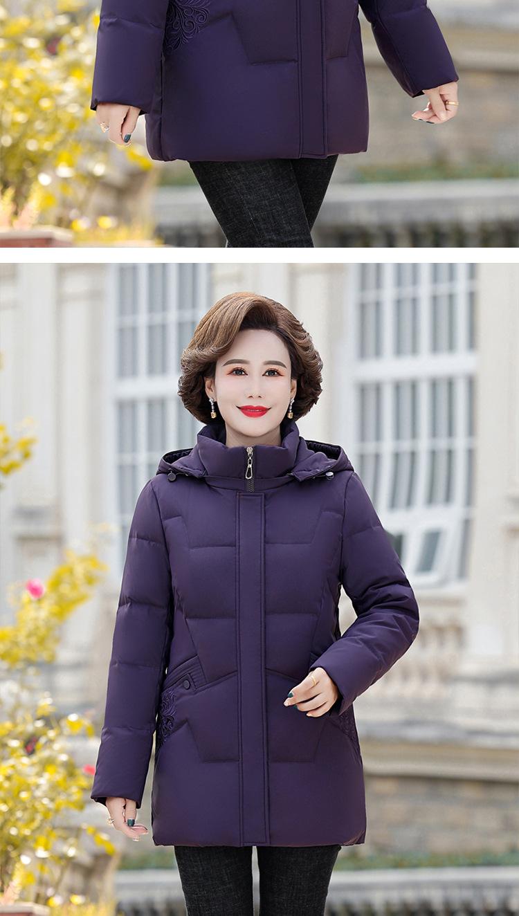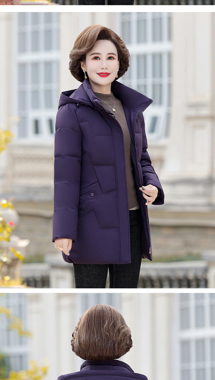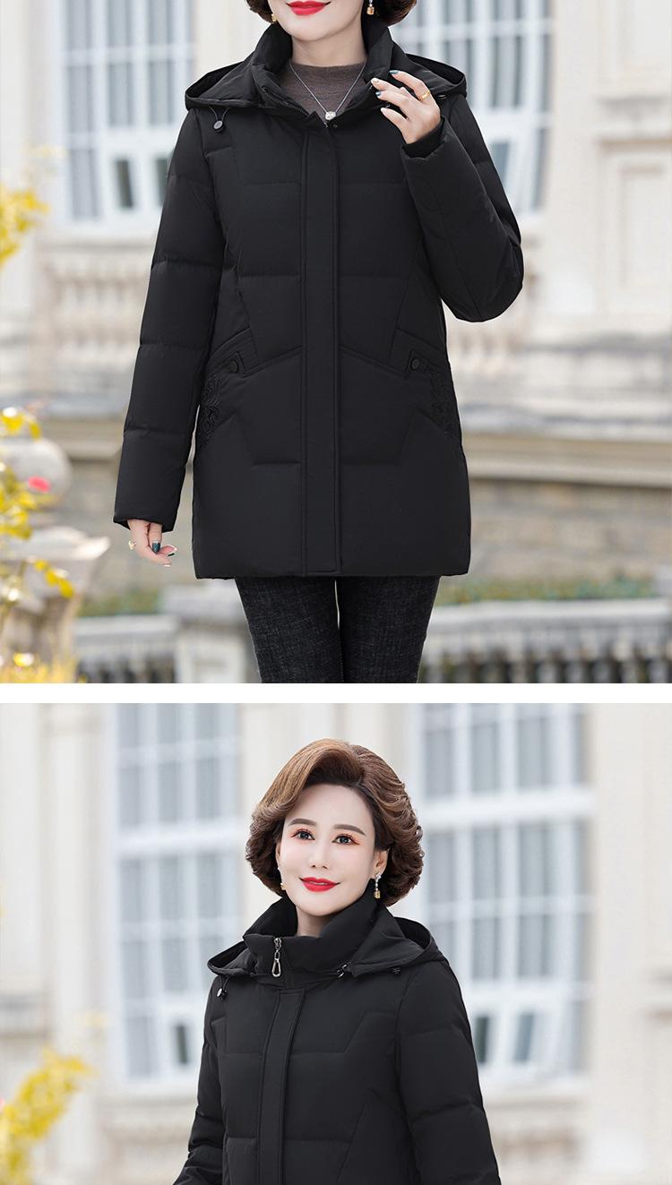Chaqueta de plumas 2024 de fábrica con descuento de marca, nueva chaqueta gruesa de longitud media para mujer, abrigo de talla grande para mamá de mediana edad