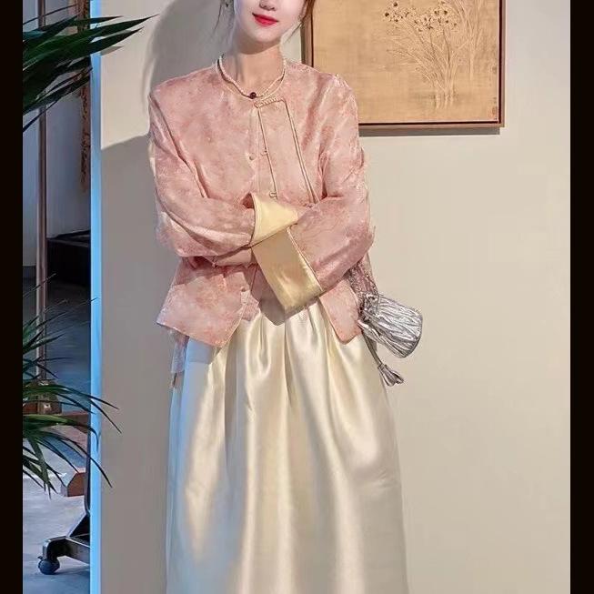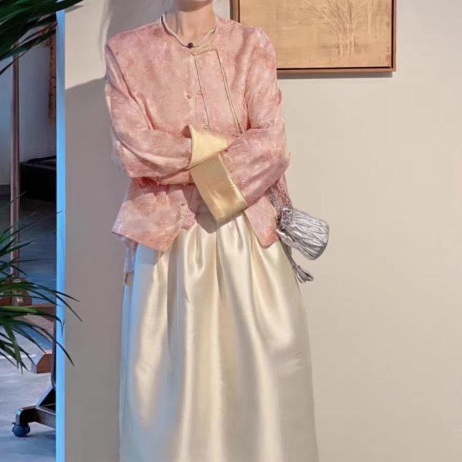 Nuevo traje de estilo nacional de estilo chino nuevo de primavera exquisito hebilla de sensación fría top A1227 falda de dos piezas A1228