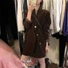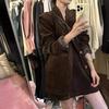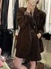 Traje Marrón Traje Ropa de Otoño para Mujer 2024 Nuevo Estilo Capaz Elegante Chaqueta de Terciopelo para Mujer Falda Media Conjunto de Dos Piezas