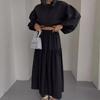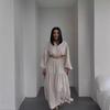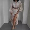 2023 Europeo y Americano Transfronterizo Amazon Nuevo Top de Encaje con Cordones de Manga Larga Set de Falda Larga Plisada con Abertura