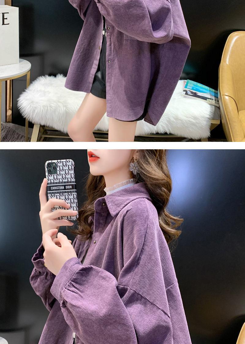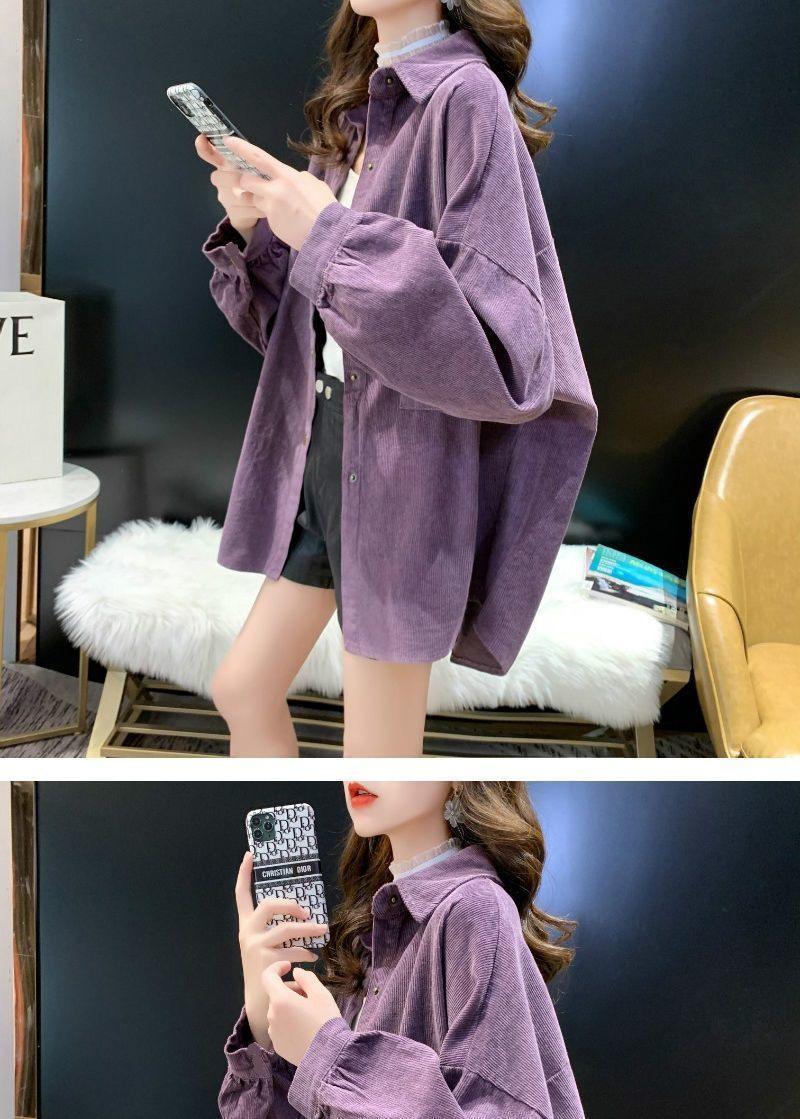 Camisa de pana de manga larga para mujer Otoño e Invierno 2025 Manga Larga Holgada Estilo Perezoso Talla Grande Top Chaqueta Cárdigan Mayoreo