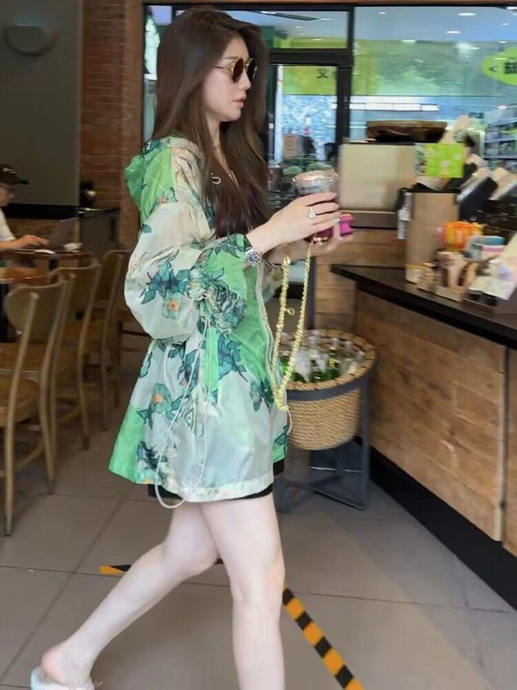 Abrigo de verano para mujer, nuevo estilo coreano, holgado, de largo medio, a la moda, estampado, ligero, transpirable, con cintura protectora del sol