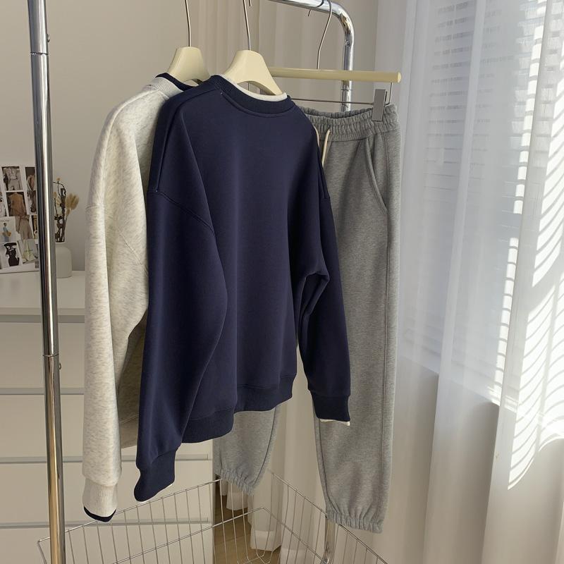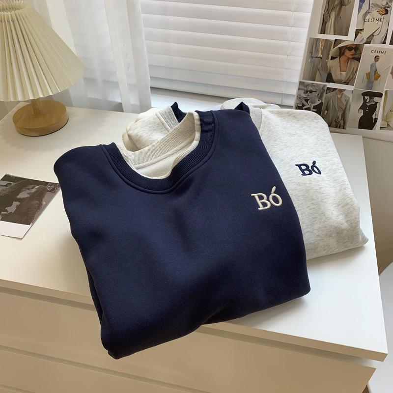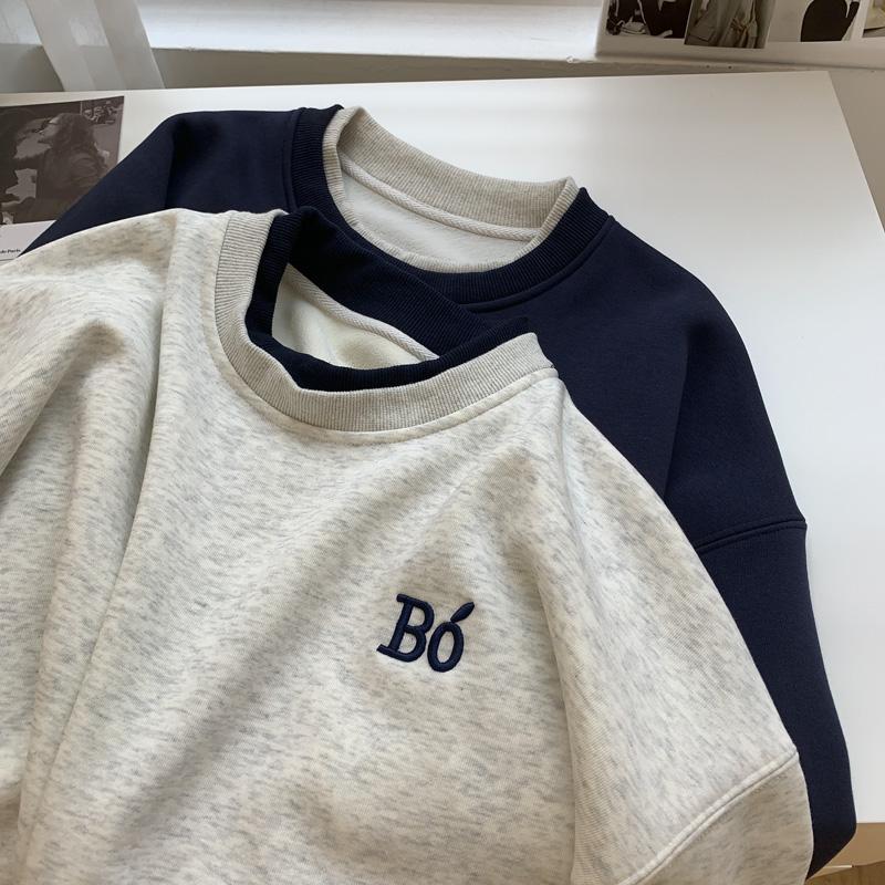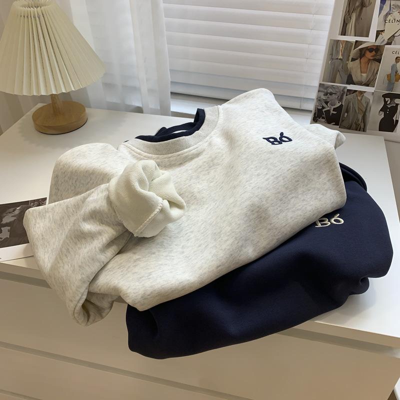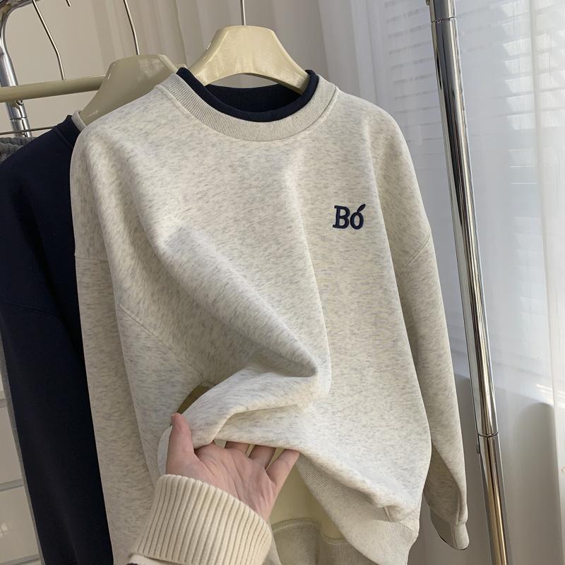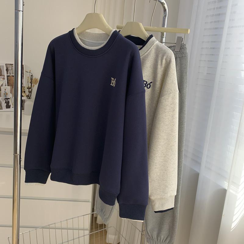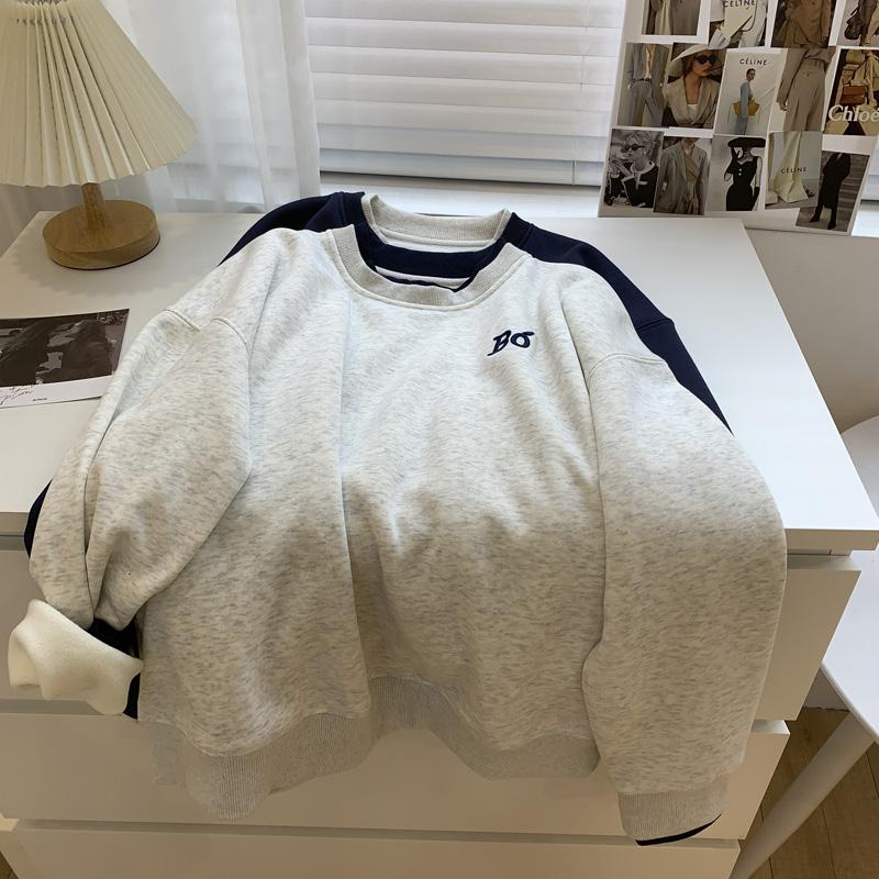 BF Estilo Harajuku Color Contraste Cuello Redondo Falso Dos Piezas Suéteres con Forro Polar para Mujer Invierno 2024 Holgado Coreano Casual Grueso Top