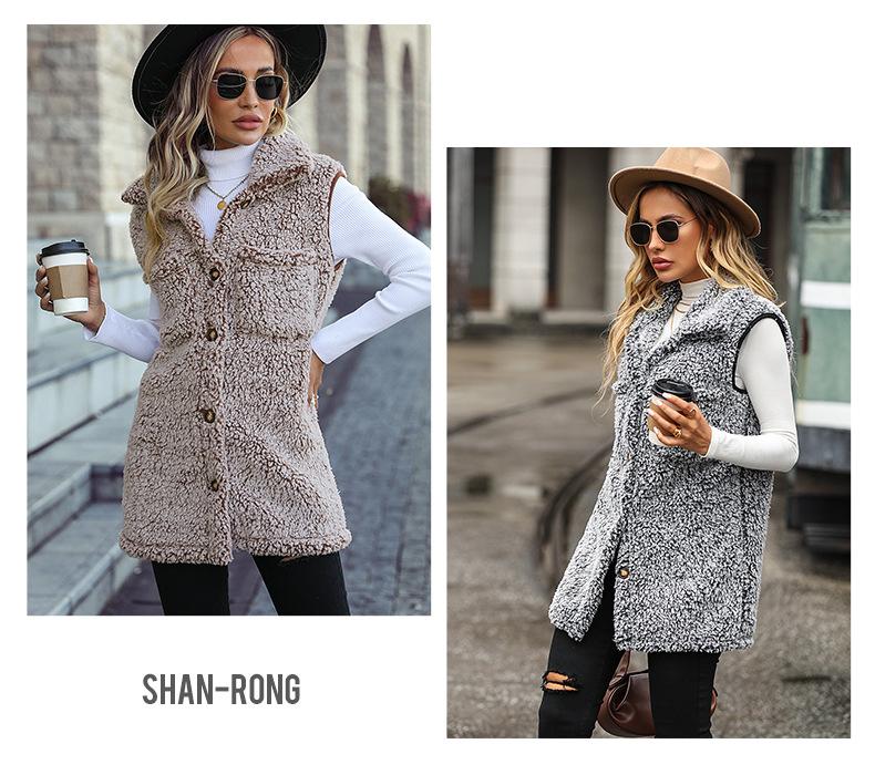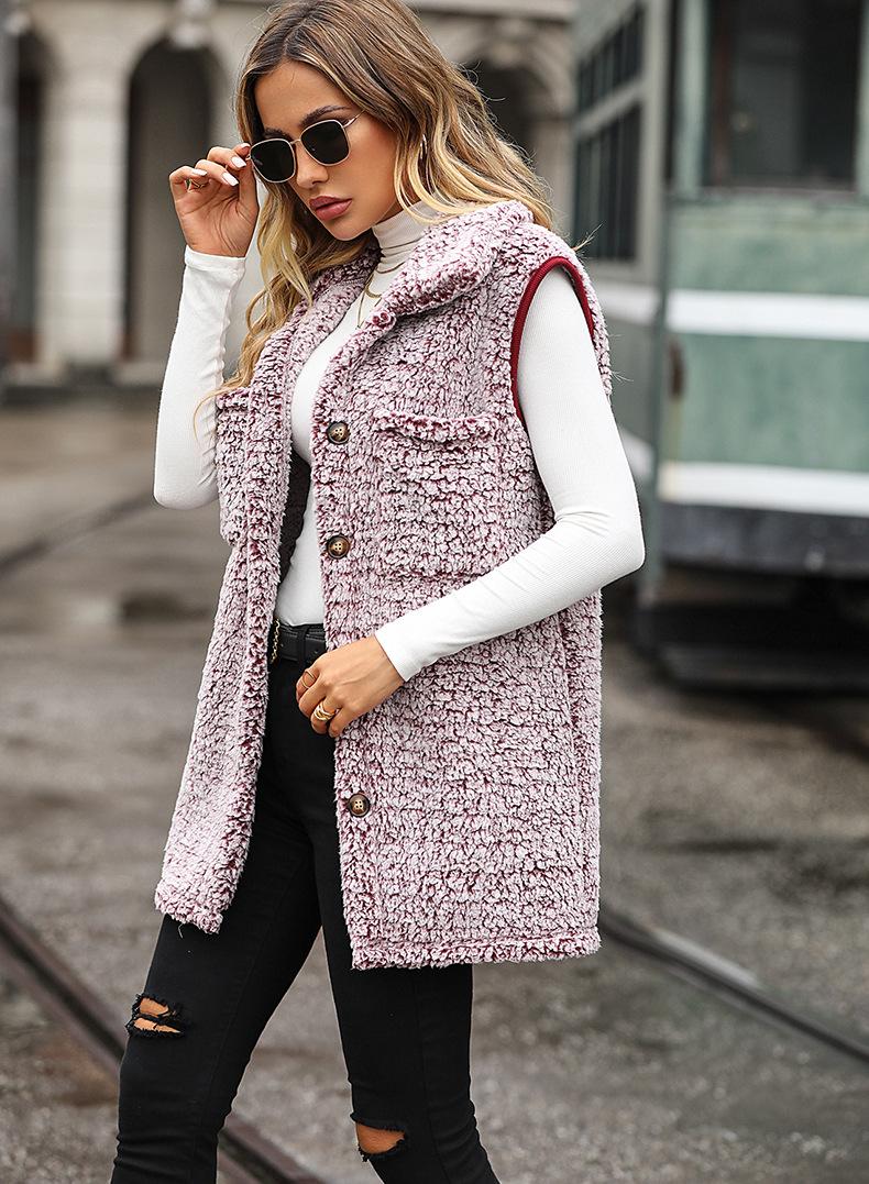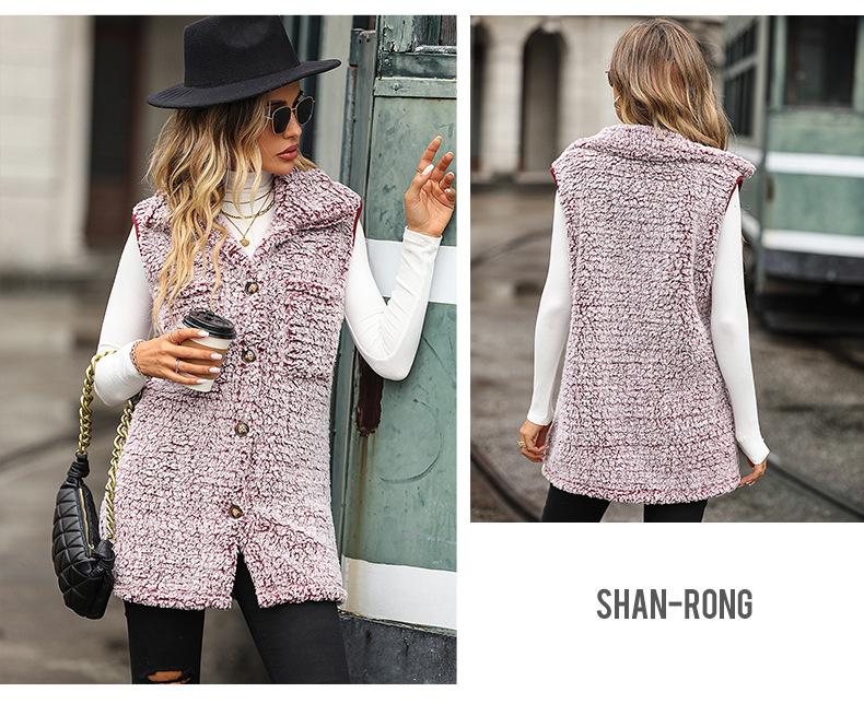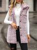 Chaleco tipo cárdigan de terciopelo con burbujas descoloridas, largo, holgado, informal, con solapa, sin mangas, para otoño e invierno, para mujer europea y americana transfronteriza