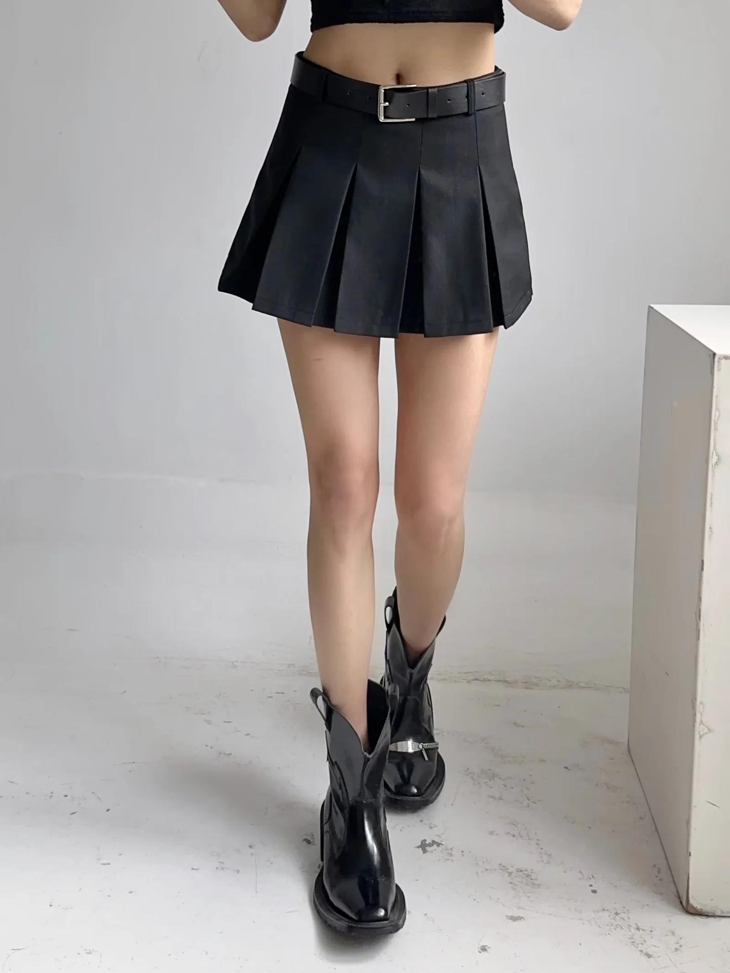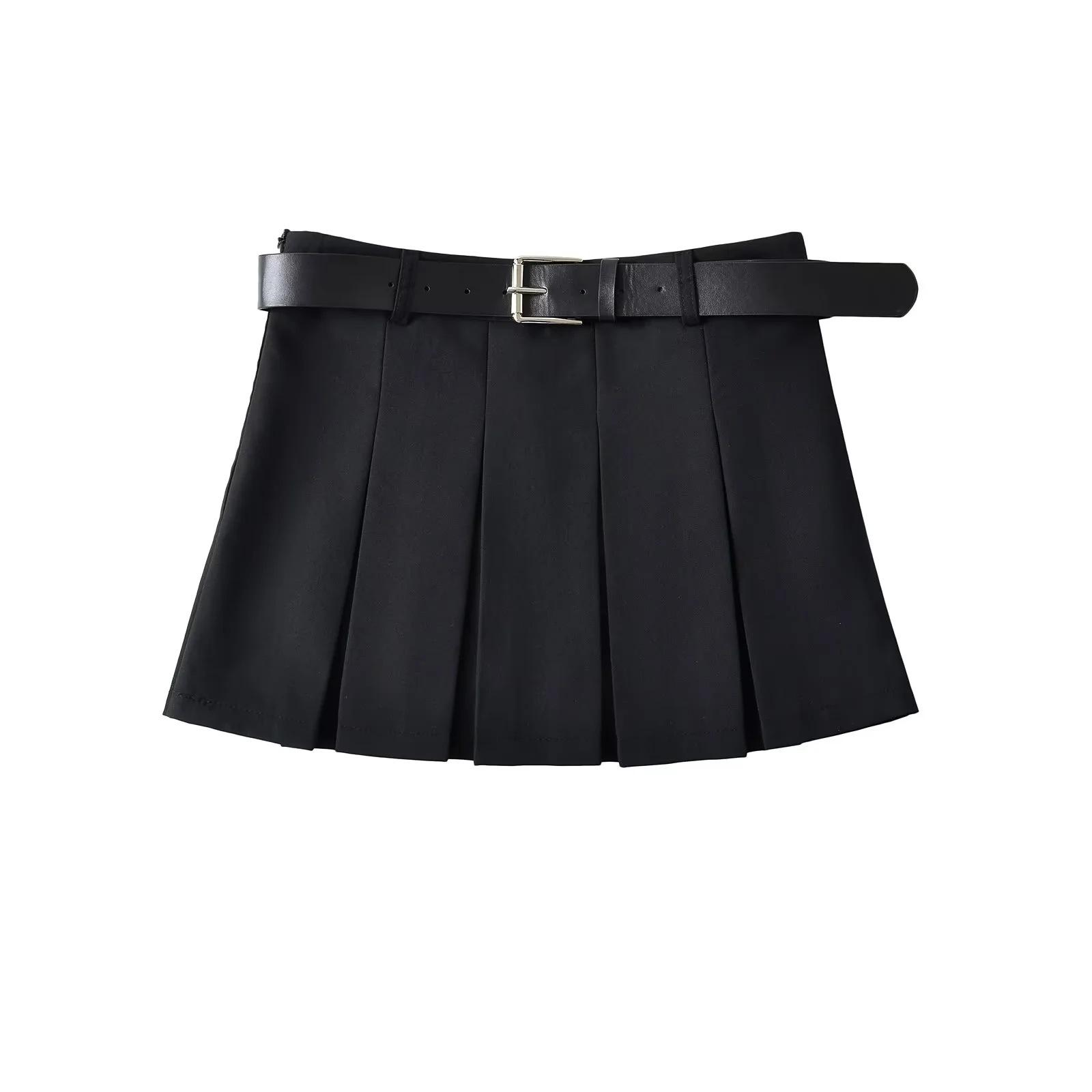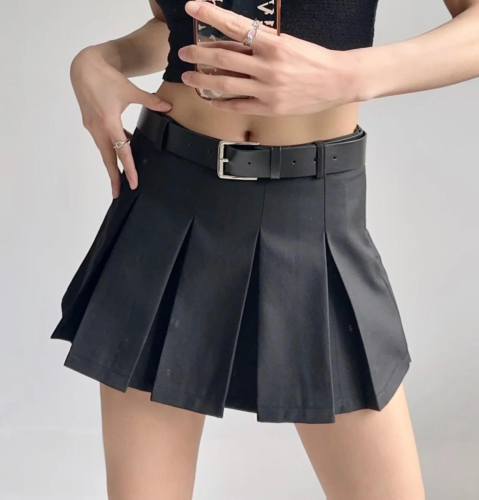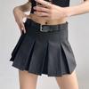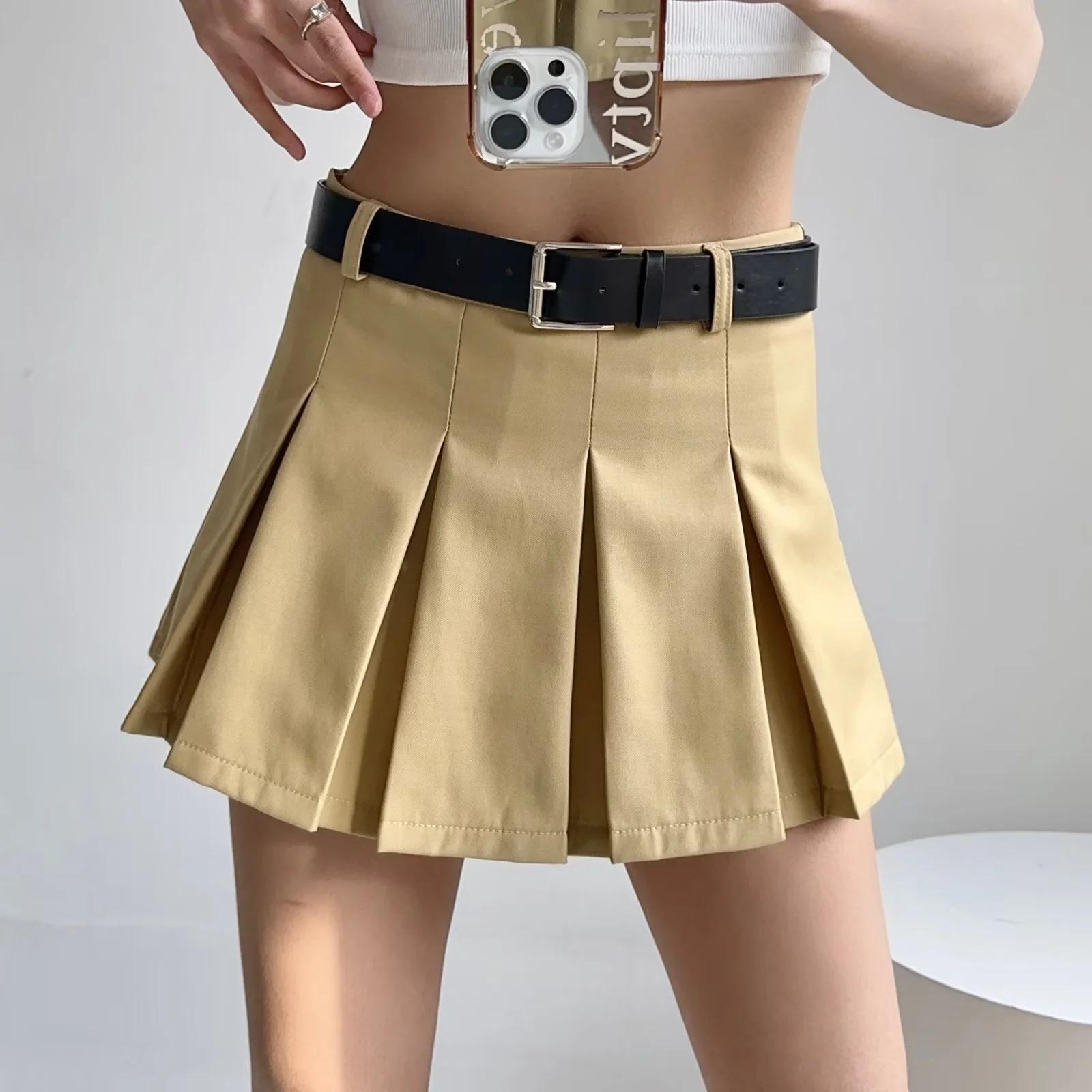 Falda plisada estilo preppy americano para mujer, verano 2024, nueva falda antiexposición de cintura alta, falda de corte A con cinturón