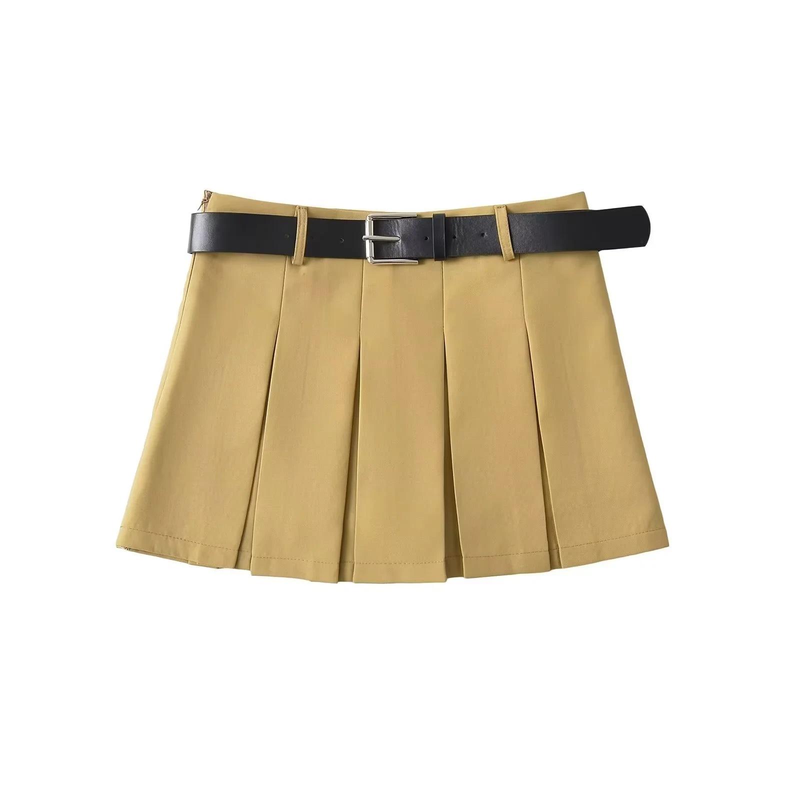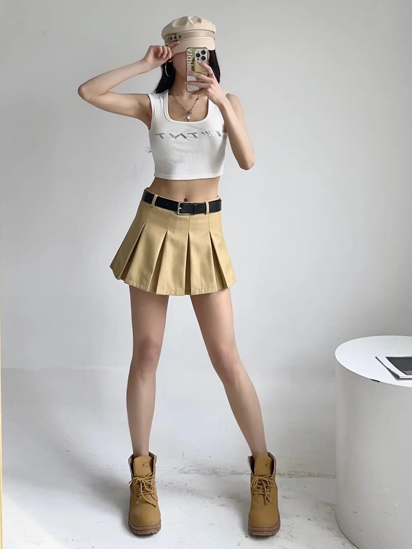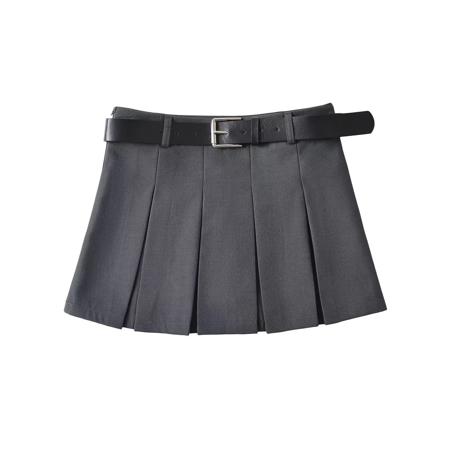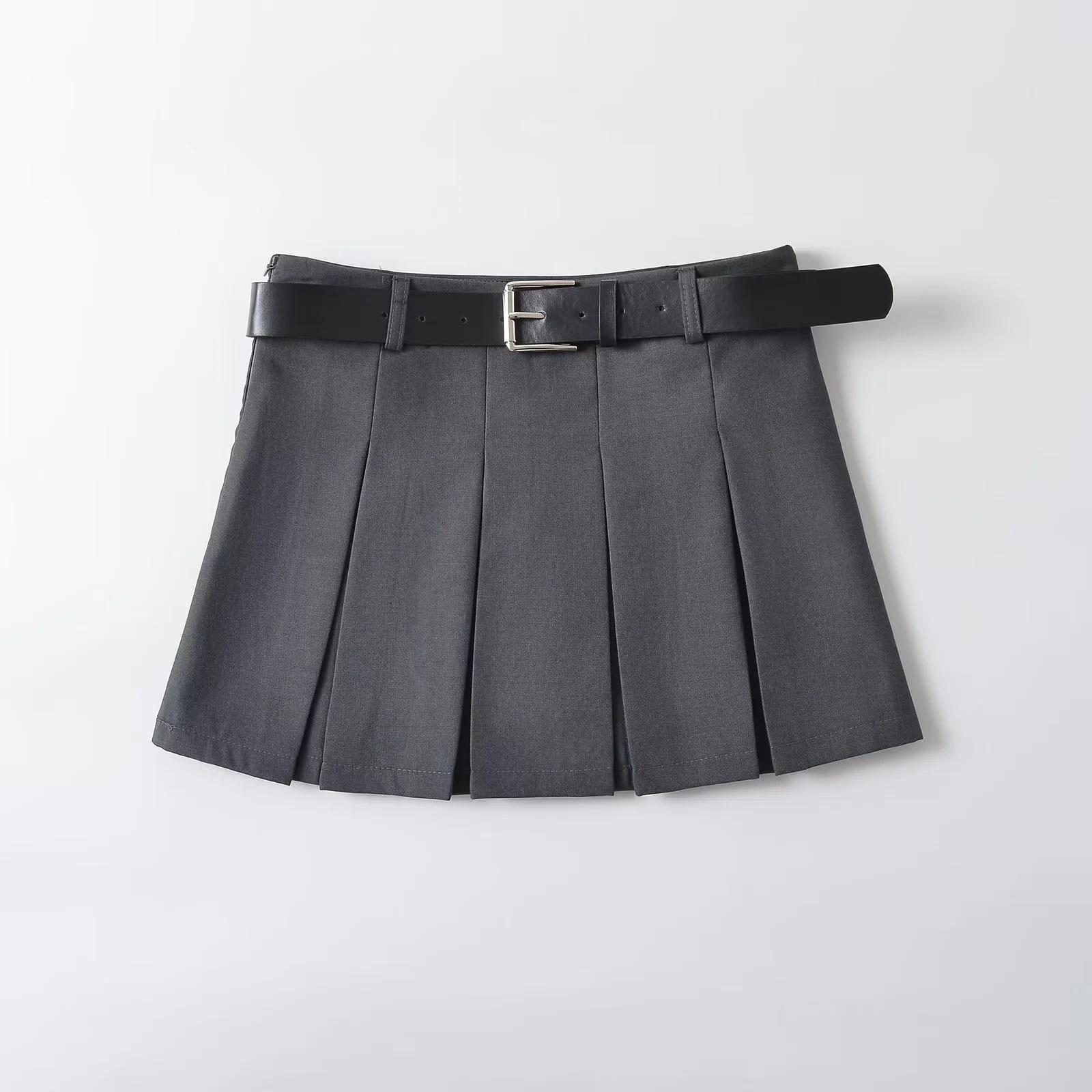 Falda plisada estilo preppy americano para mujer, verano 2024, nueva falda antiexposición de cintura alta, falda de corte A con cinturón
