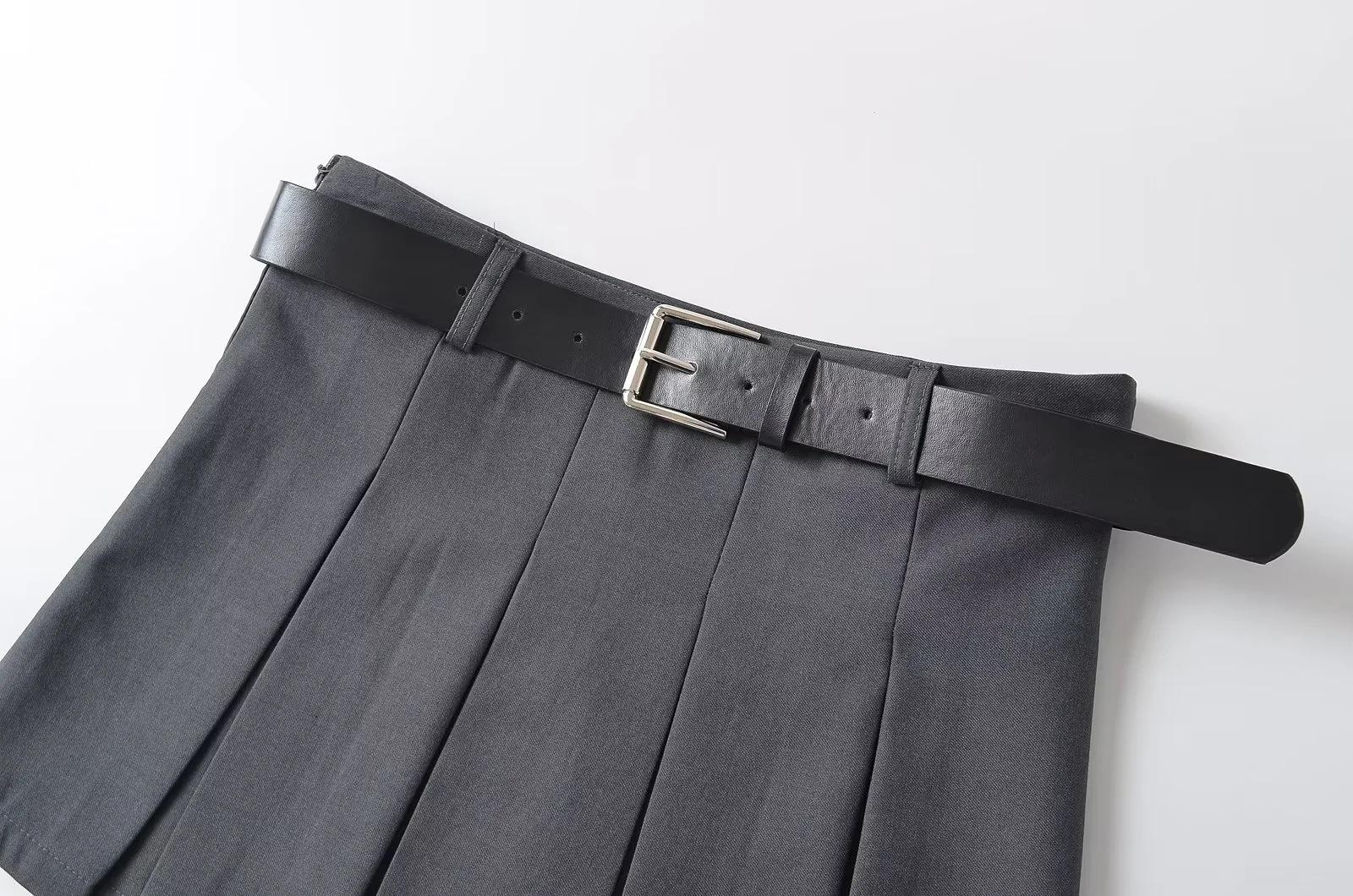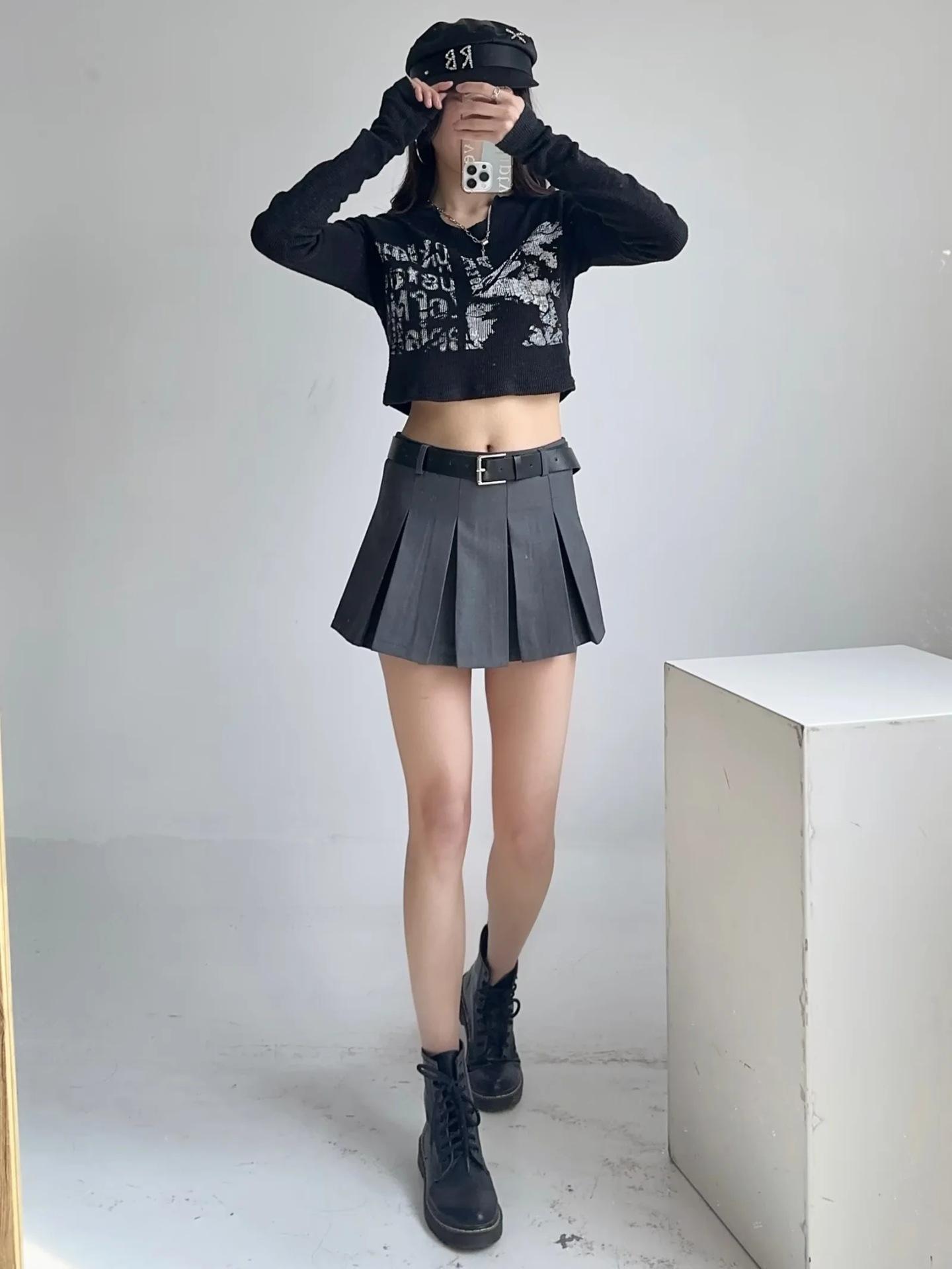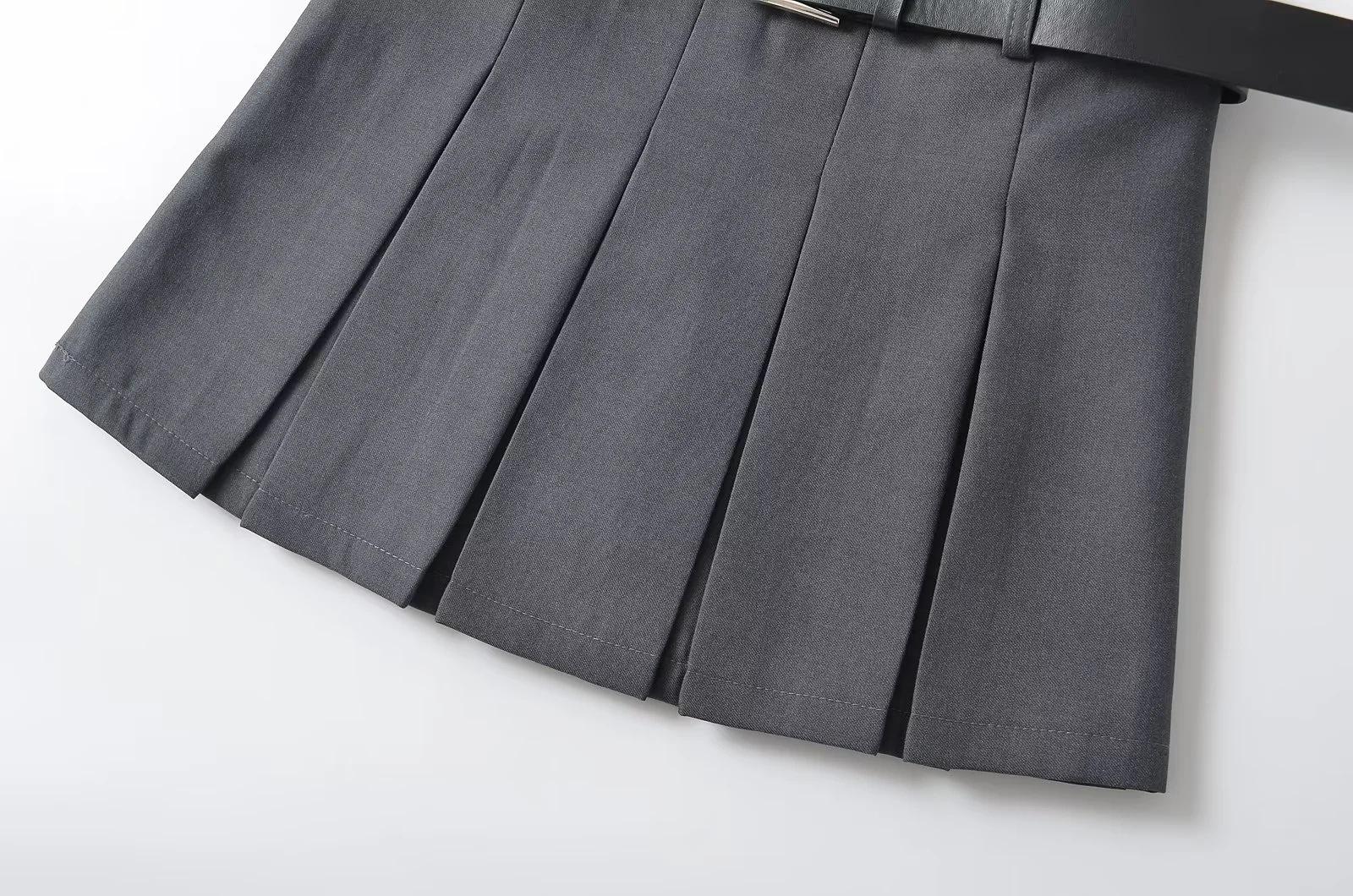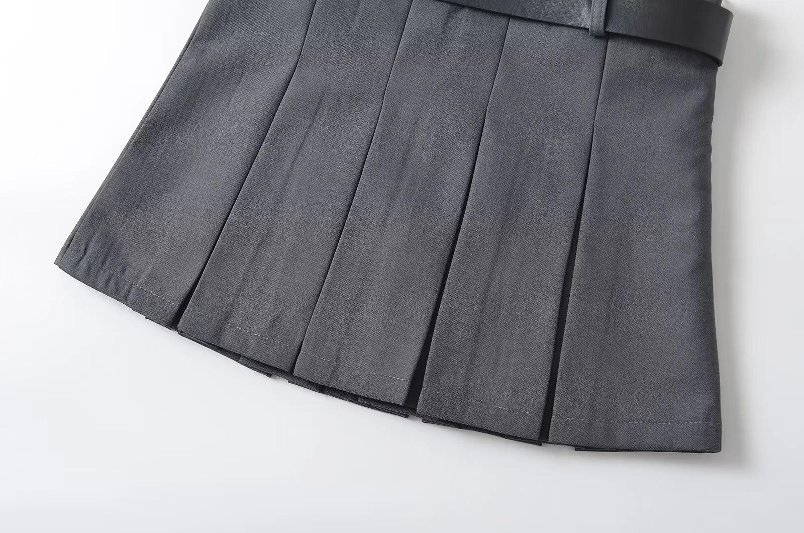 Falda plisada estilo preppy americano para mujer, verano 2024, nueva falda antiexposición de cintura alta, falda de corte A con cinturón