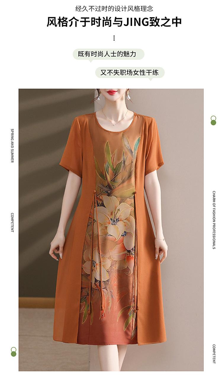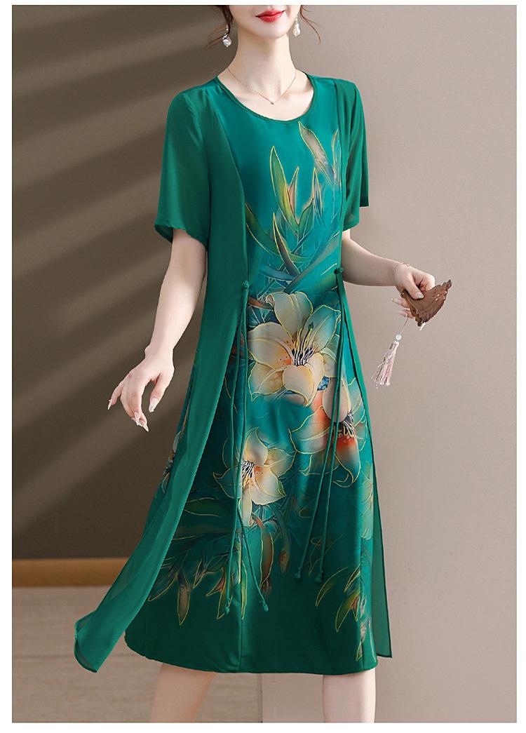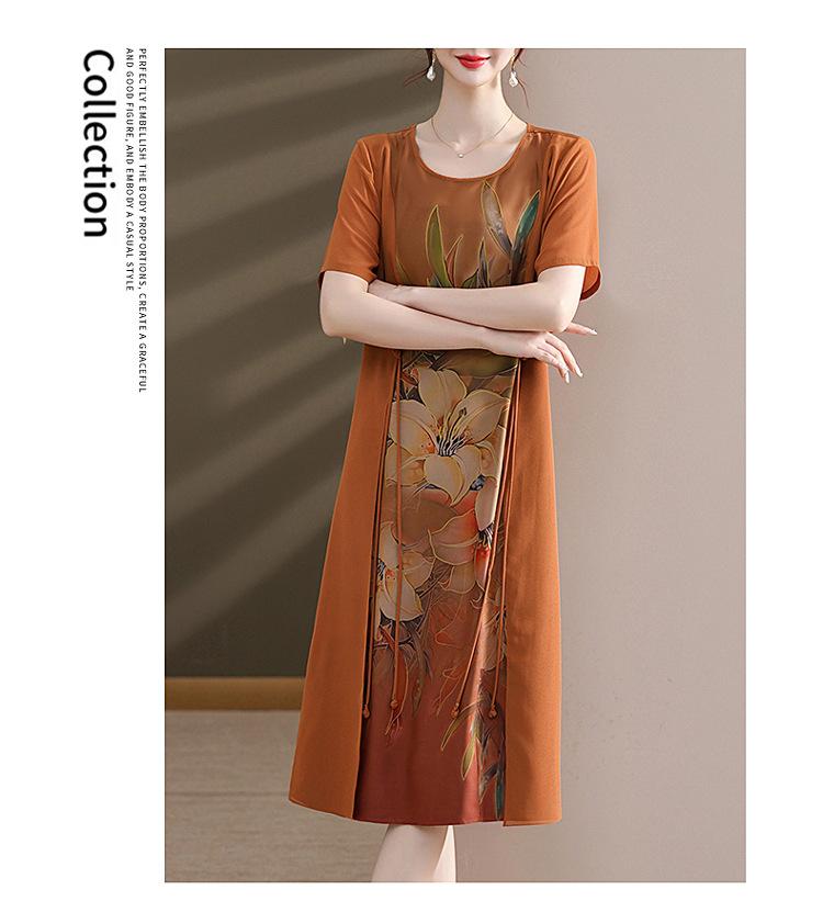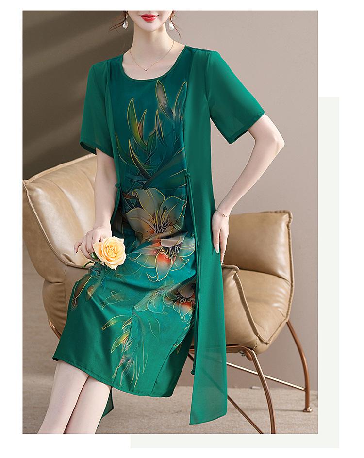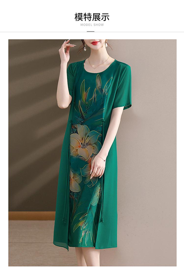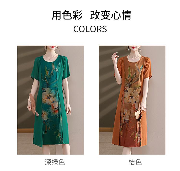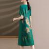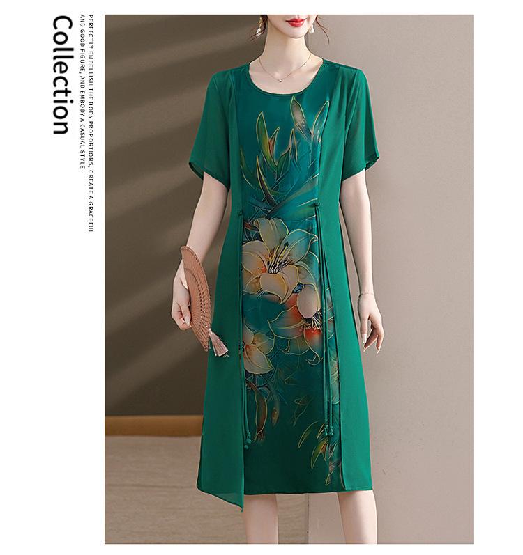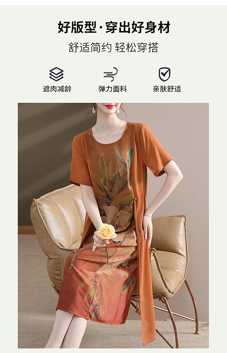 Vestido cheongsam de verano para madre, falda estampada informal de estilo occidental para mujer, falda larga adelgazante para mediana edad y mayores, 2024