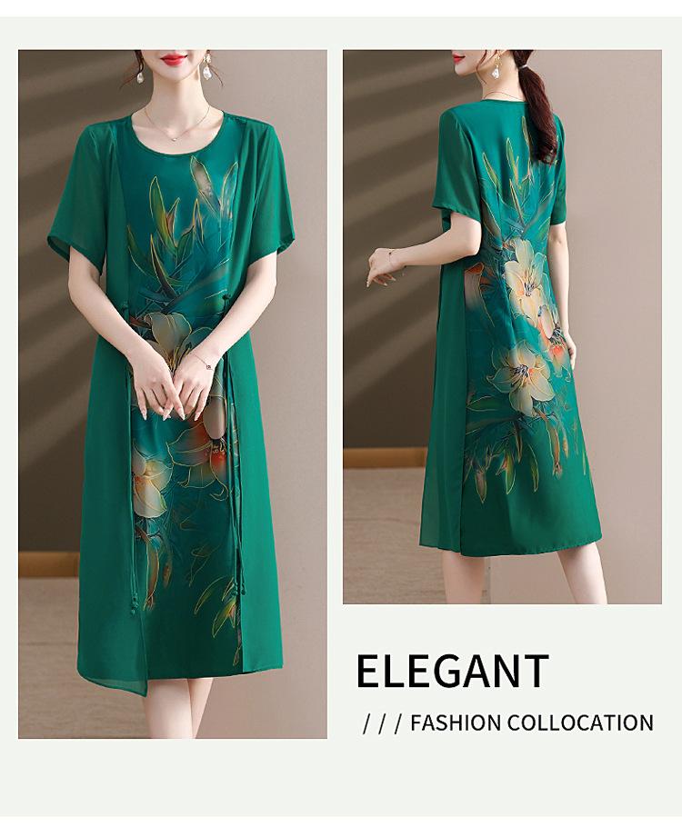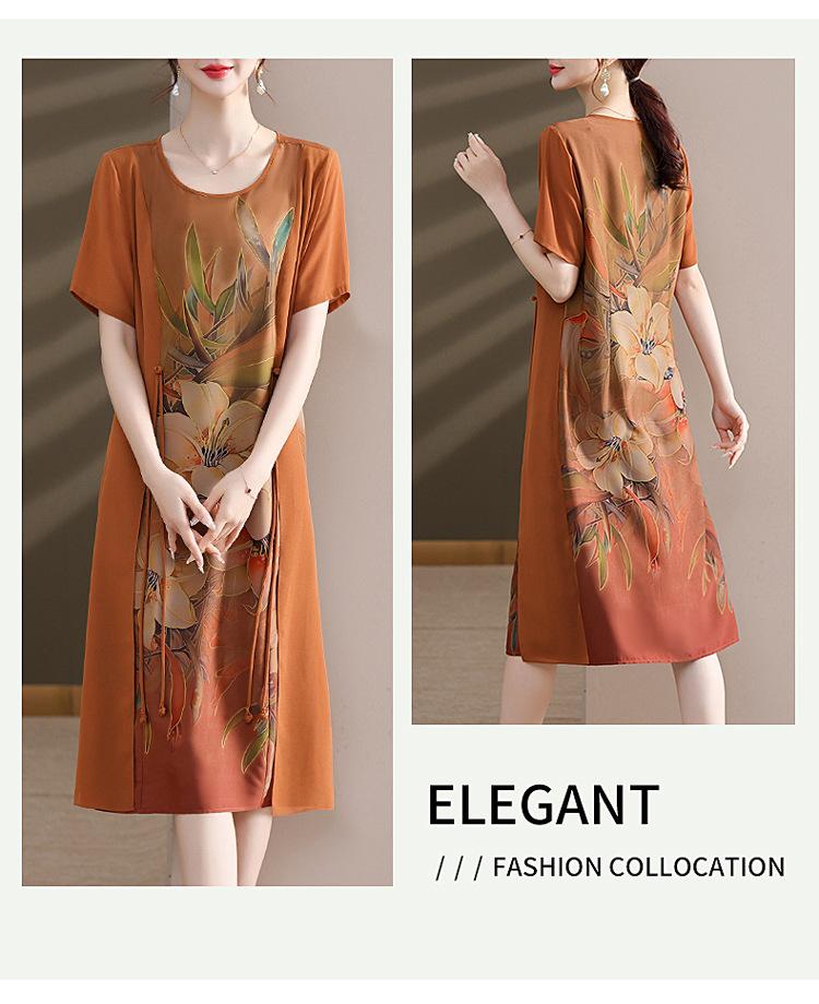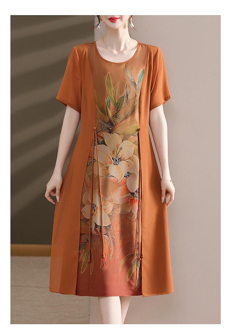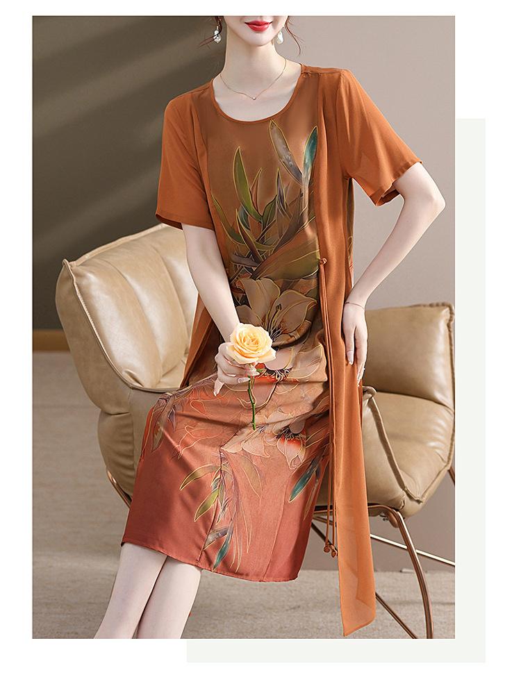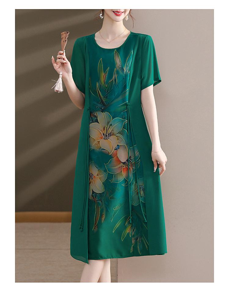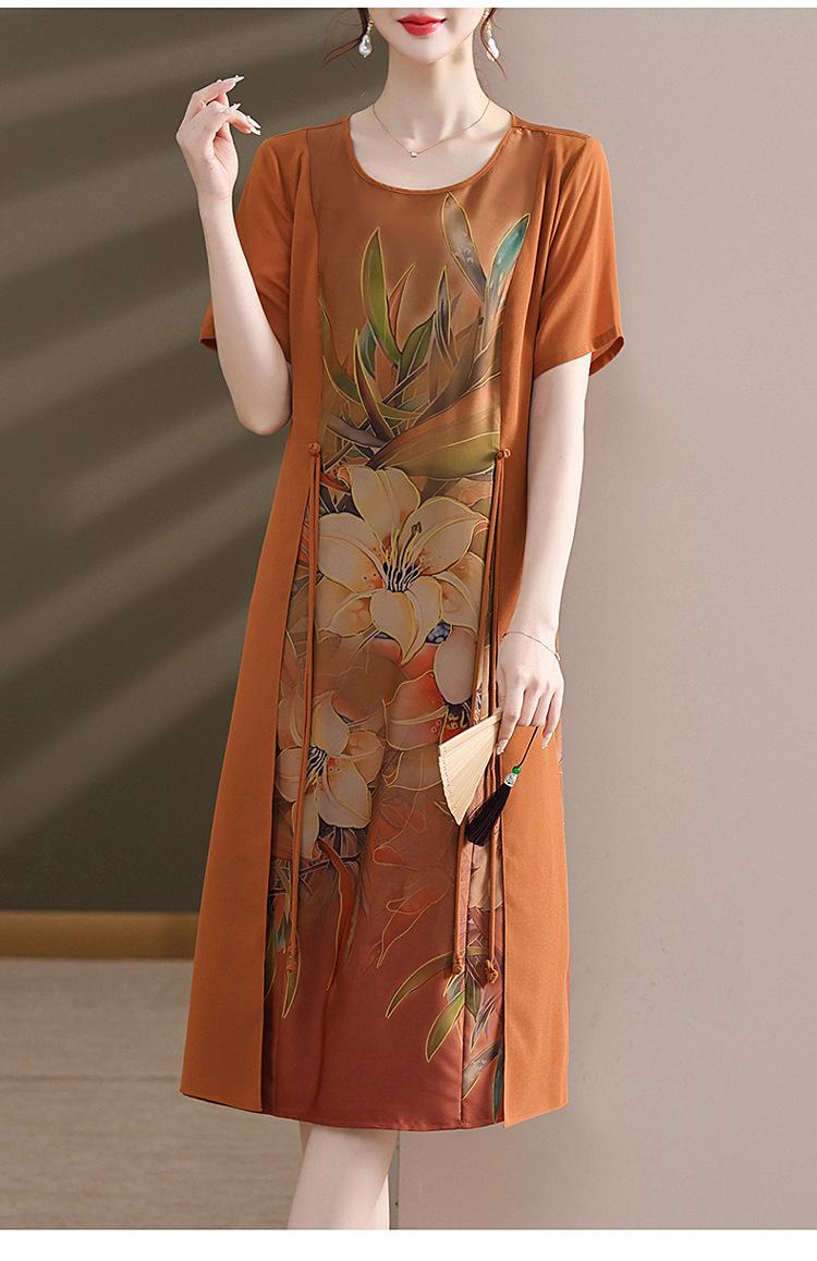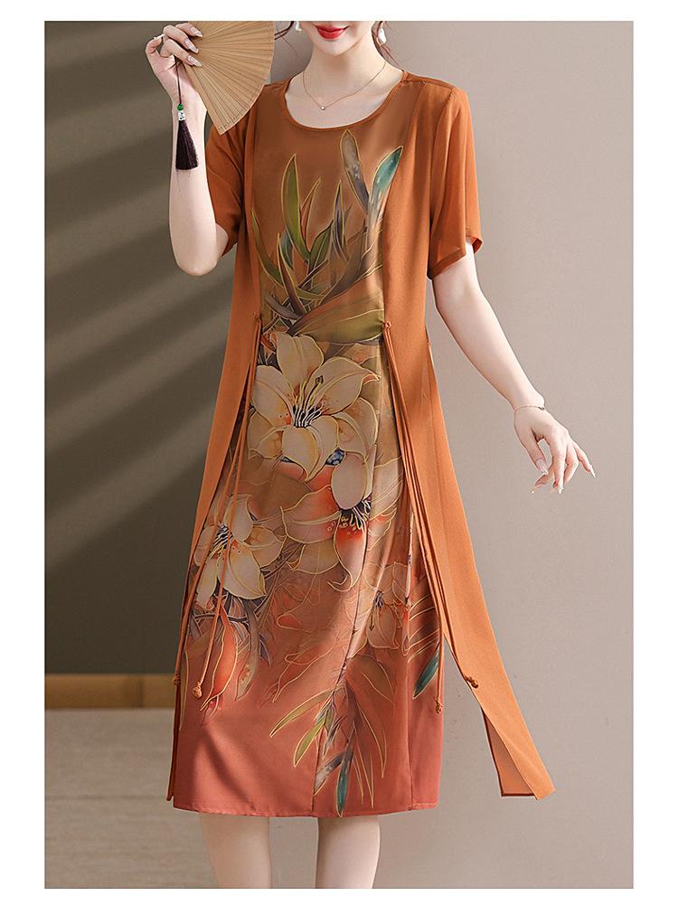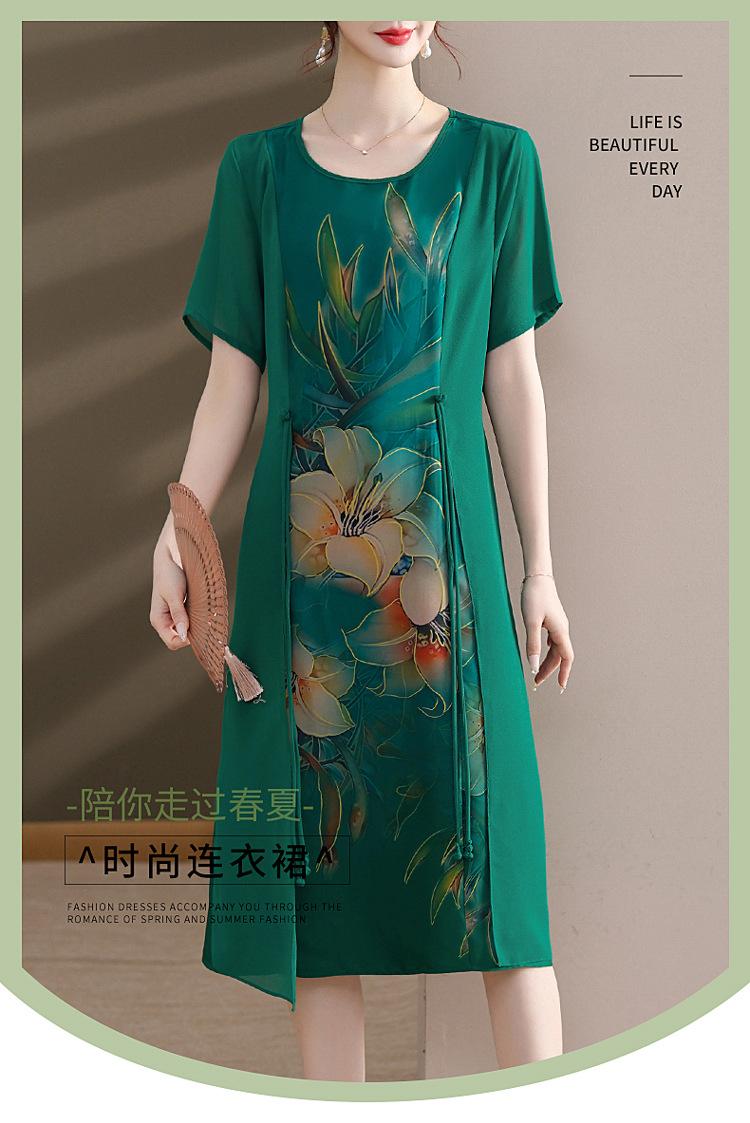 Vestido cheongsam de verano para madre, falda estampada informal de estilo occidental para mujer, falda larga adelgazante para mediana edad y mayores, 2024