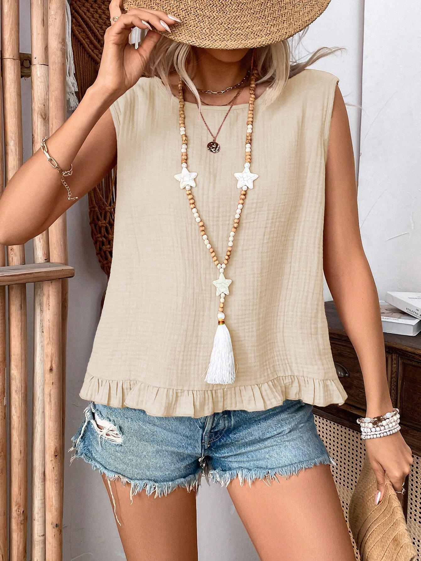 Camisola de orejas de madera estilo pastoral transfronterizo europeo y americano, nuevo diseño de verano 2024, top sin mangas pequeño Sense