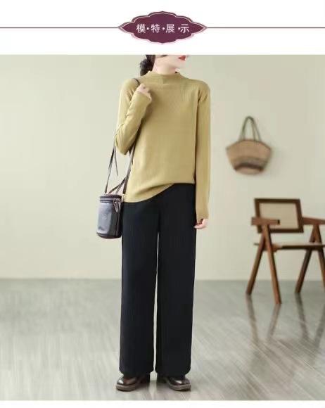 Pantalones casuales de cintura alta con drapeado recto de otoño e invierno de 2023