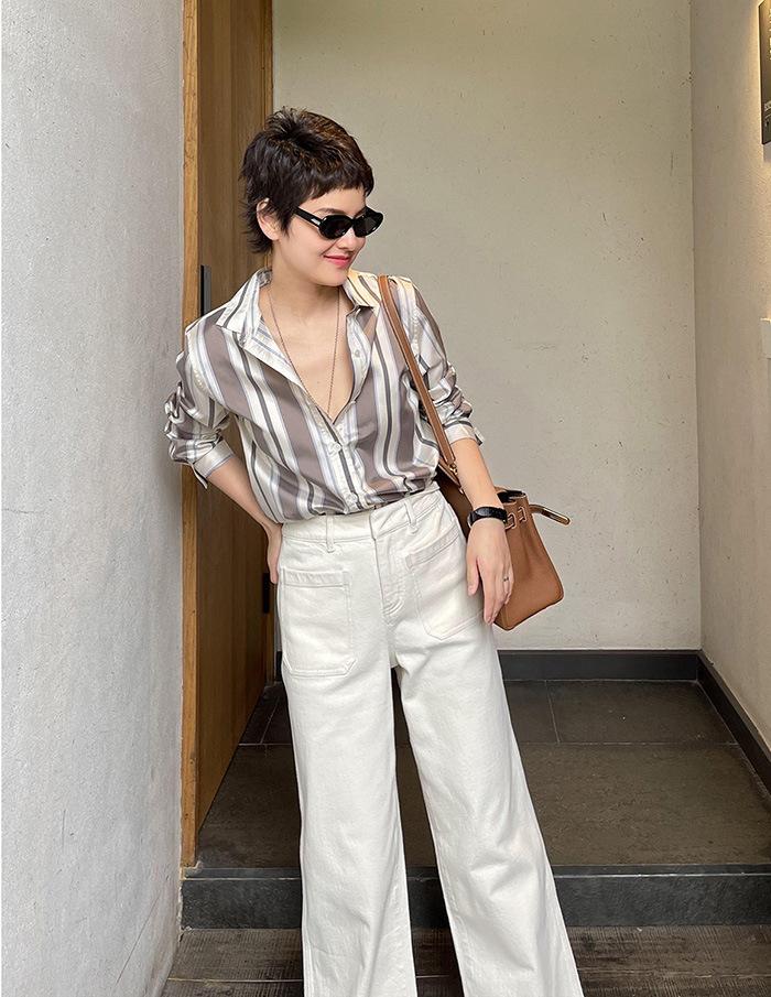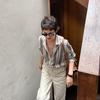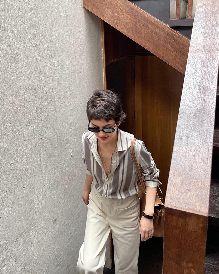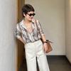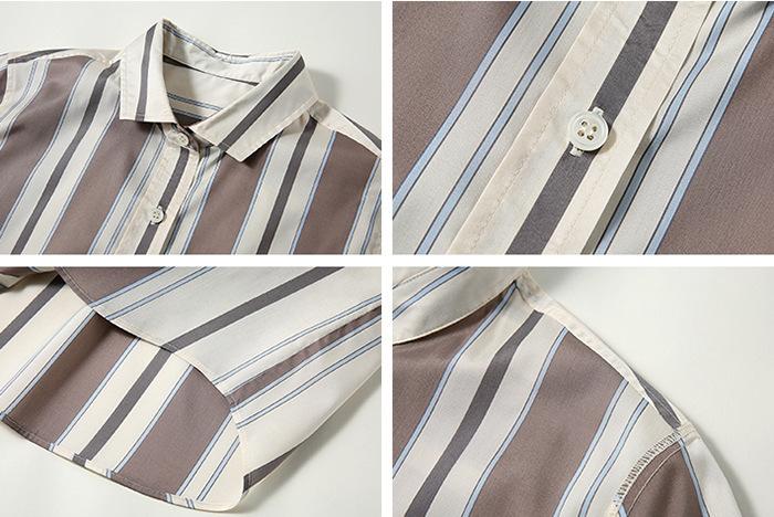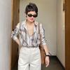 Camisa 100% Seda para Mujer 2025 Primavera y Verano Nueva Manga Larga Sarga Estampada Digital Rayas Manga Larga Lista para Usar