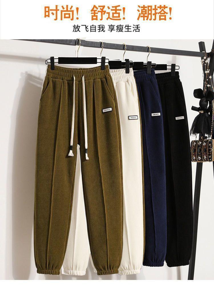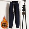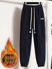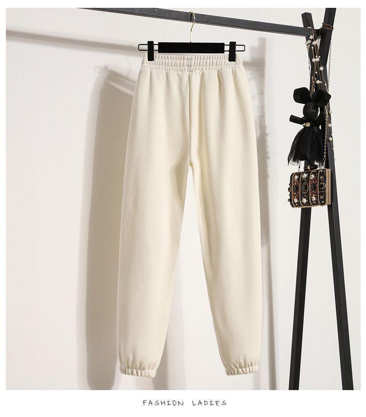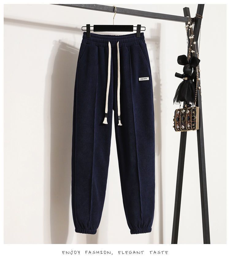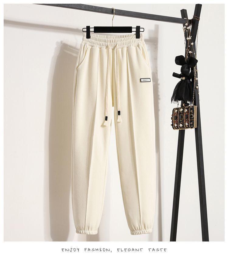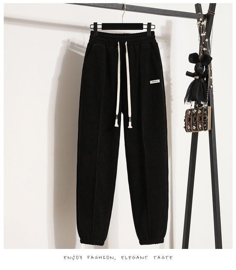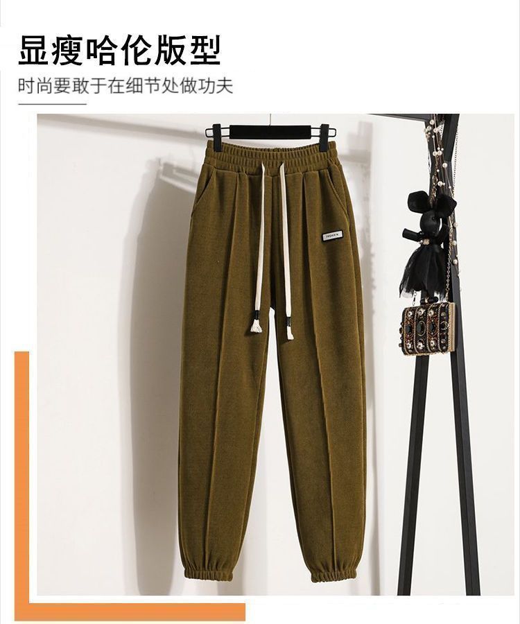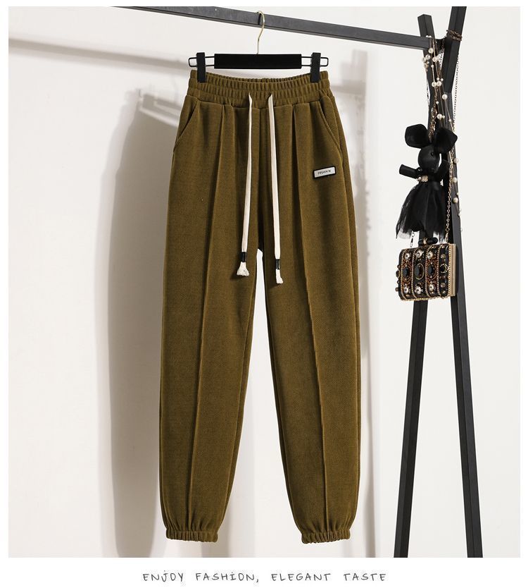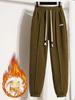 Pantalones gruesos con forro polar para mujer, otoño e invierno 2023, nuevos pantalones harén de cintura alta con cordones en los tobillos, pantalones casuales holgados de moda para todo tipo de combinaciones para mujer