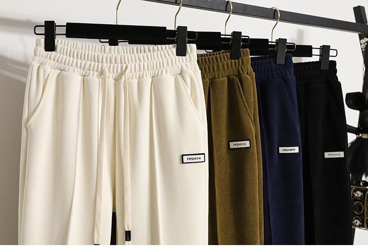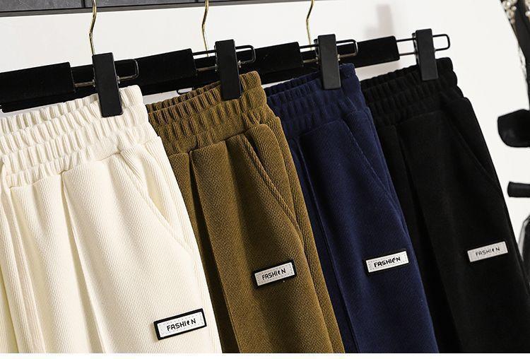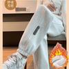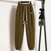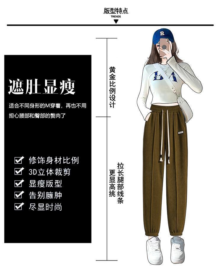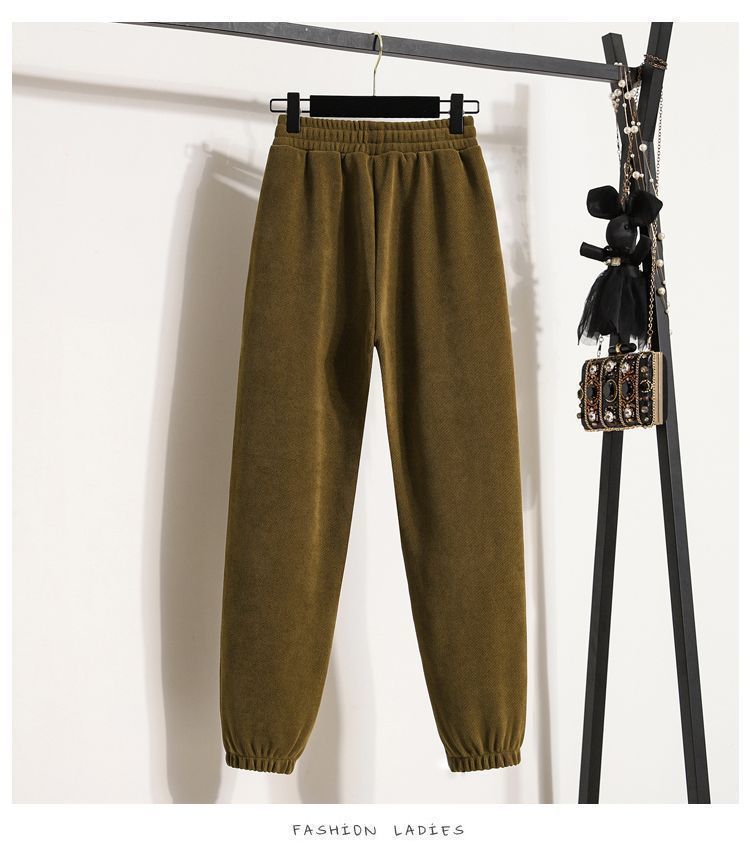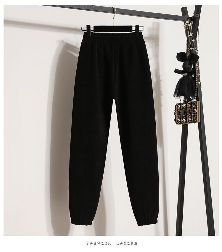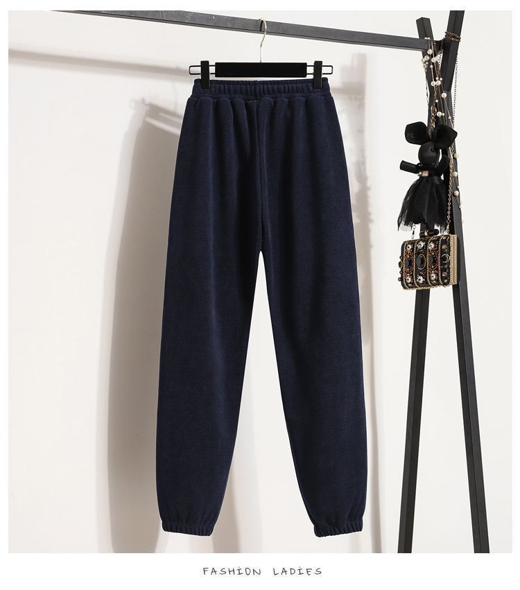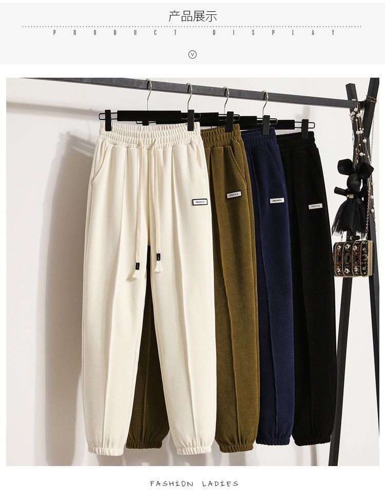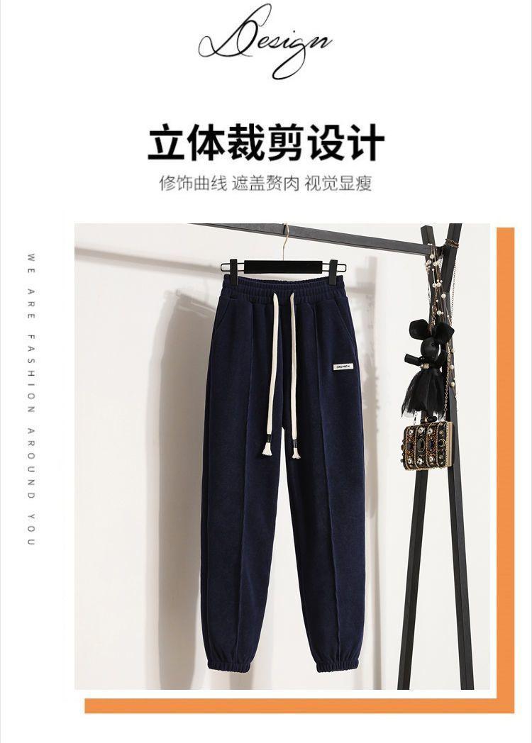 Pantalones gruesos con forro polar para mujer, otoño e invierno 2023, nuevos pantalones harén de cintura alta con cordones en los tobillos, pantalones casuales holgados de moda para todo tipo de combinaciones para mujer