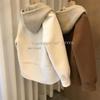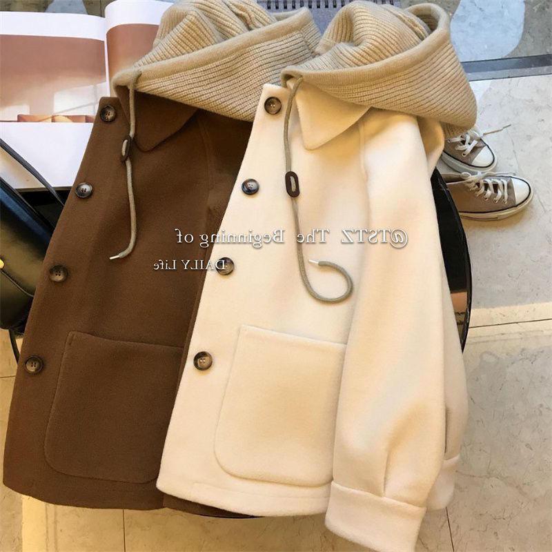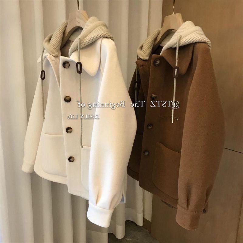 Abrigo de Lana Tejido de Alta Gama con Capucha para Mujer Invierno Espesado Pequeño 2024 Nuevo Top de Dos Piezas Falso Moderno
