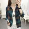 Camisa a cuadros para mujer, de manga larga, nueva, estilo coreano, retro, estilo Hong Kong, camisa básica, talla grande, primavera y otoño, informal, de una sola prenda, abrigo superior