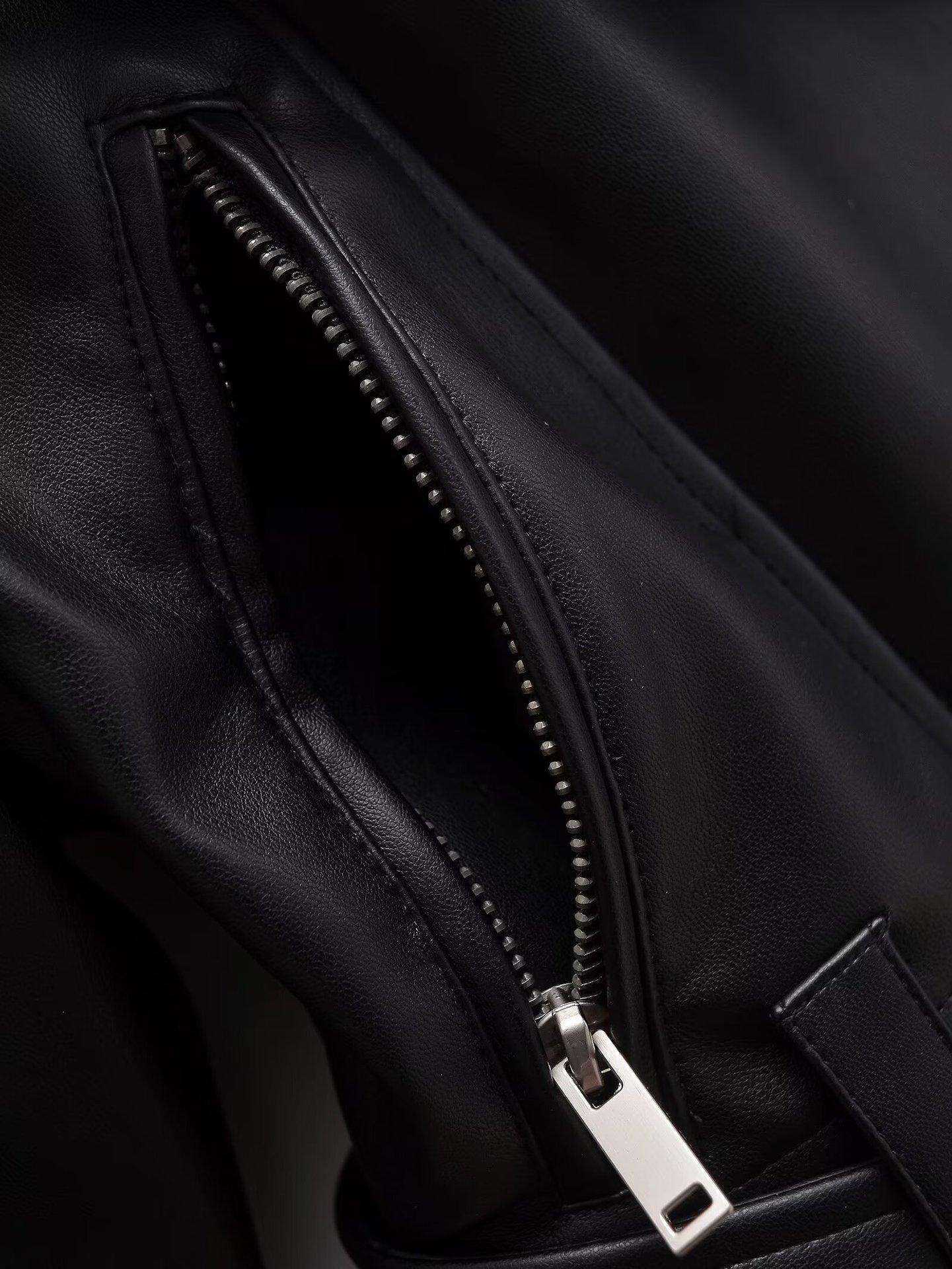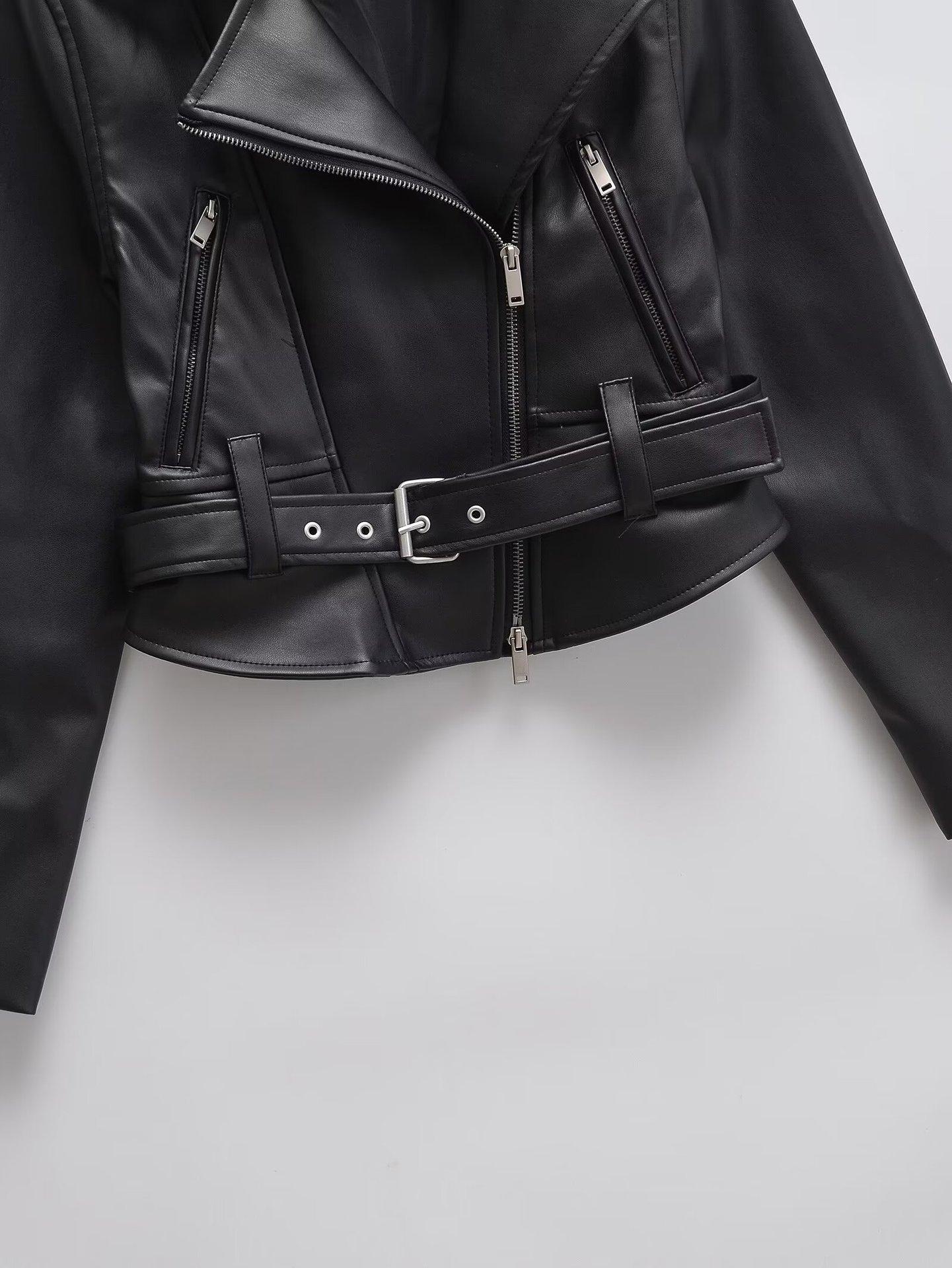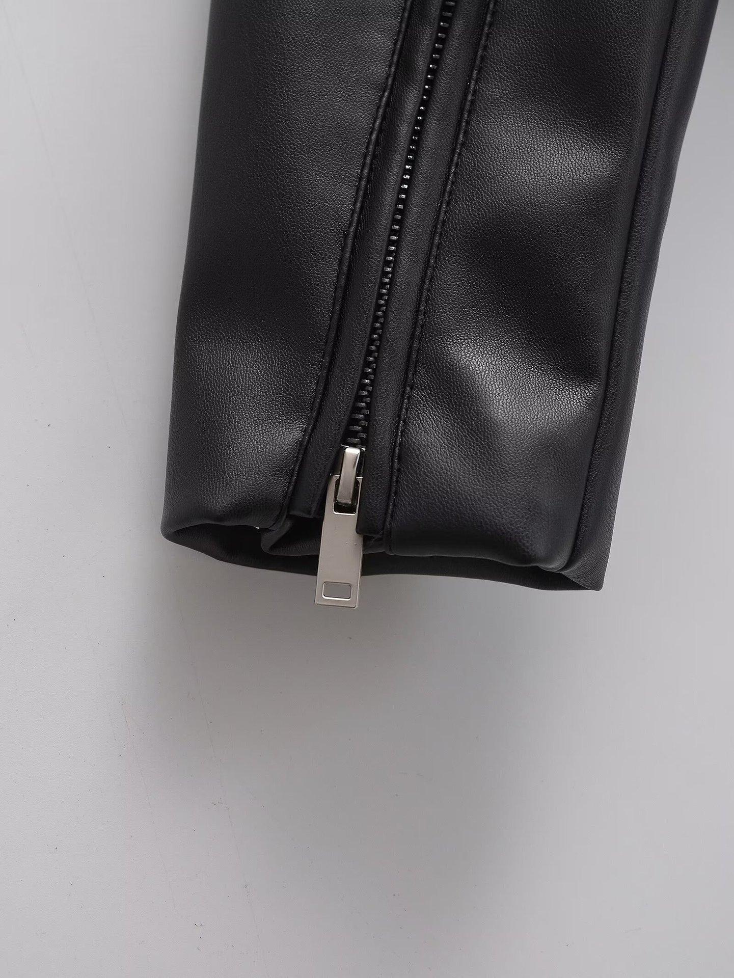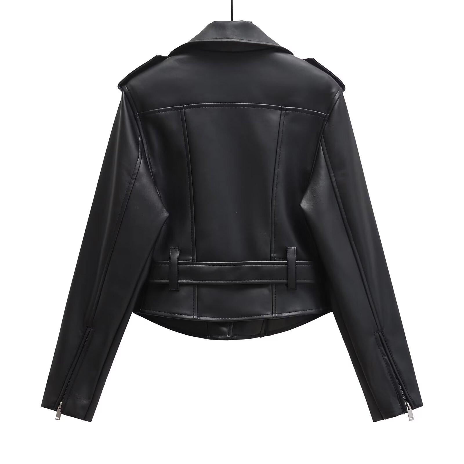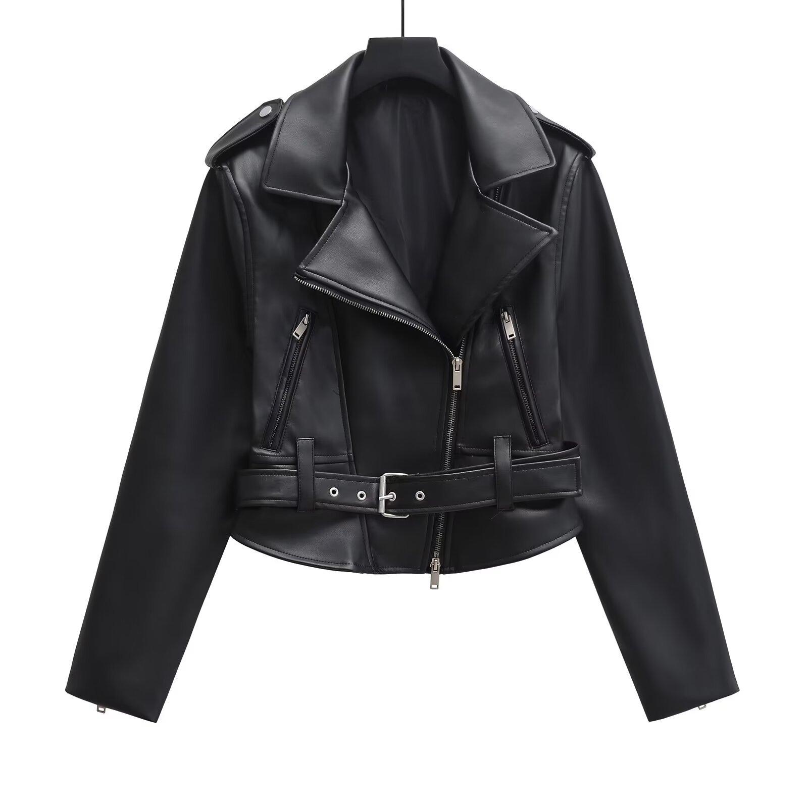 2024 Primavera Nuevo Europeo y Americano Transfronterizo Moda Urbana para Mujer Estilo Motociclista Chaqueta de Imitación Cuero W027 9413