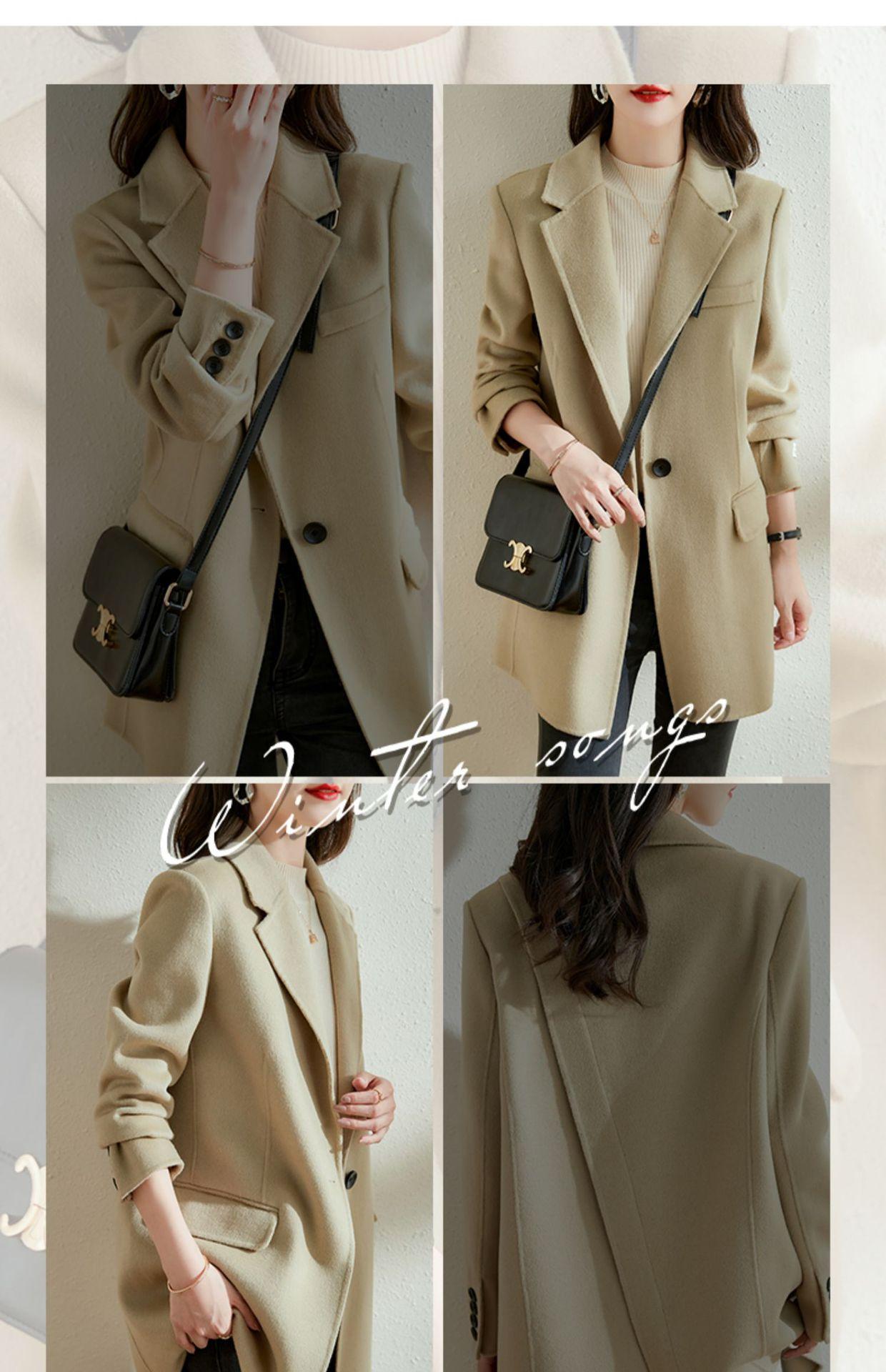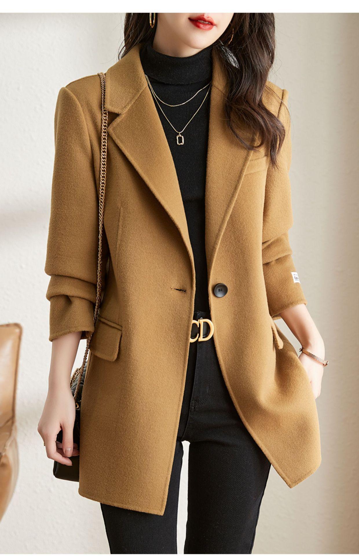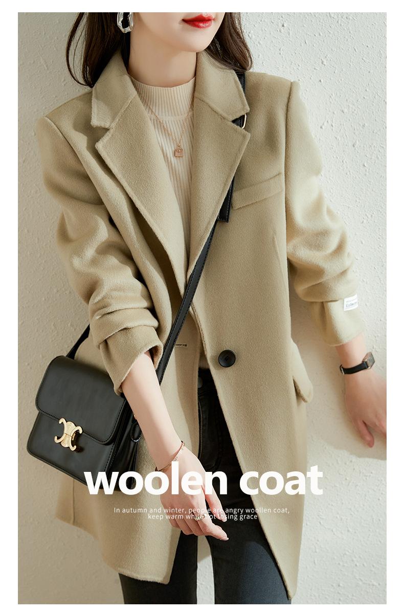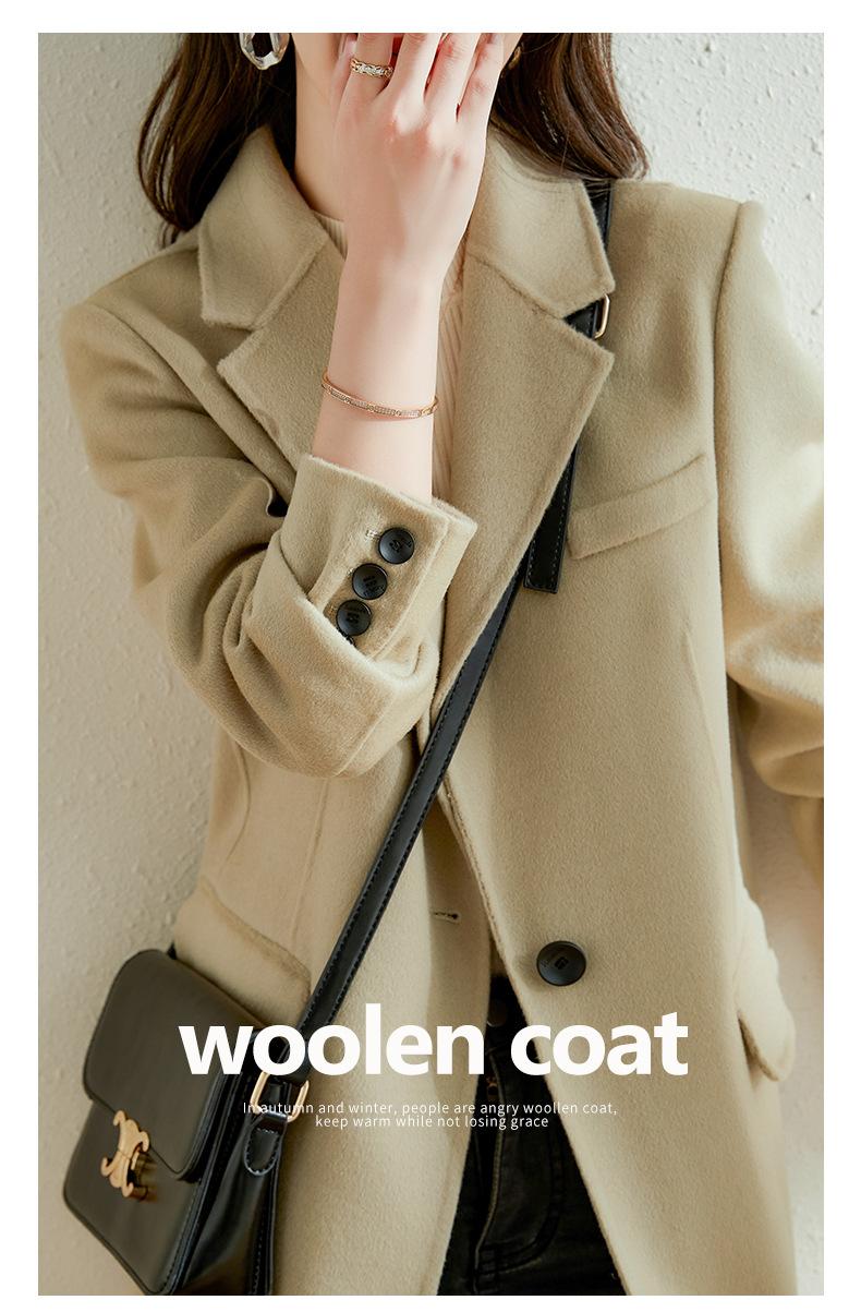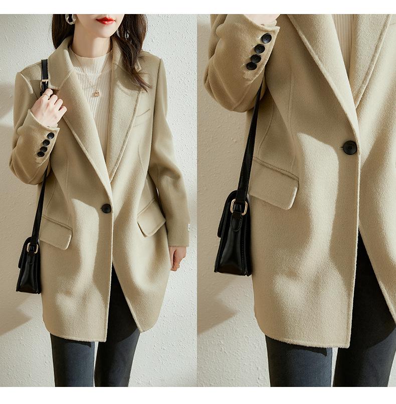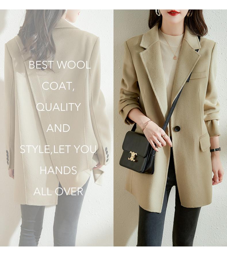 Ropa Exterior de Lana de Alta Gama para Mujer Otoño e Invierno 2024 Nuevo Estilo Coreano Largo Medio Diseño de Espalda de Traje Ropa Exterior de Lana Elegante